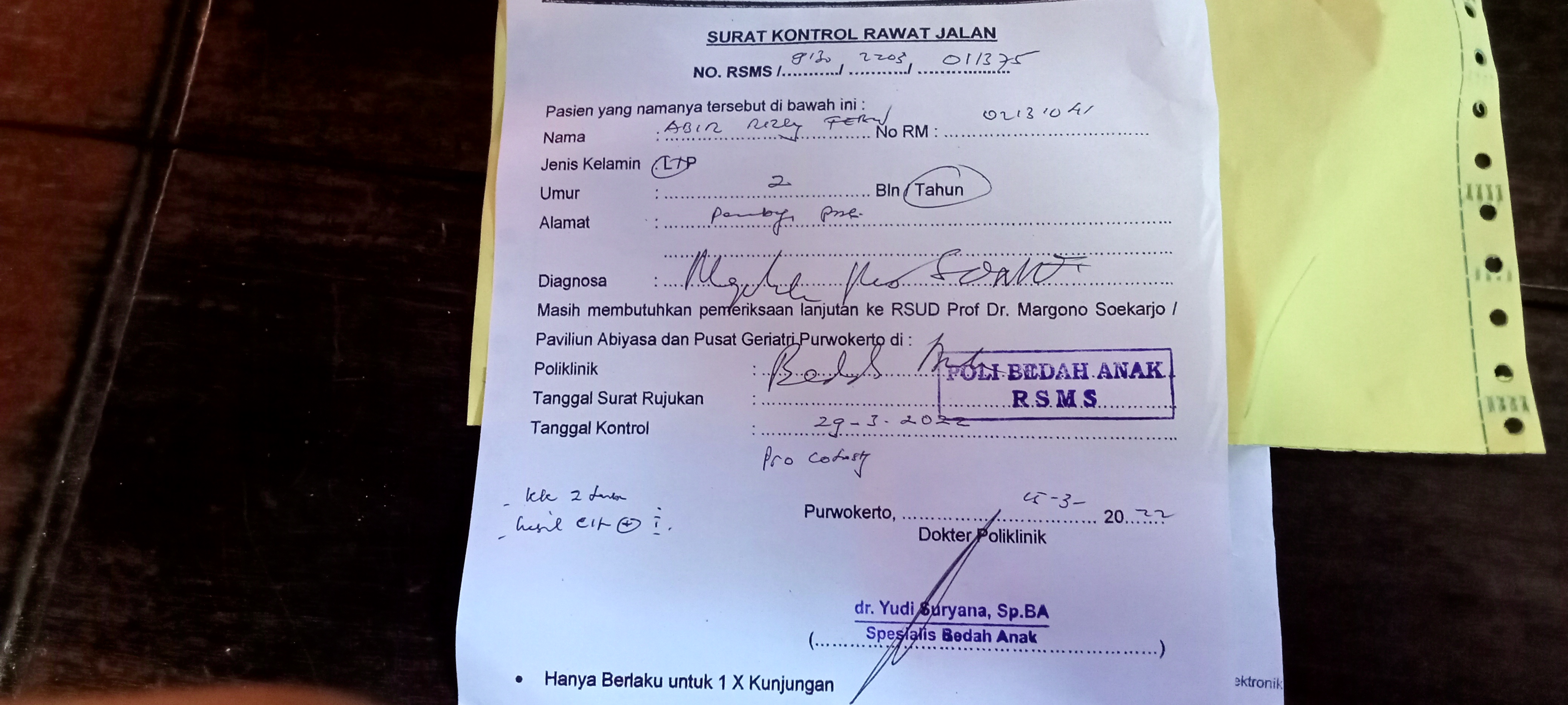 Hasil dari kontrol kemarin, Abir harus melakukan rontgen Colon In Loop ulang karena sampai sekarang tidak mampu BAB sendiri tanpa terapi . Abir dijadwalkan rontgen pada tanggal 9 Maret 2022, tepatnya pada hari Rabu.