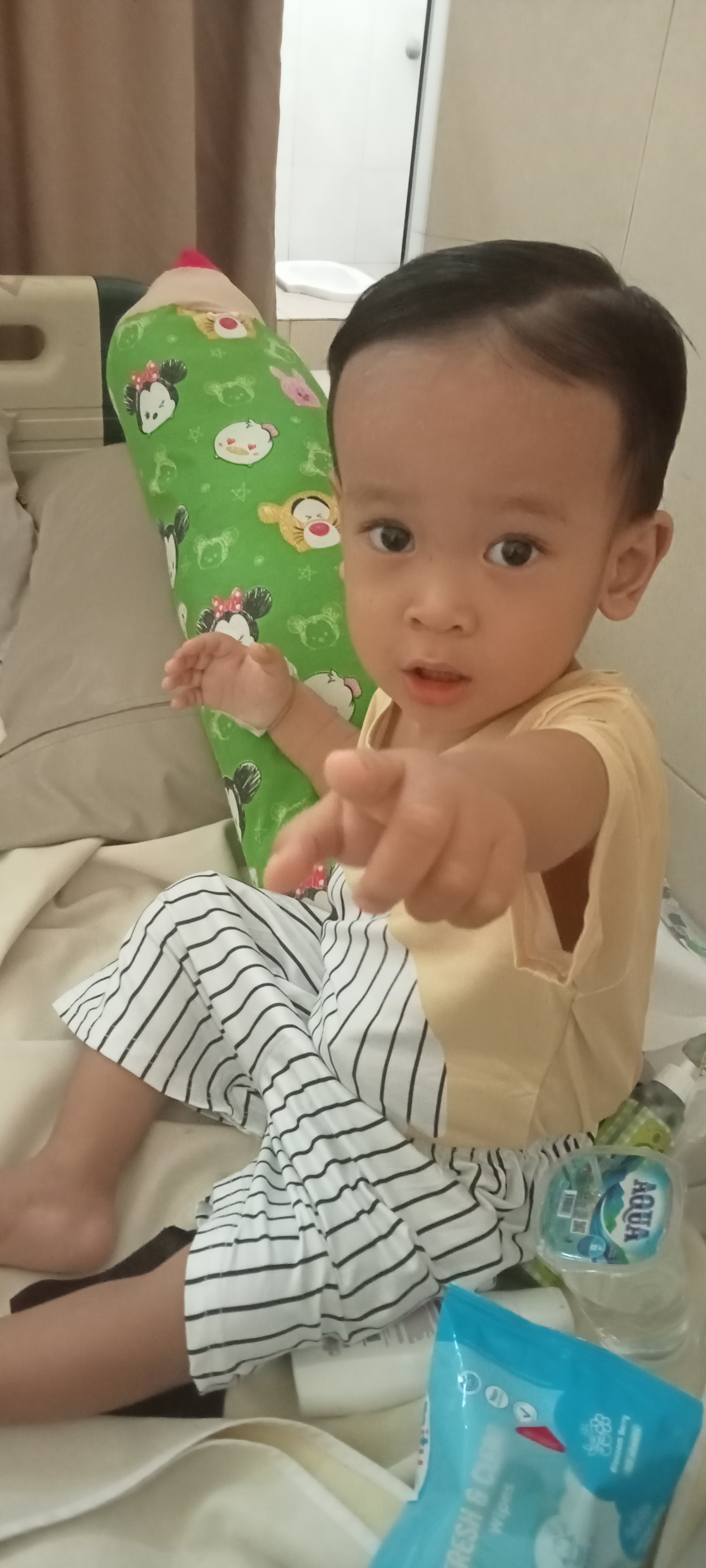 Kalau kata dokter yang menangani Abir, terkait dari sakit bronkitisnya masih harus dipantau karena sampai saat ini masih mengalami batuk, pilek bahkan sempat sesak napas.