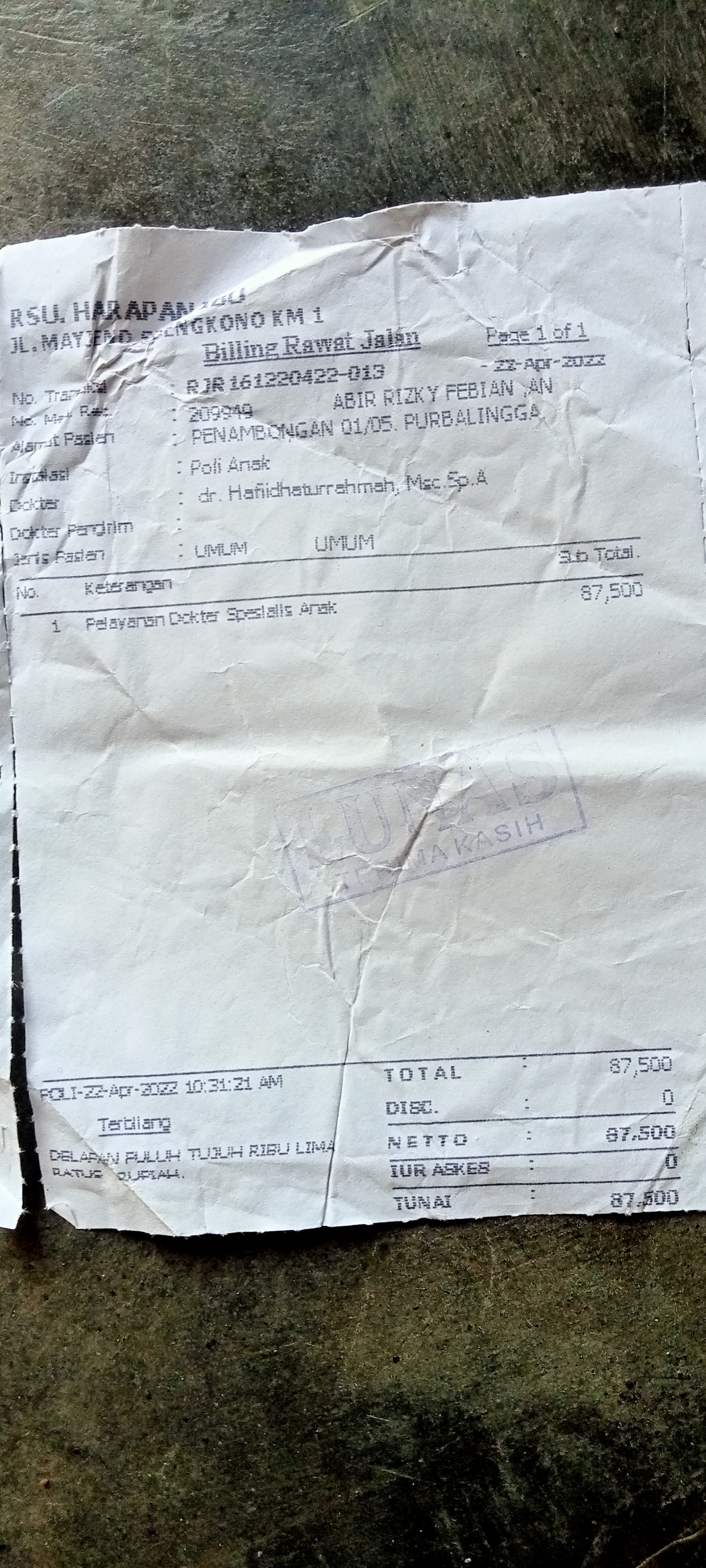"Bpjs = 300.000 Biaya Kontrol dokter anak umum 200.000 Biaya kontrol/konsultasi ahli gizi 150.000 Biaya tenaga medis ,yg mengganti perban di rumah 250.000 Biaya nutrisi Abir seperti bubur kemasan , snak promina dan buah-buahan 350.000 Biaya salep mico Z 170.000 Susu lactogrow 145.000 × 4 = 580.000 Popok sekali pakai L isi 30 ,4 pcs = 300.000 Popok sekali pakai L perekat = 200.000"2022-08-30 16:33:25