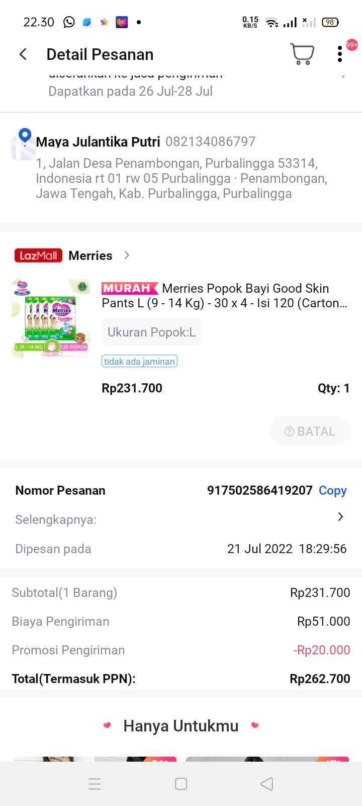 Pertama-tama saya mengucapkan banyak terima kasih kepada TemanBaik yang sudah membantu memenuhi kebutuhan Abir.