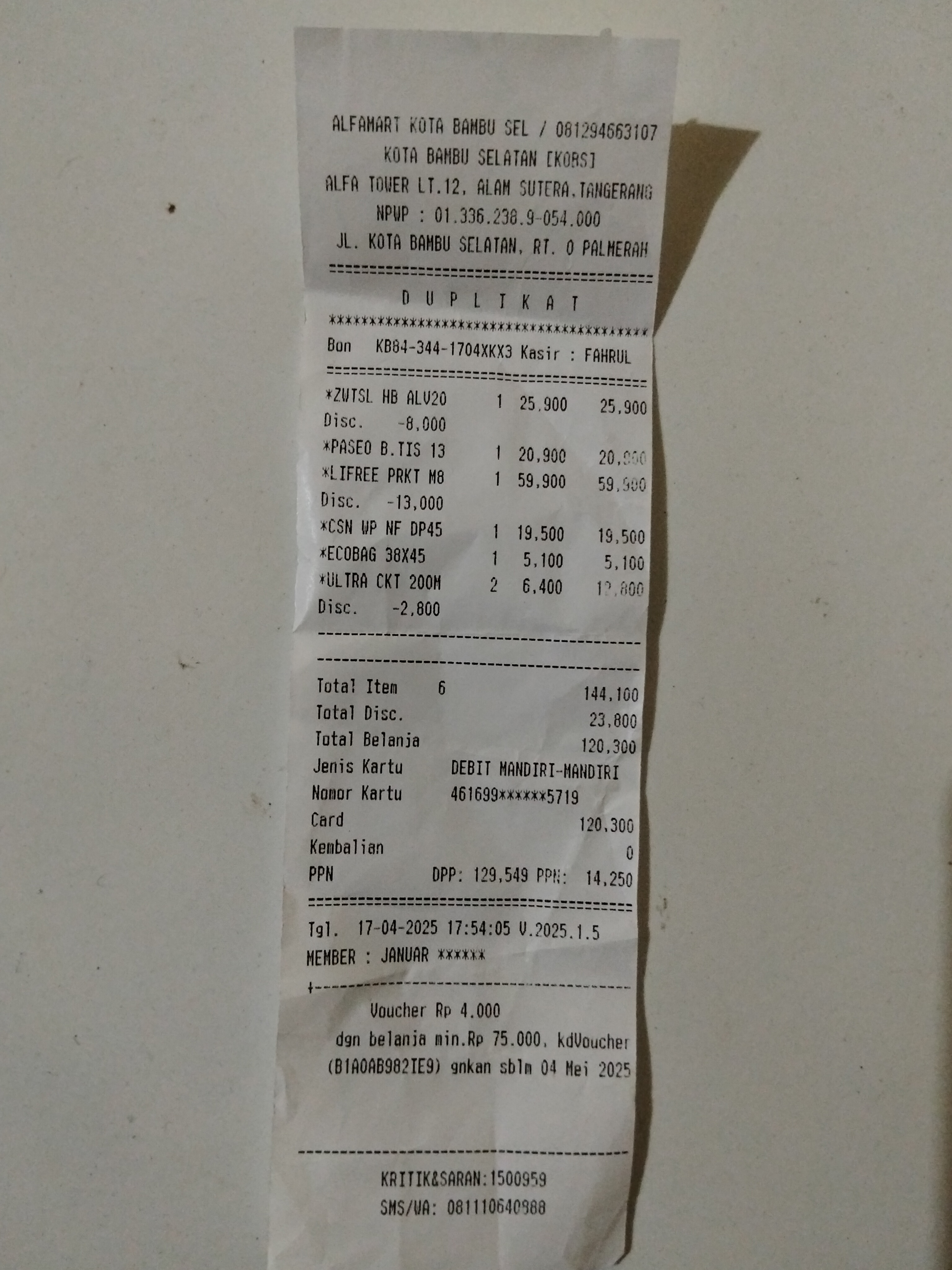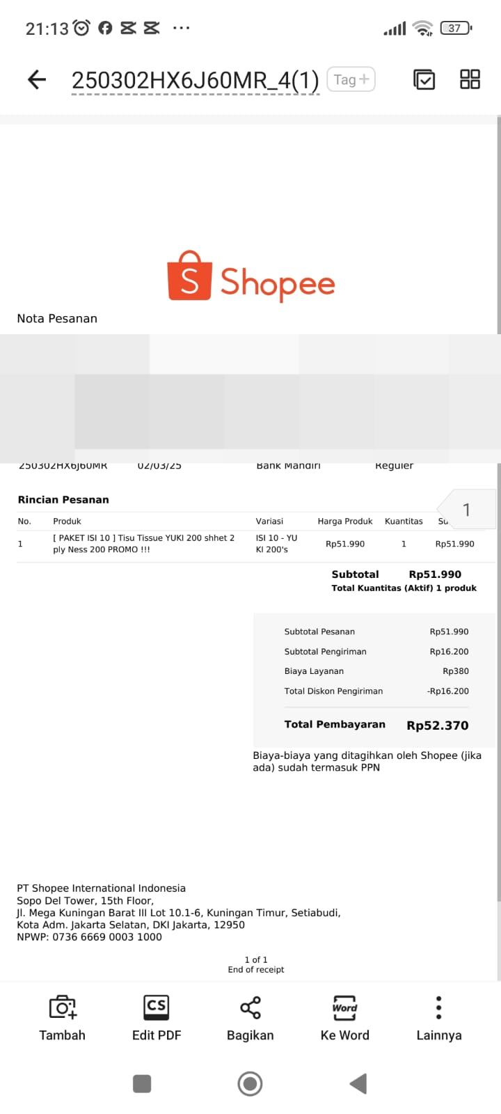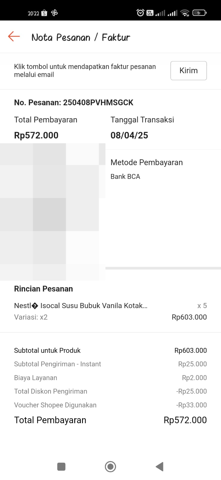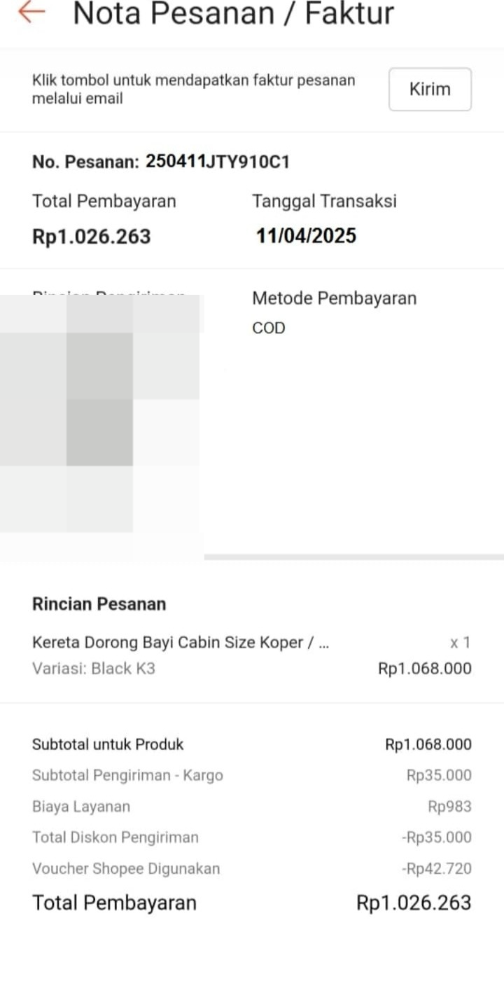 Dana digunakan untuk 1. Susu Nestle isocal Rp120.600 × 5kaleng = Rp603.000 2. Pampes mamypoko xxl Rp63.000 × 5ball = Rp315.000 3. Fedding burret JMS Rp283.000 4. Minyak telon Rp22.000 5. Minyak kayu putih Rp22.000 6. Susu SGM 600 gr Rp61.000 7. Tisu Rp48.000 8. Akupuntur satu kali Rp175.000 9. Stroller Rp1.026.000 10. Underpad Rp32.000 × 4 ball = Rp128.000 11.Lacto b Rp9000 × 5pcs = Rp45.0002025-04-08 09:36:15