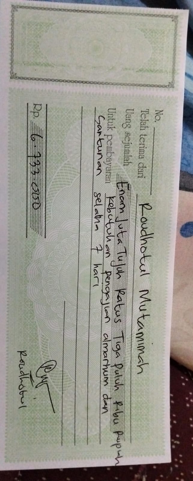 Ke rekening ****7045 a/n Roudhotul Mutamimah