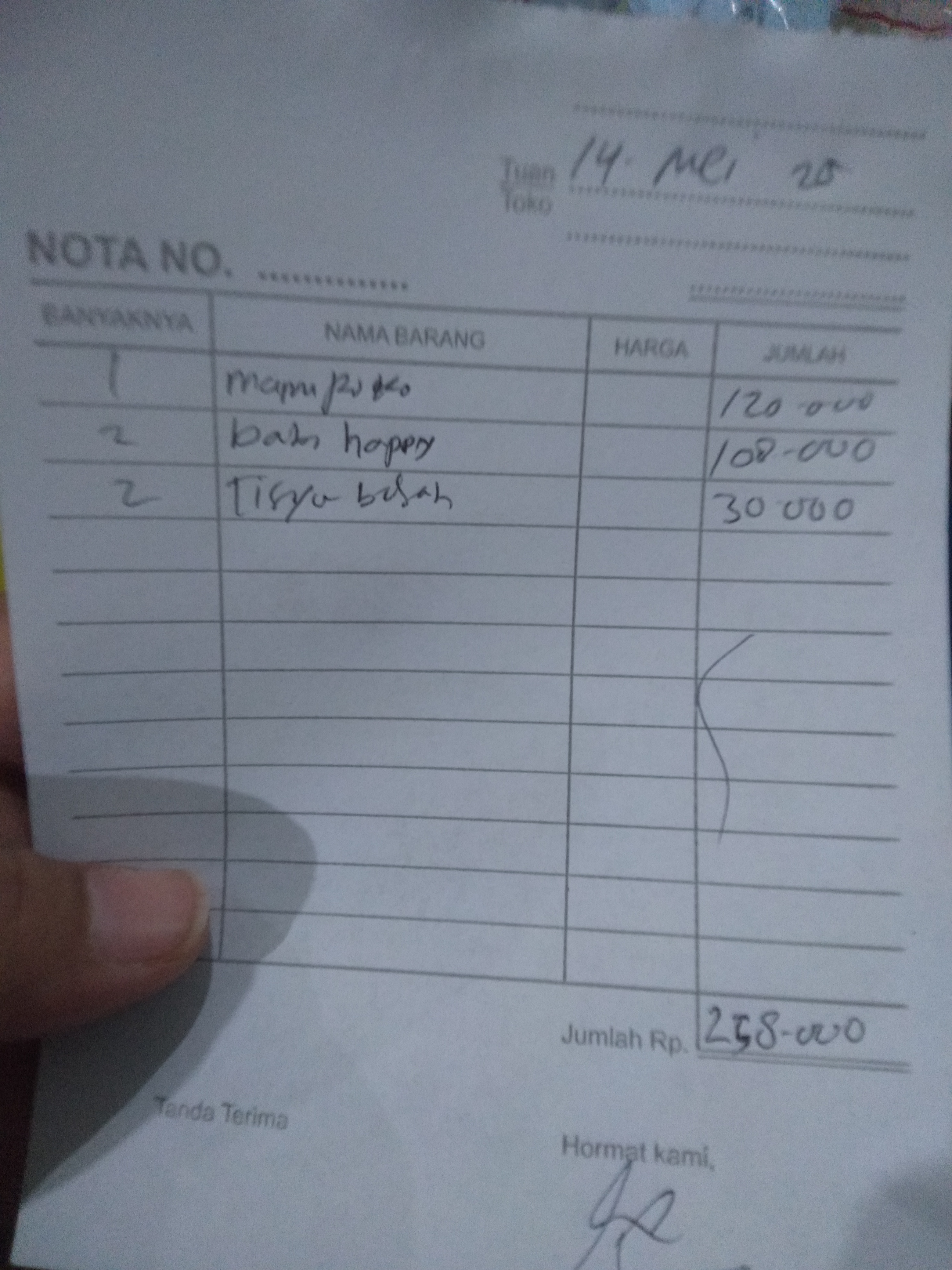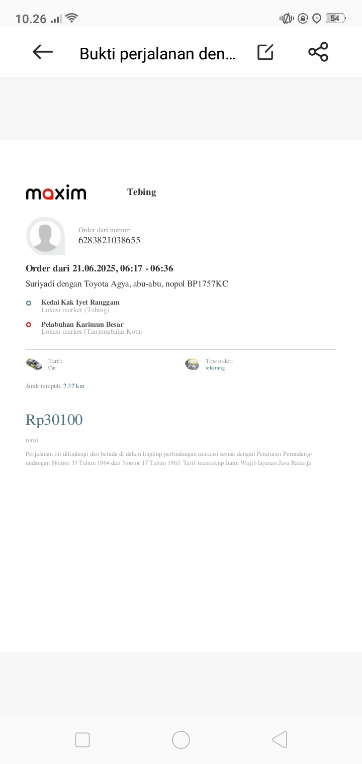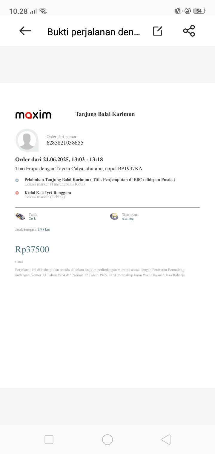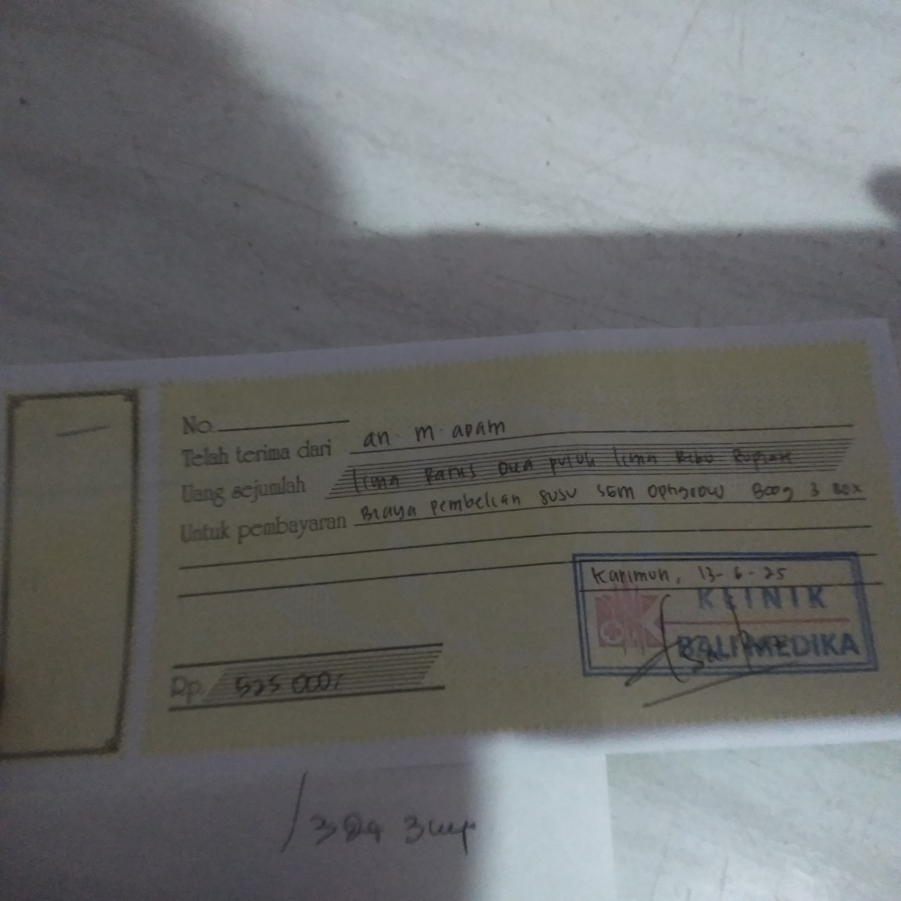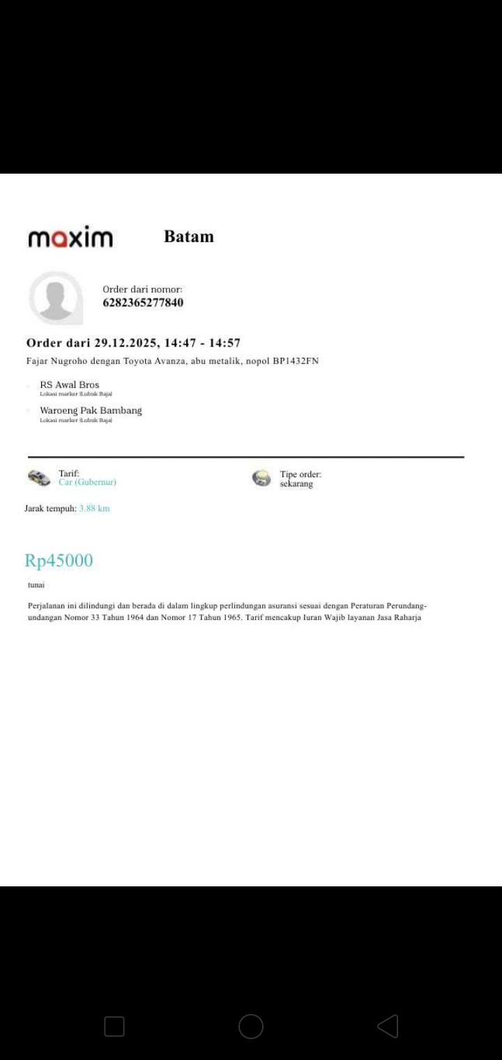 Susu SGM optigrow 5 kotak x 95rb Pempers happy napi 1 bal x54rb Minyak telon 210ml x 80rb Tisyu 2 bal x 16rb Oprasional taxi online dari rumah ke RS Muhamad Sani Karimun .trapi Rabu dan Jumat2024-08-06 10:16:19