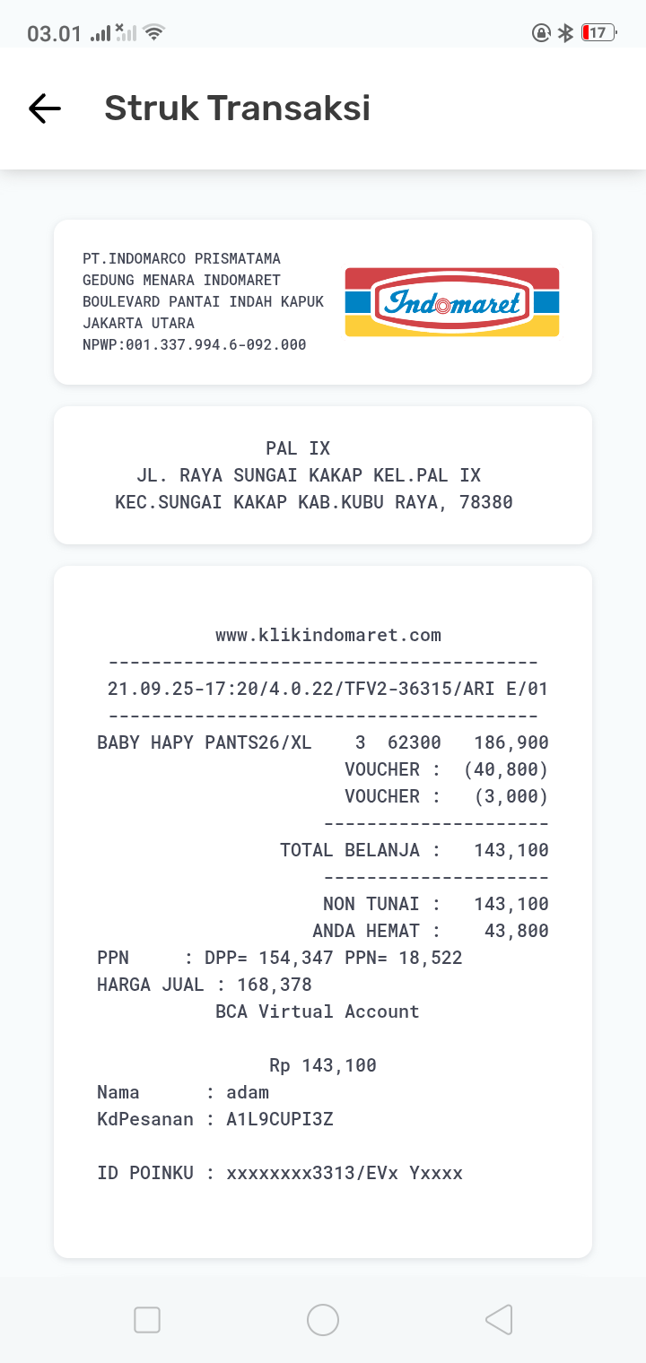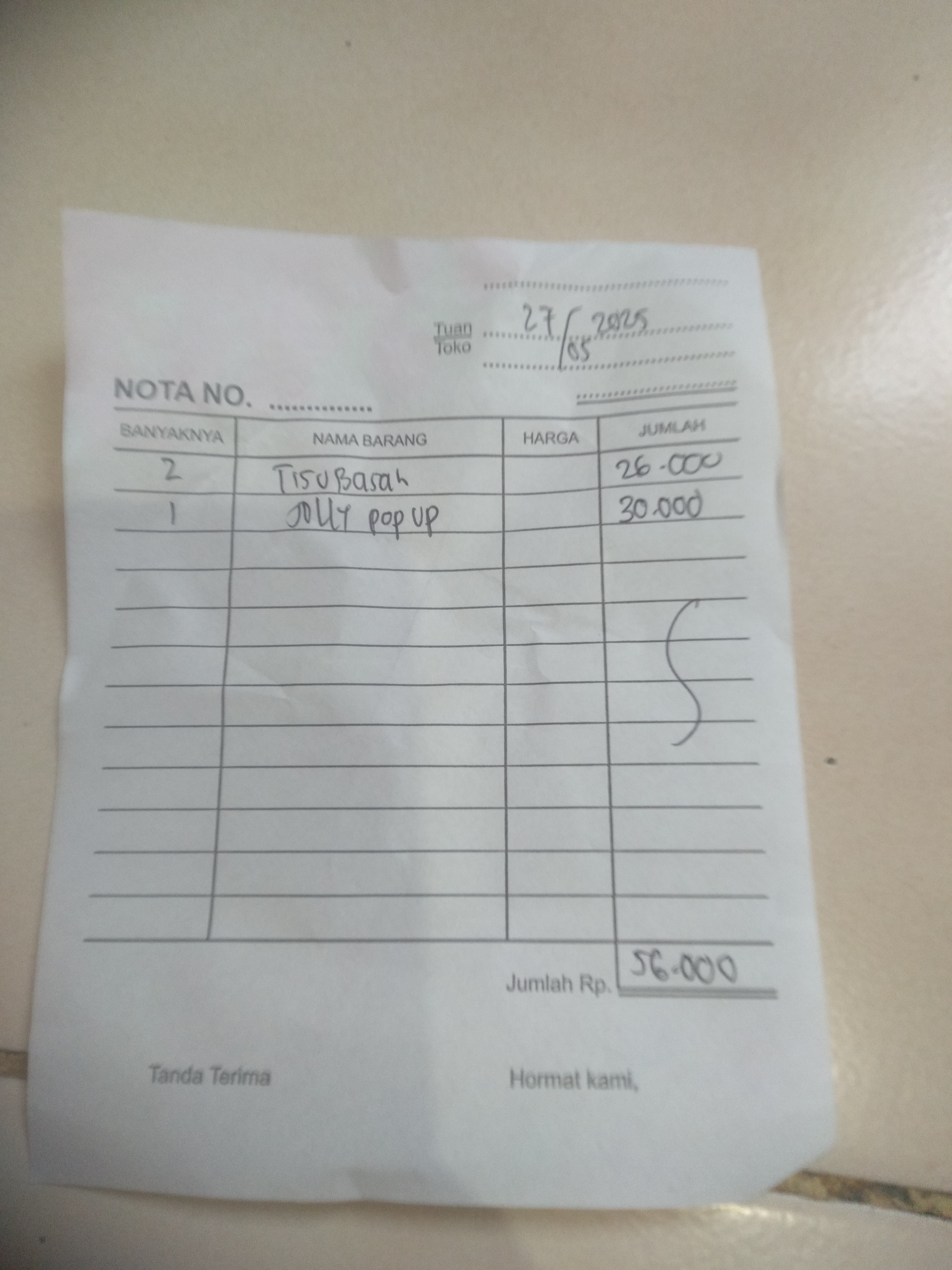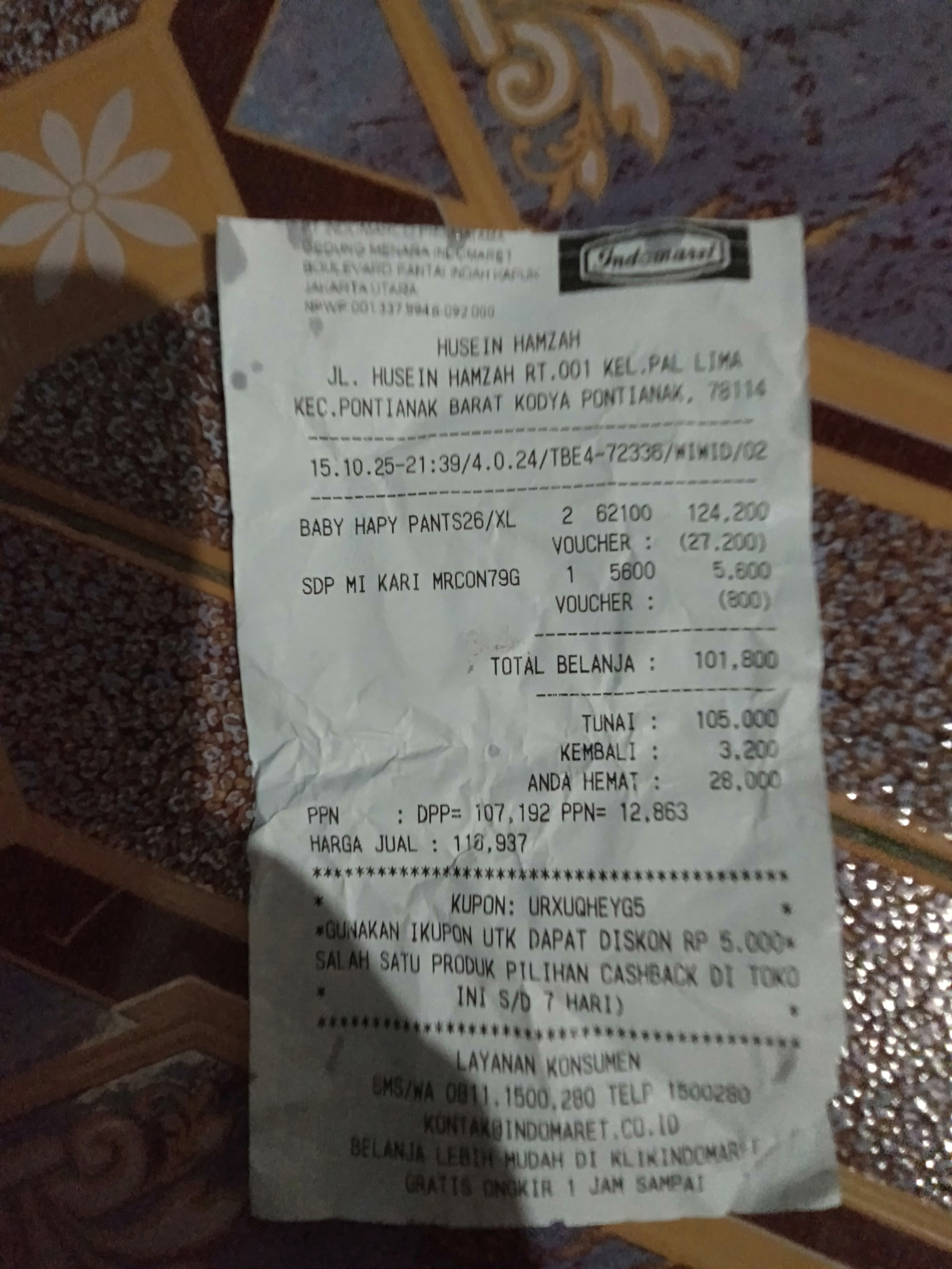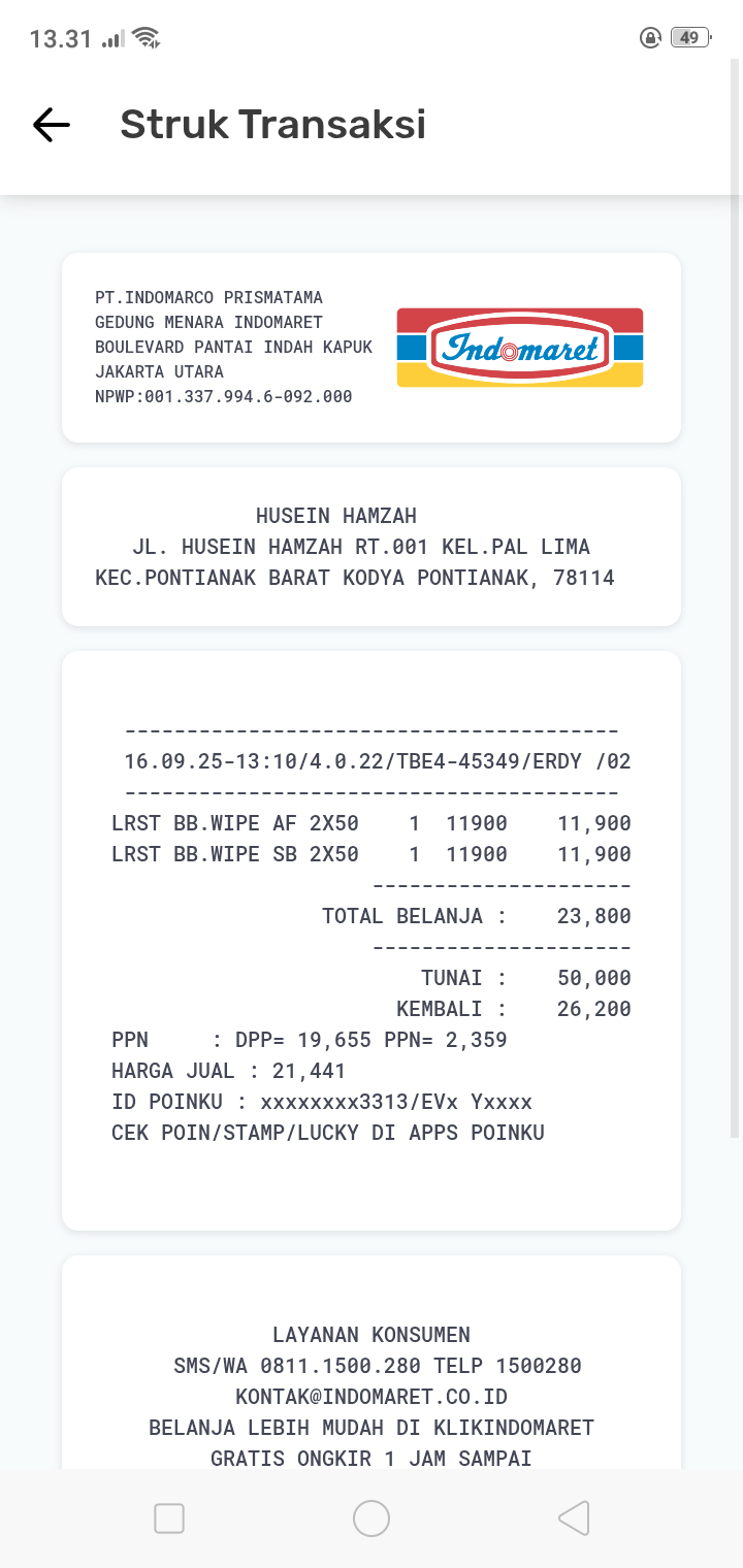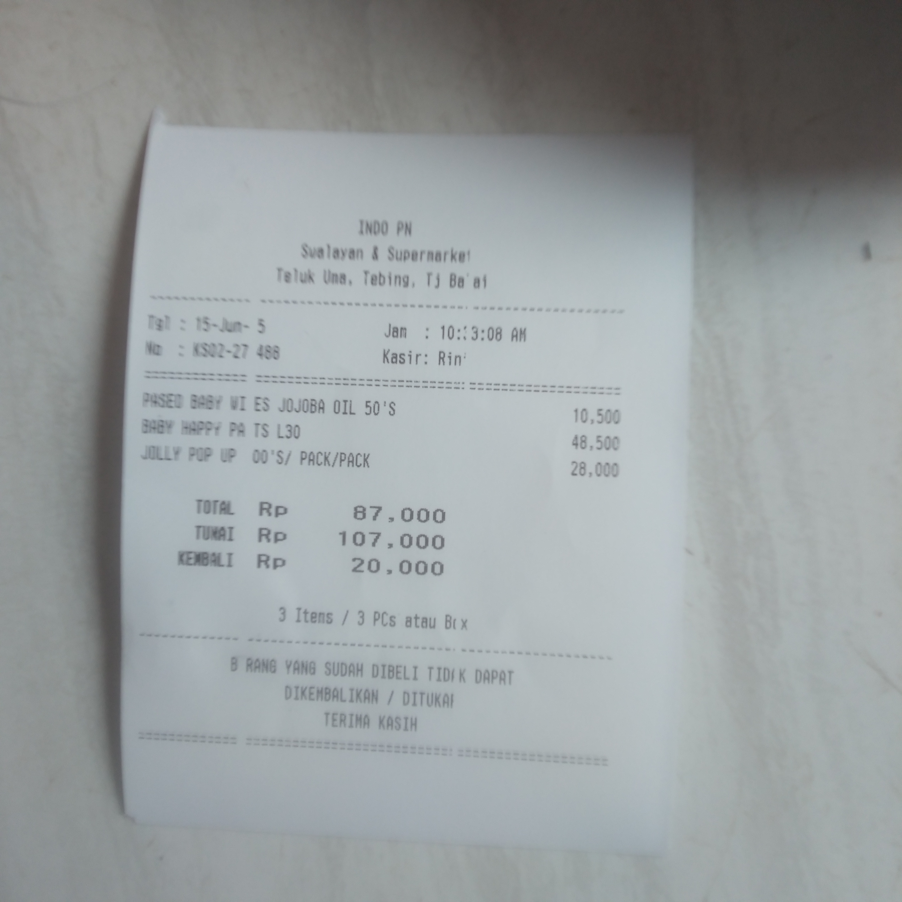 Susu SGM optigrow 5 kotak x 95rb Pempers happy napi 1 bal x54rb Minyak telon 210ml x 80rb Tisyu 2 bal x 16rb Oprasional taxi online dari rumah ke RS Muhamad Sani Karimun .trapi Rabu dan Jumat2024-08-06 10:16:19