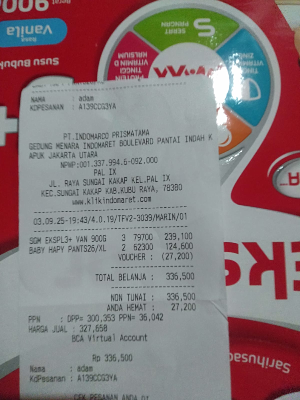 rimbuse susu SGM 1 box = 79,700 rimbuse pempes 2 ball= 95rb rimbuse tisyu kering=16,700 SGM ekplore 3 box = 239,100 pempers 2 ball= 95rb cairan NACL 3 botol= 36rb2025-09-04 08:59:12