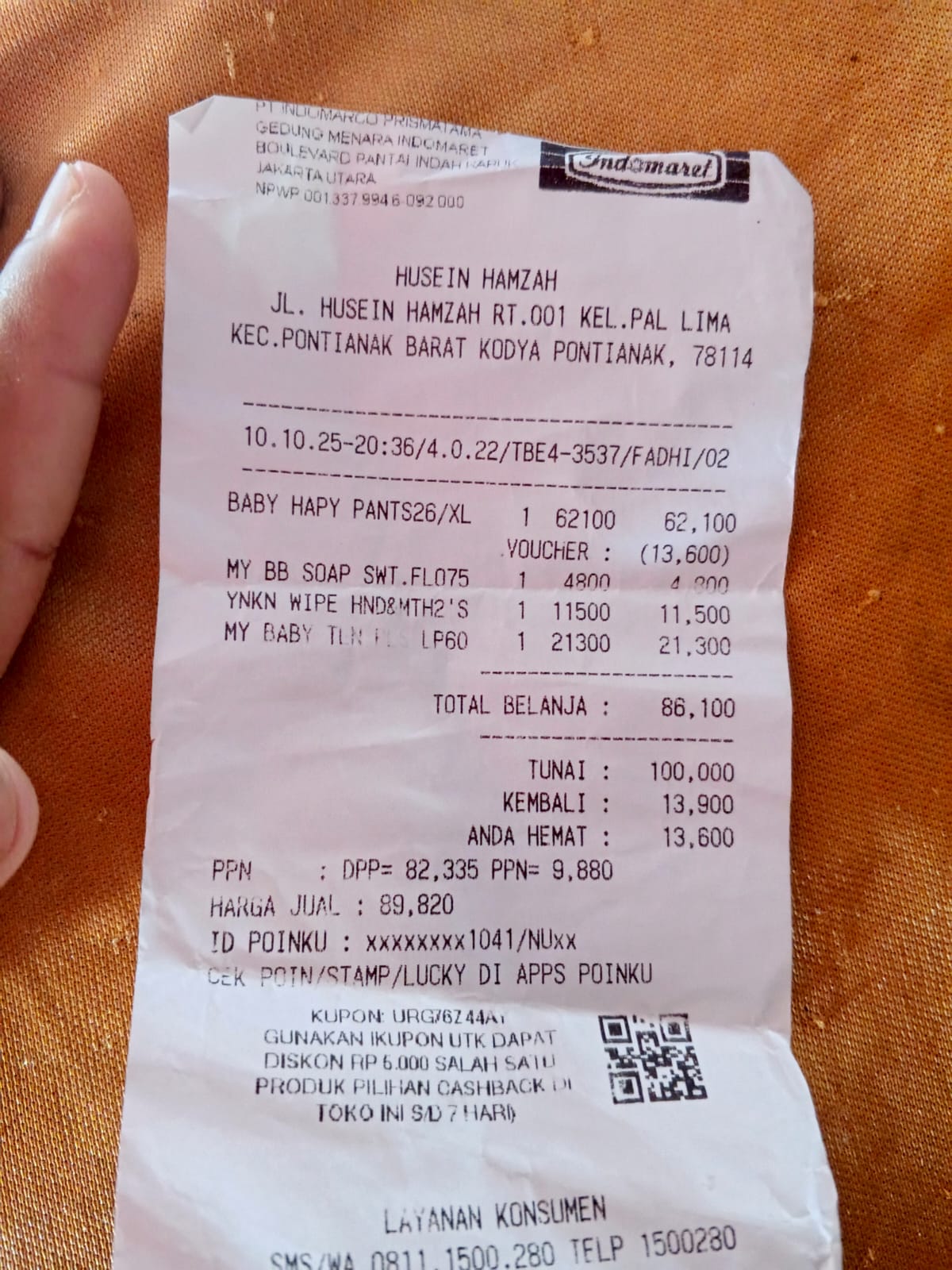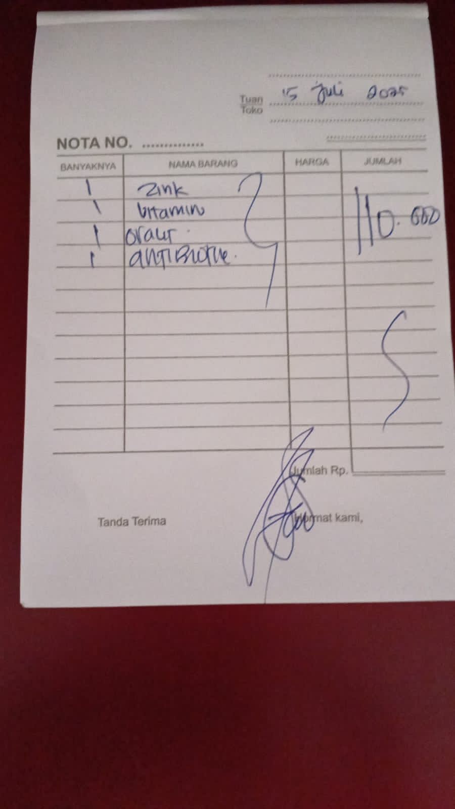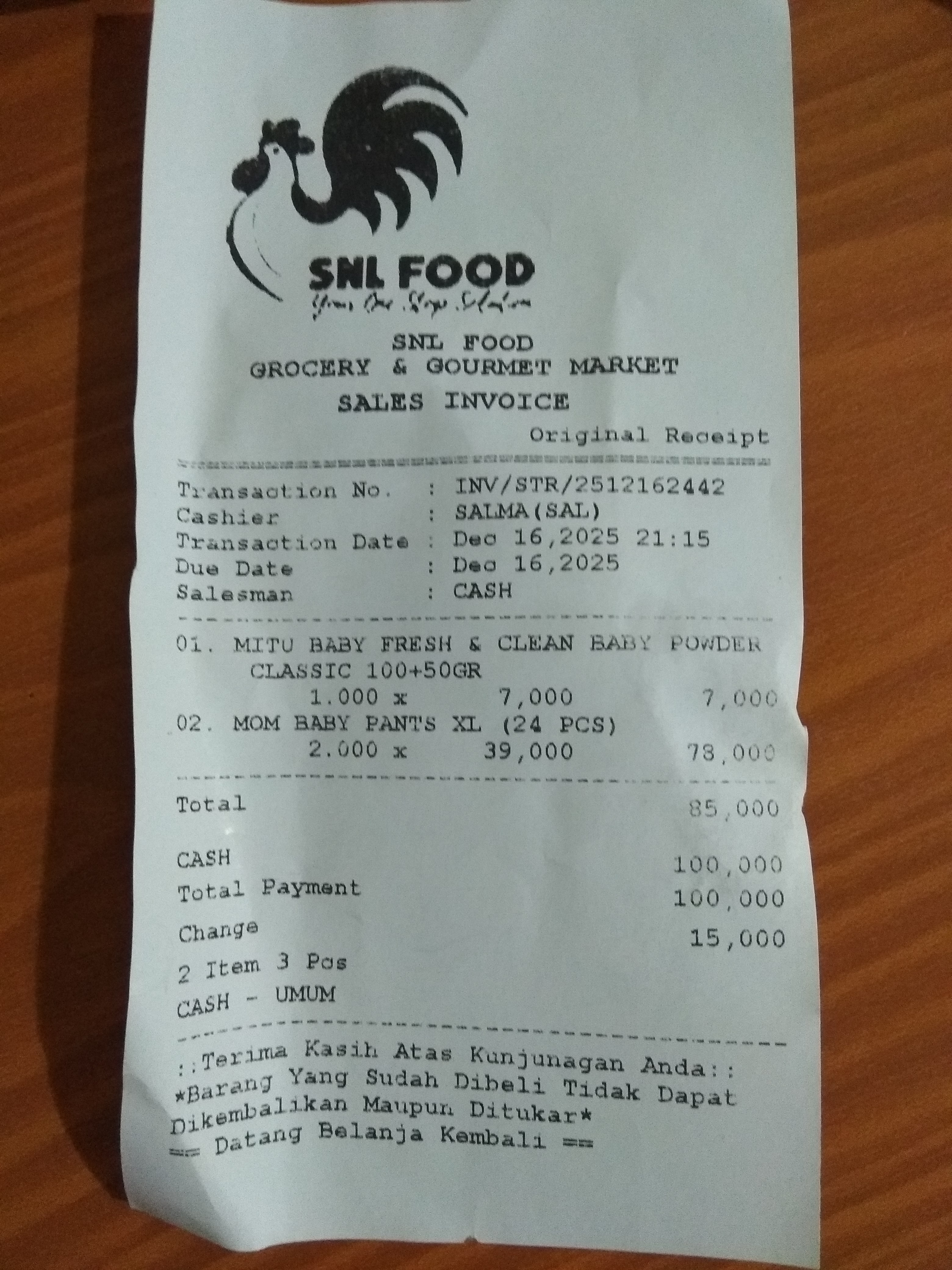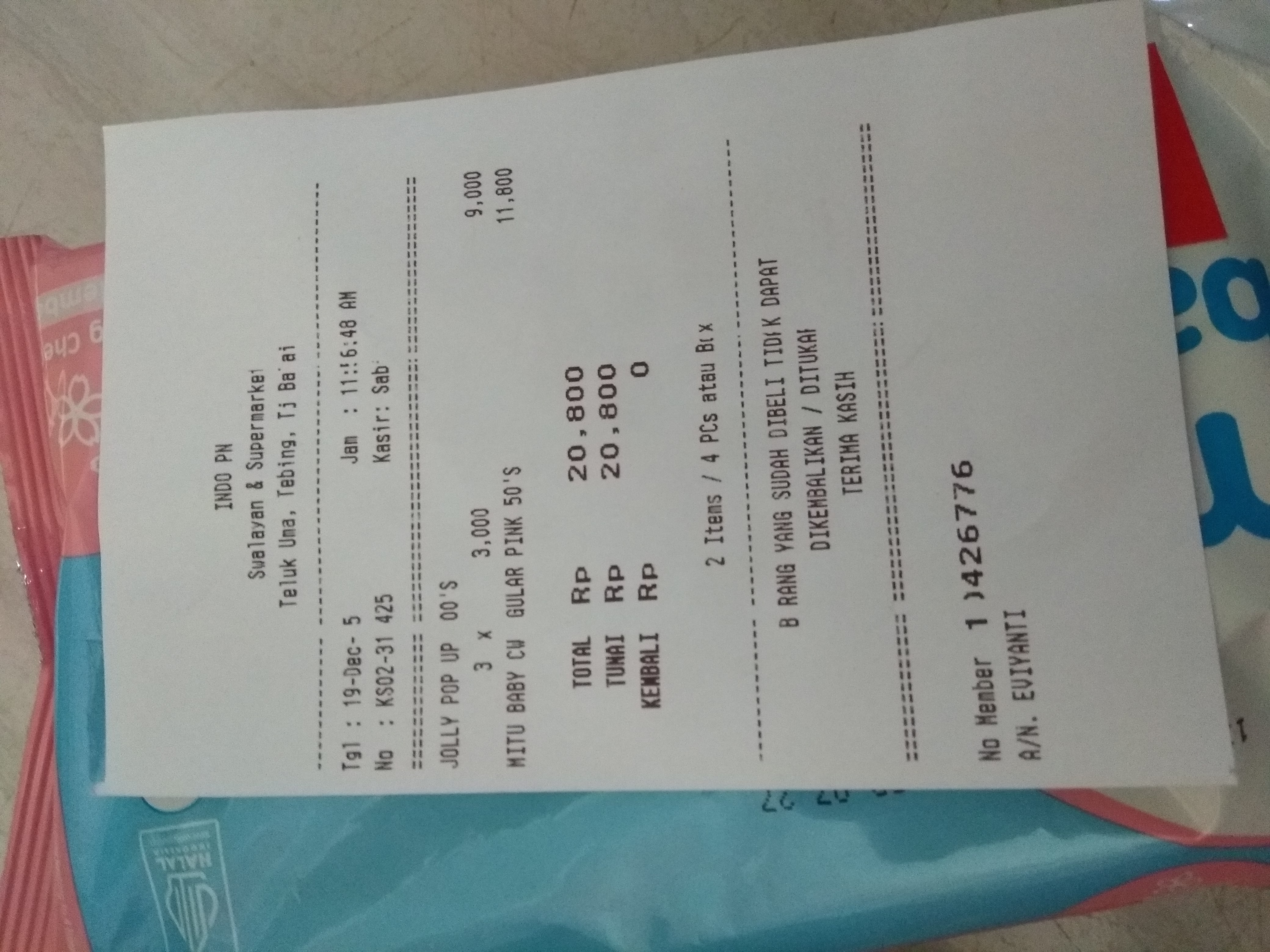 Dana digunakan untuk 1. Susu SGM optigrow 6 kotak Rp548.400 2. Susu Morinaga cilgo 3 kotak Rp205.500 3. Pampers sweety 5 ball Rp248.300 4. Tisu basa/ kering Rp82.000 5. Perawatan luka Rp48.300 6. Obat diare Rp110,0002025-07-31 09:46:06