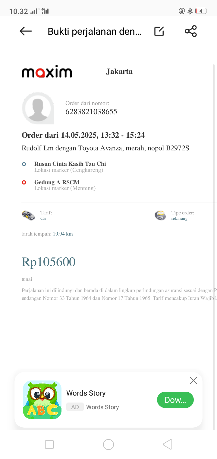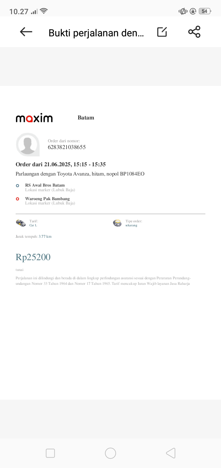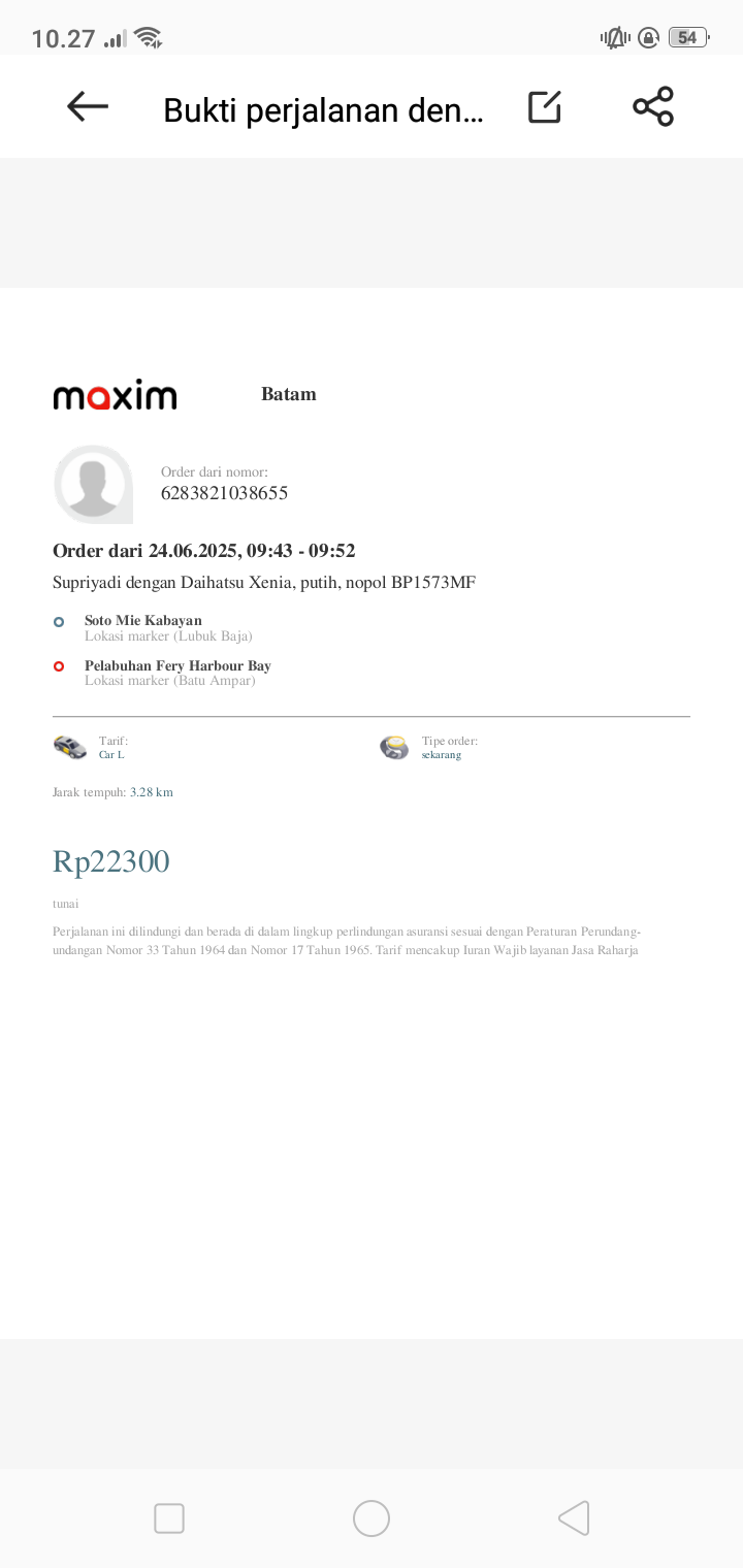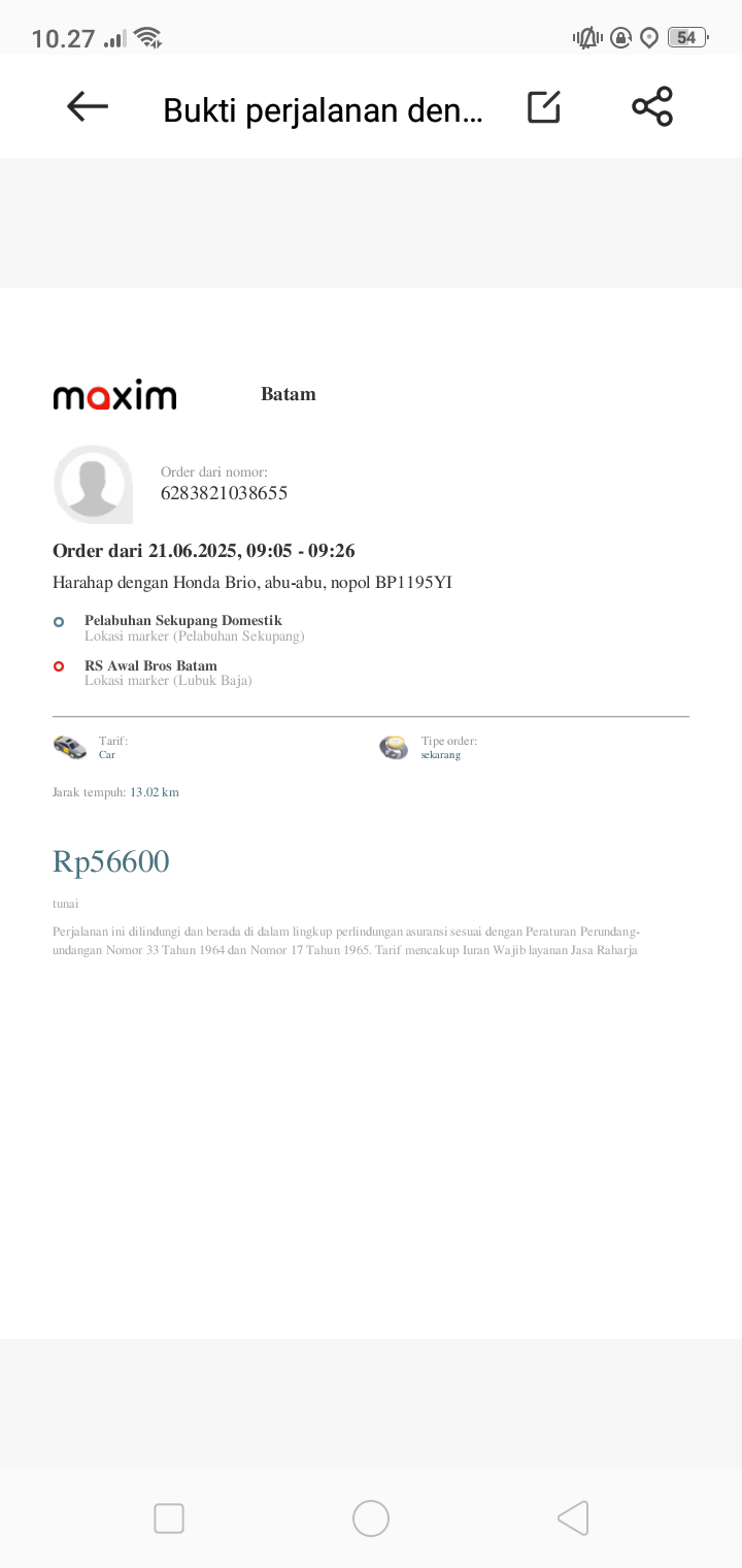 Tranportasi ke rumah sakit luar daerah Tiket kapal untuk 2 org pendamping 284x2= 568rb Taxi online dari rumah ke plabuhan .pelabuhan Batam sampai ke RS awalbros pulang pergi= 200rb2024-10-04 08:46:50