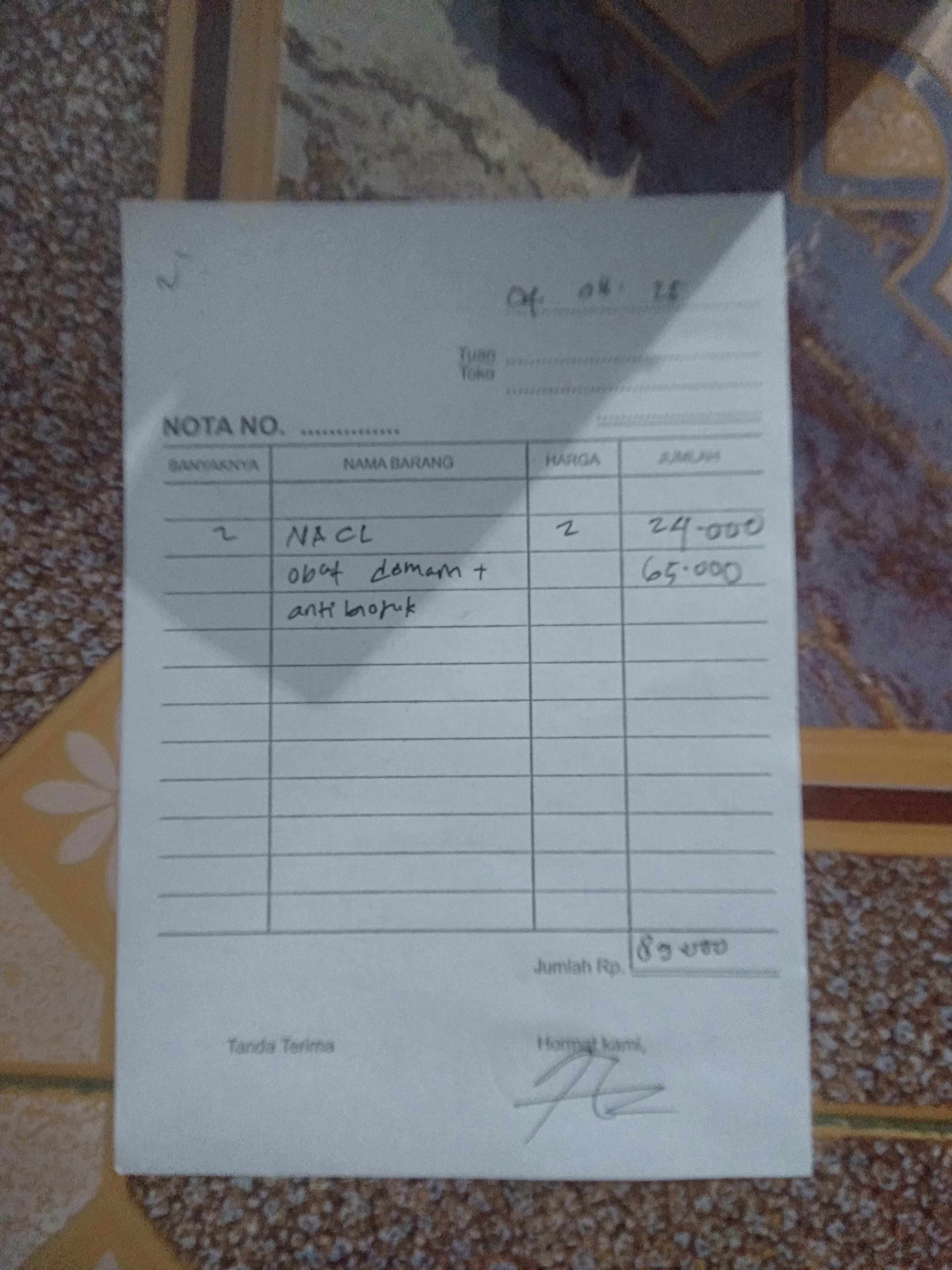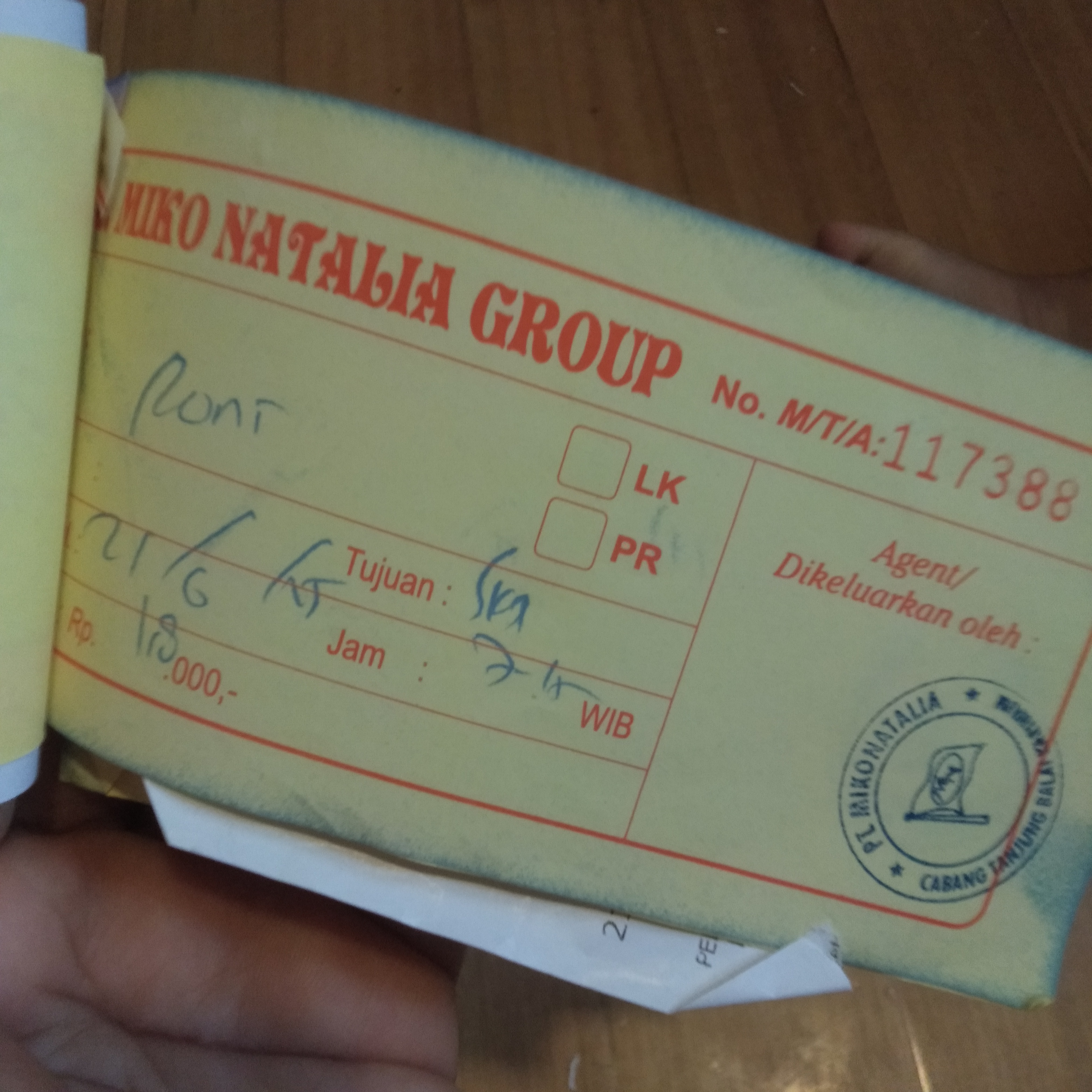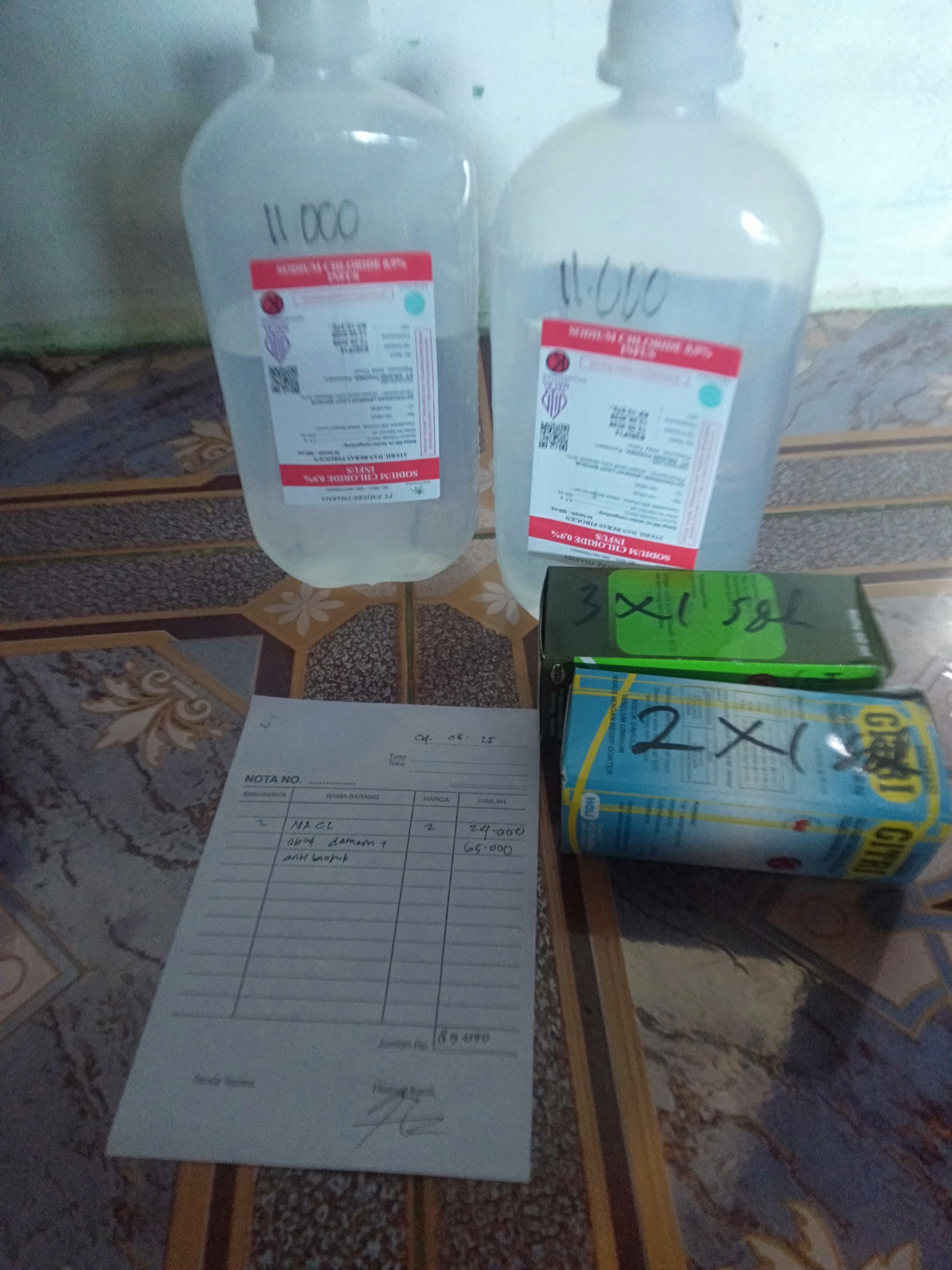 Tiket kapal dari daerah Karimun ke tanjung Periuk jakarta melalui kapal Kelud untuk 2 org pendamping dan juga pasien 2x400= 800 Tiket pasien (anak) kurang lebih 100rb Susu SGM optigrow untuk 1 bulan 10bok x 95 = 950rb Pempers happy nappy size L 2ballx52rb=104rb Mami Poko size L 3 ballx73rb=216rb2024-10-28 10:51:25
