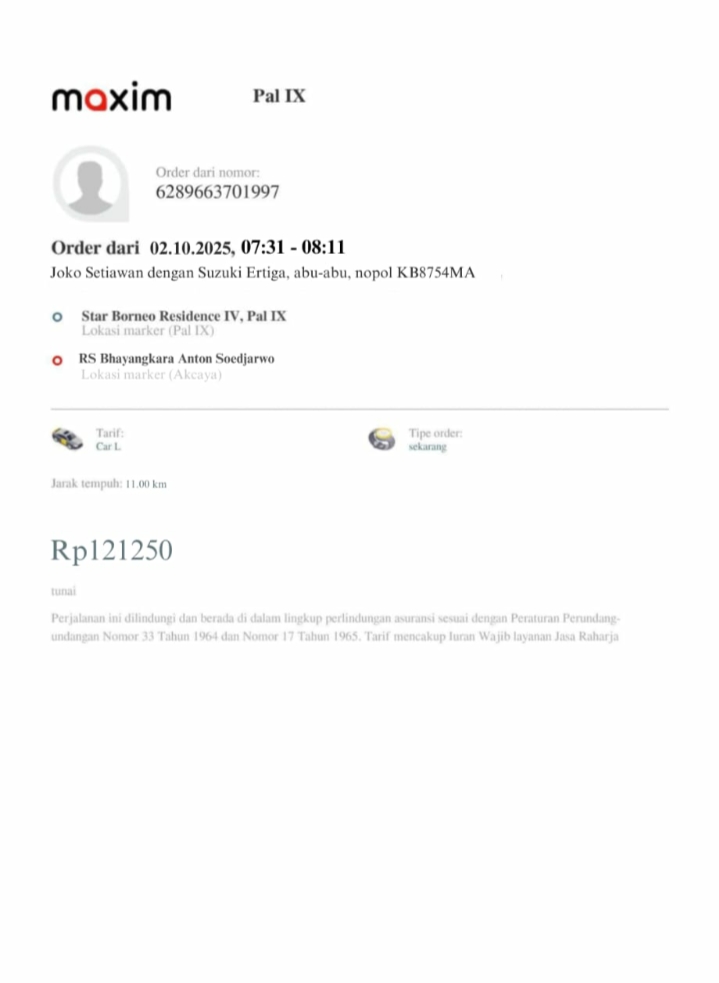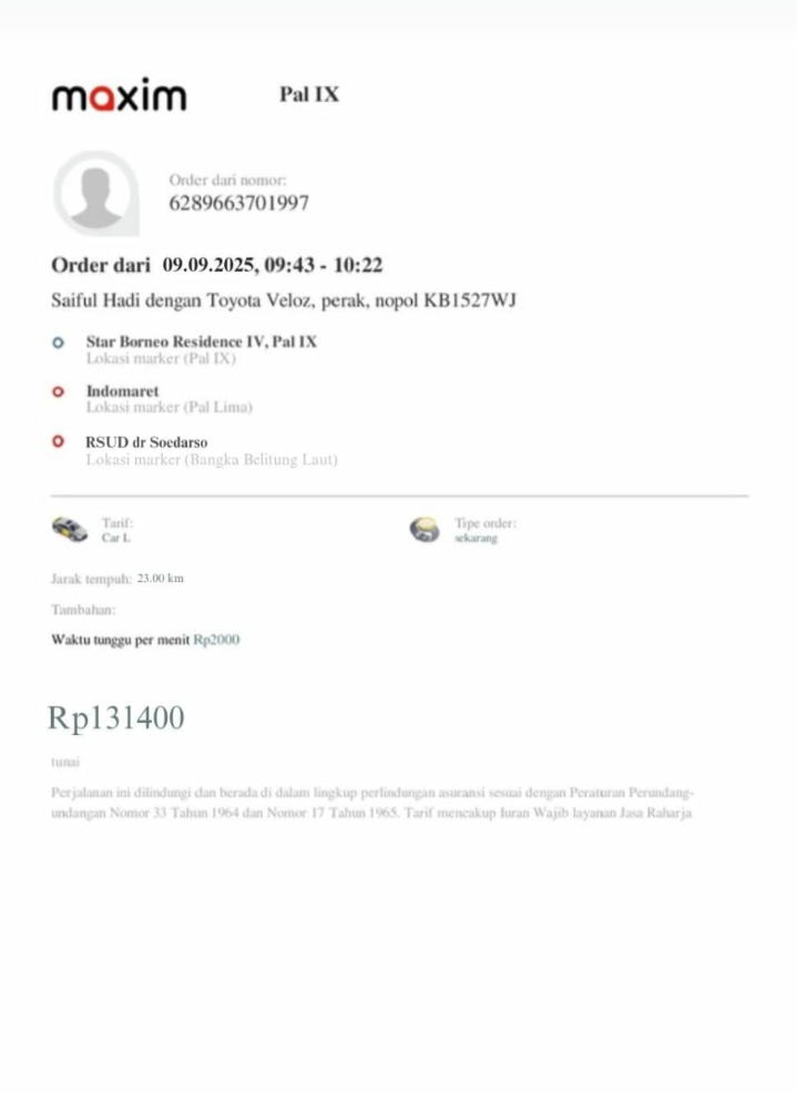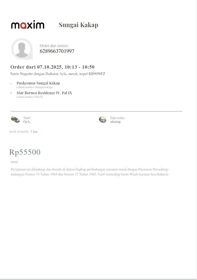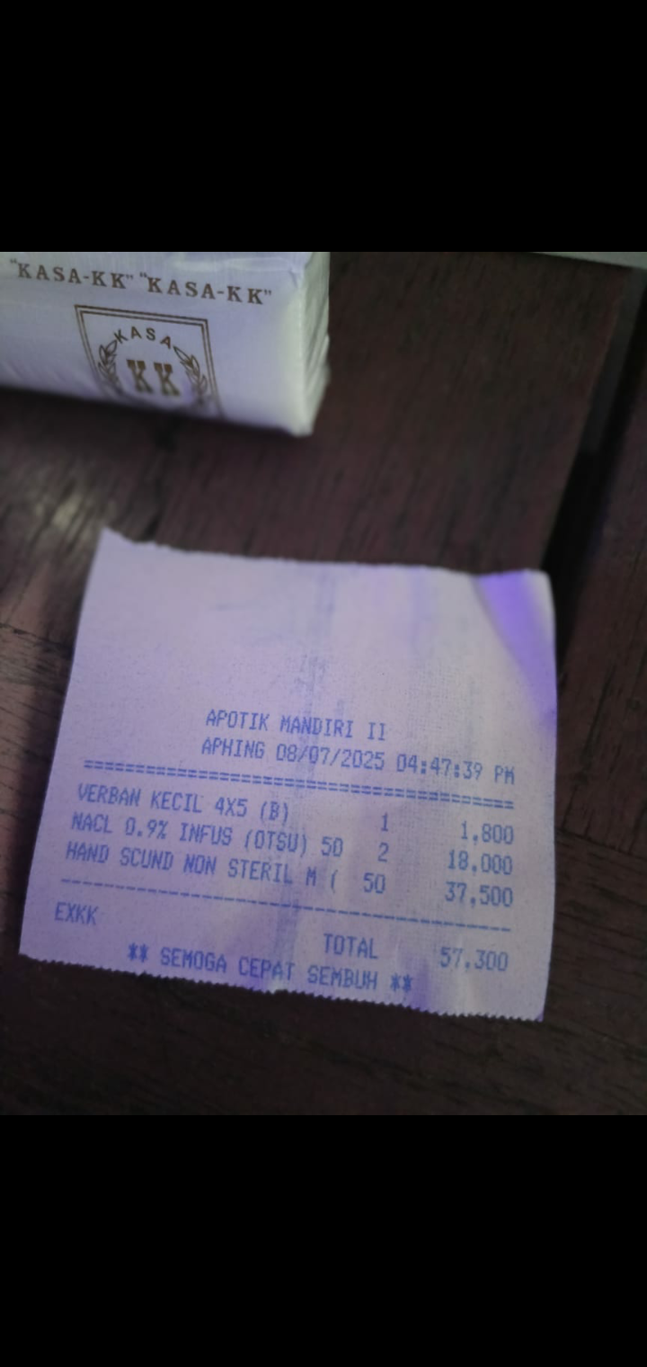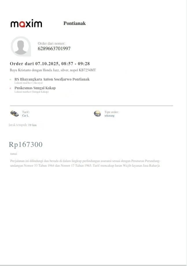 Dana digunakan untuk 1. Transportasi online ke puskesmas ambil rujukanPP Rp134.000 2. Transportasi online ke RS Bhayangkara PP Rp242,5002025-10-06 13:56:52