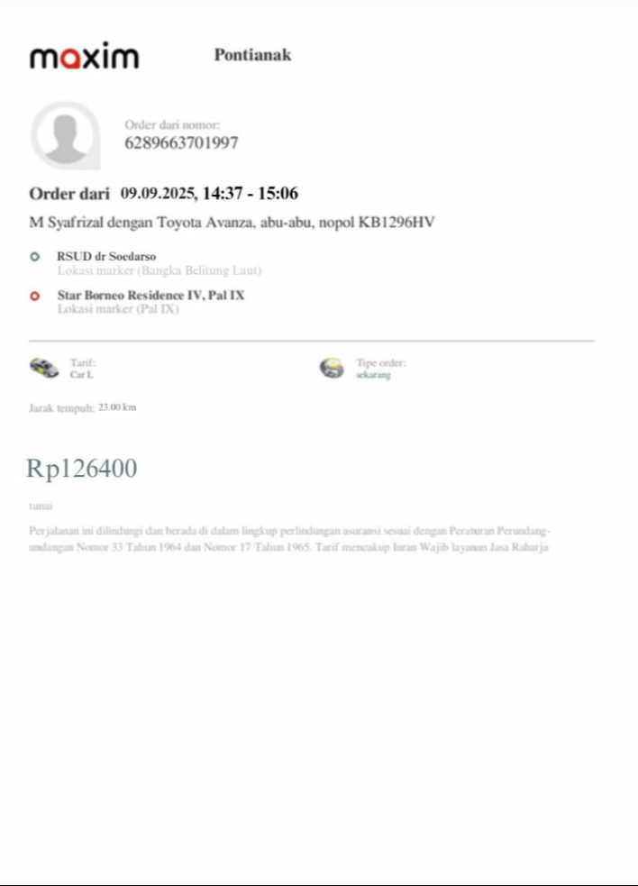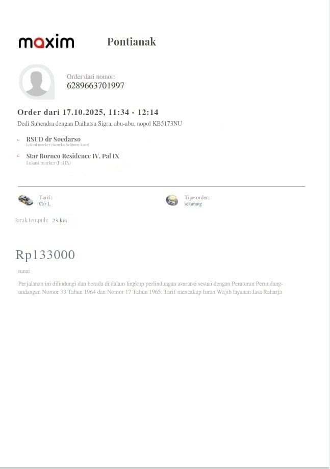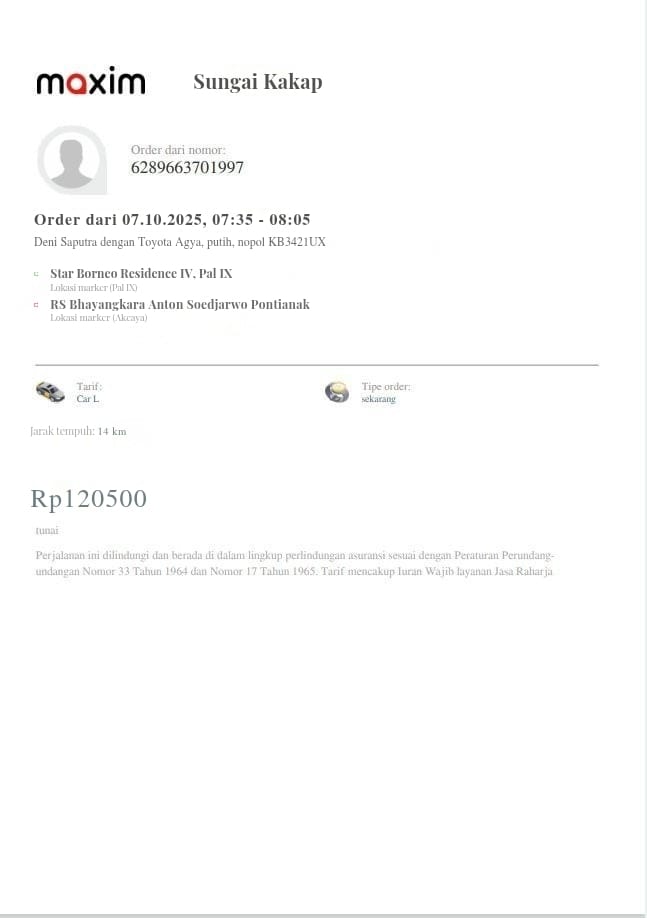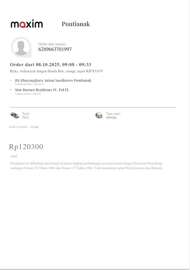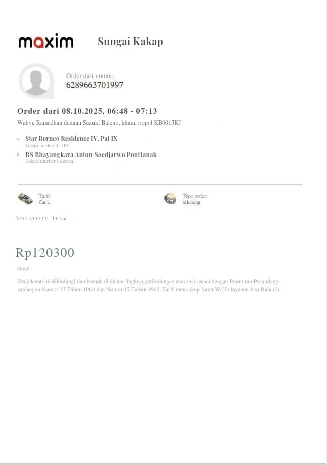 Dana digunakan untuk 1. Transportasi online ke puskesmas ambil rujukanPP Rp134.000 2. Transportasi online ke RS Bhayangkara PP Rp242,5002025-10-06 13:56:52