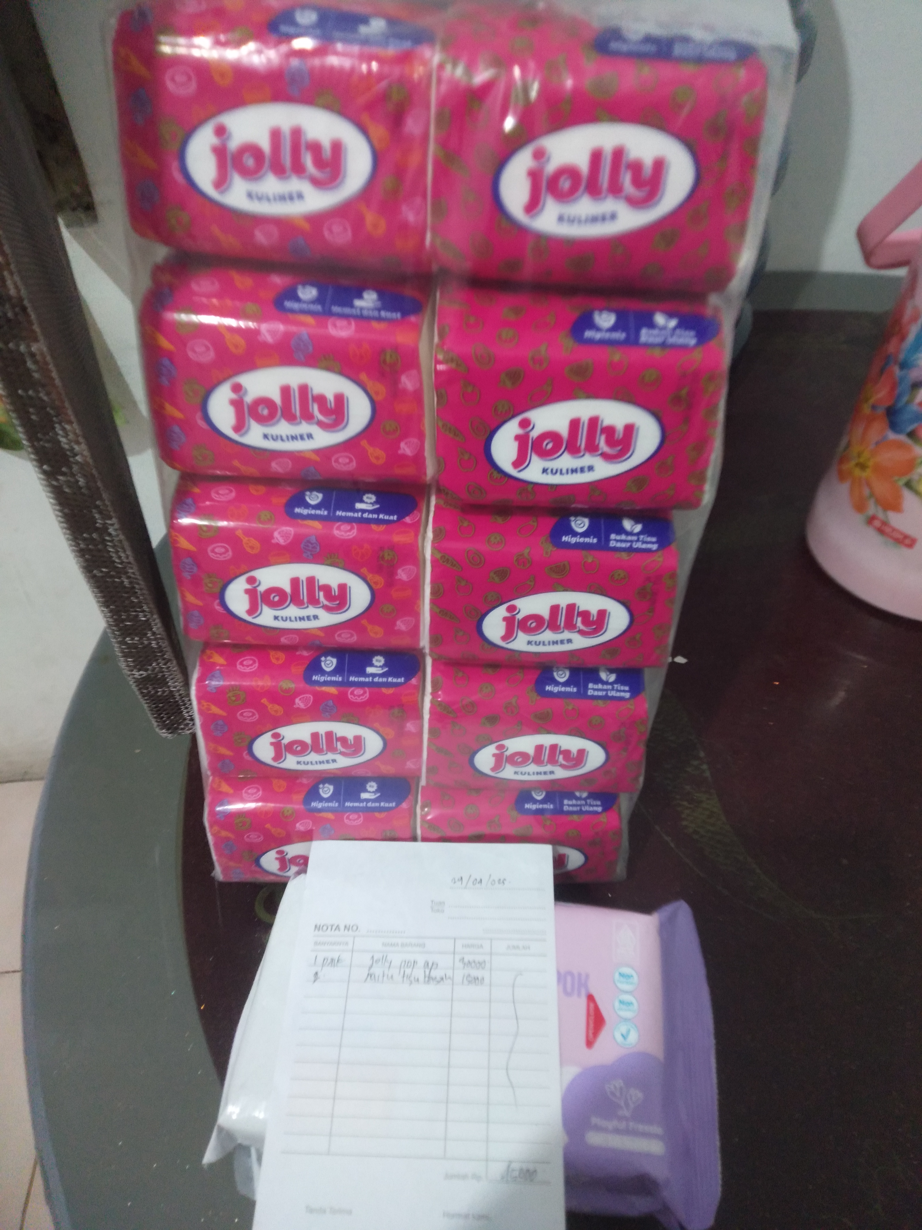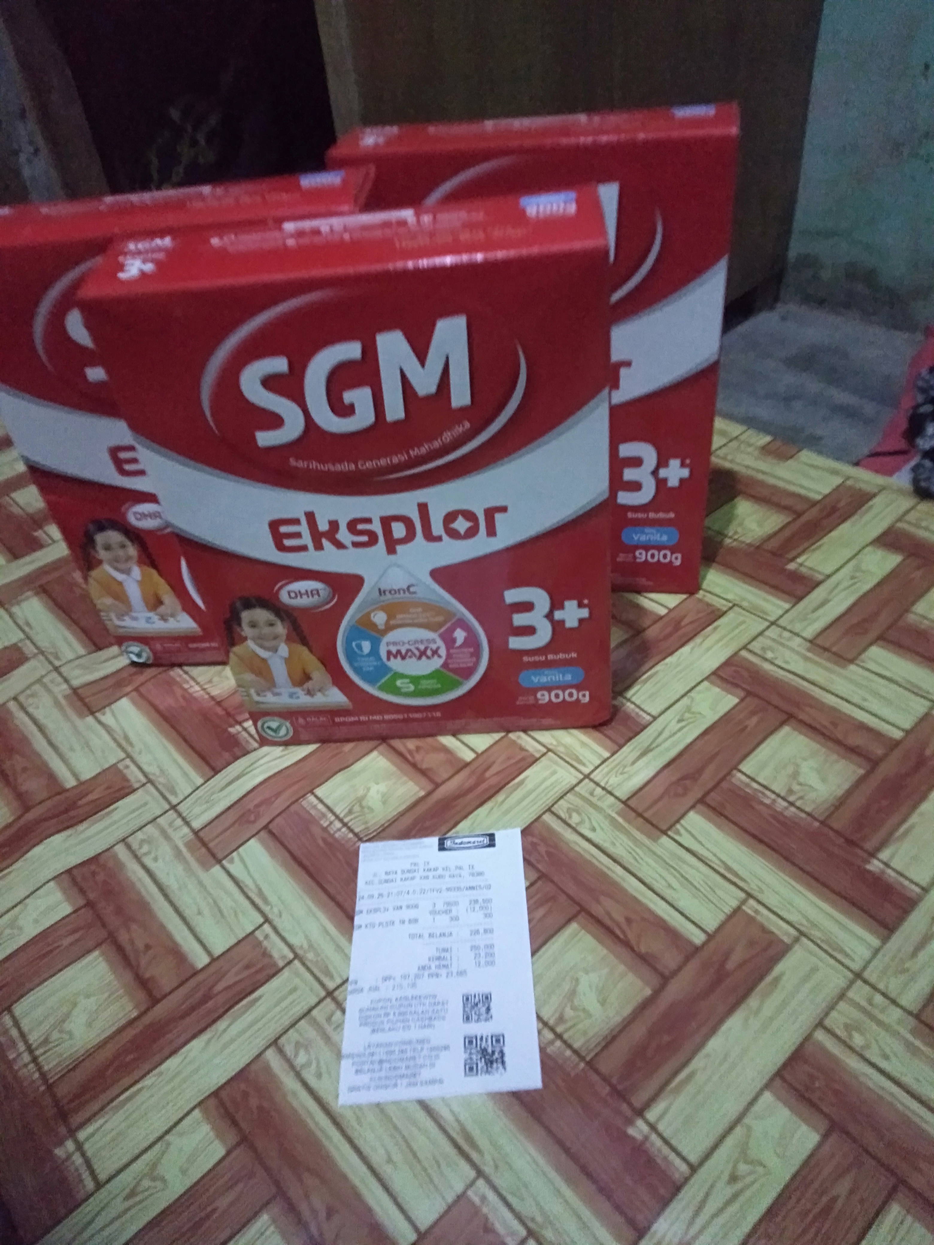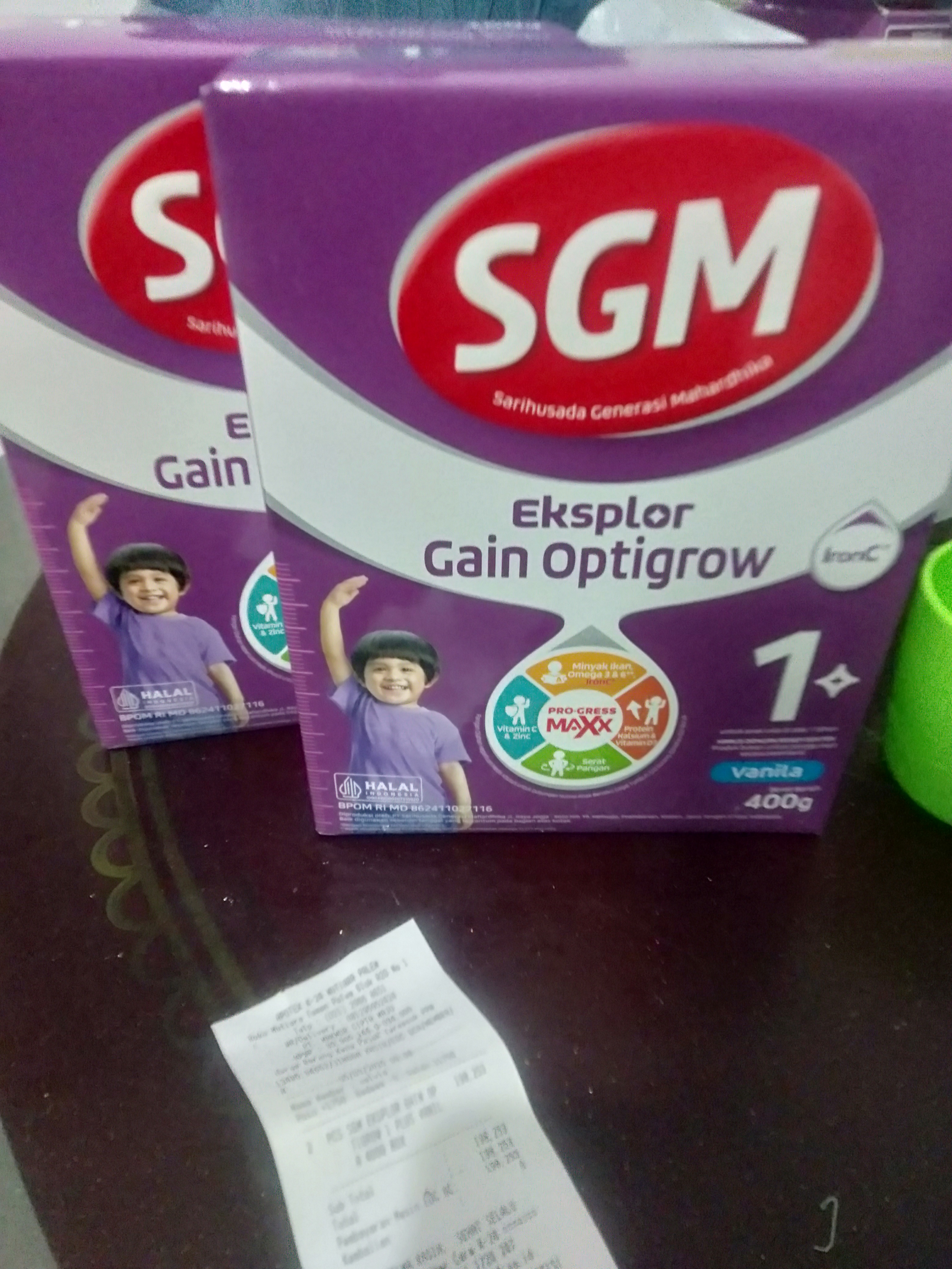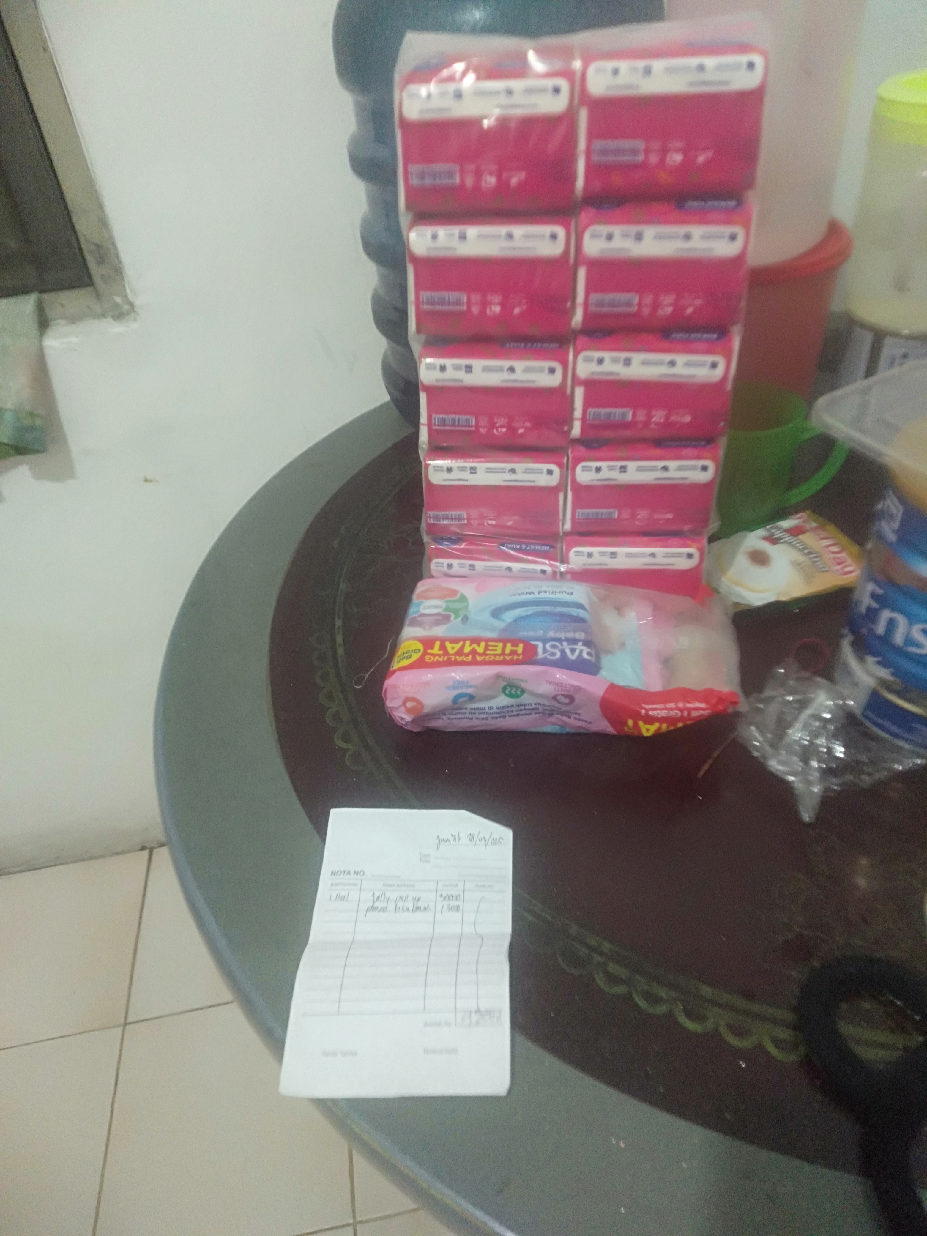 1. Susu SGM optigrow 4 box Rp396.000 2. Reimburse taxi online dan tol Rp218.000 3. Tisu kering dan basah Rp45.000 4. Konsumsi selama 2 minggu di Jakarta Rp1.500.000.2025-01-09 09:33:03