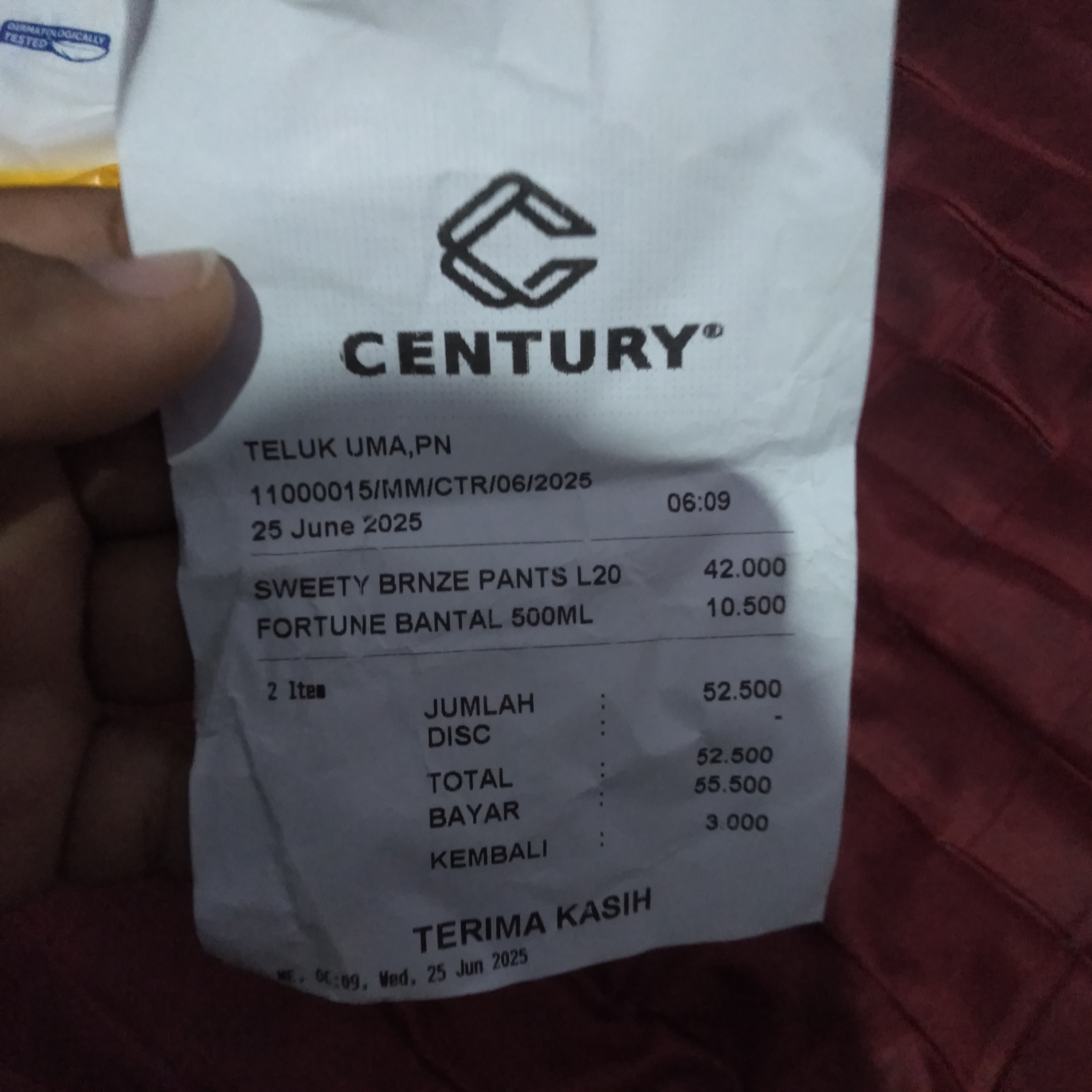 Dana digunakan untuk 1. Reimburse tiket Rp397.000 x 3 orang = Rp1.191.000 2. Reimburse Pampers Rp48,500 3. Reimburse tisubasah/kering Rp38,500 4. Reimburse susu optigrow Rp525.0002025-06-23 10:02:41