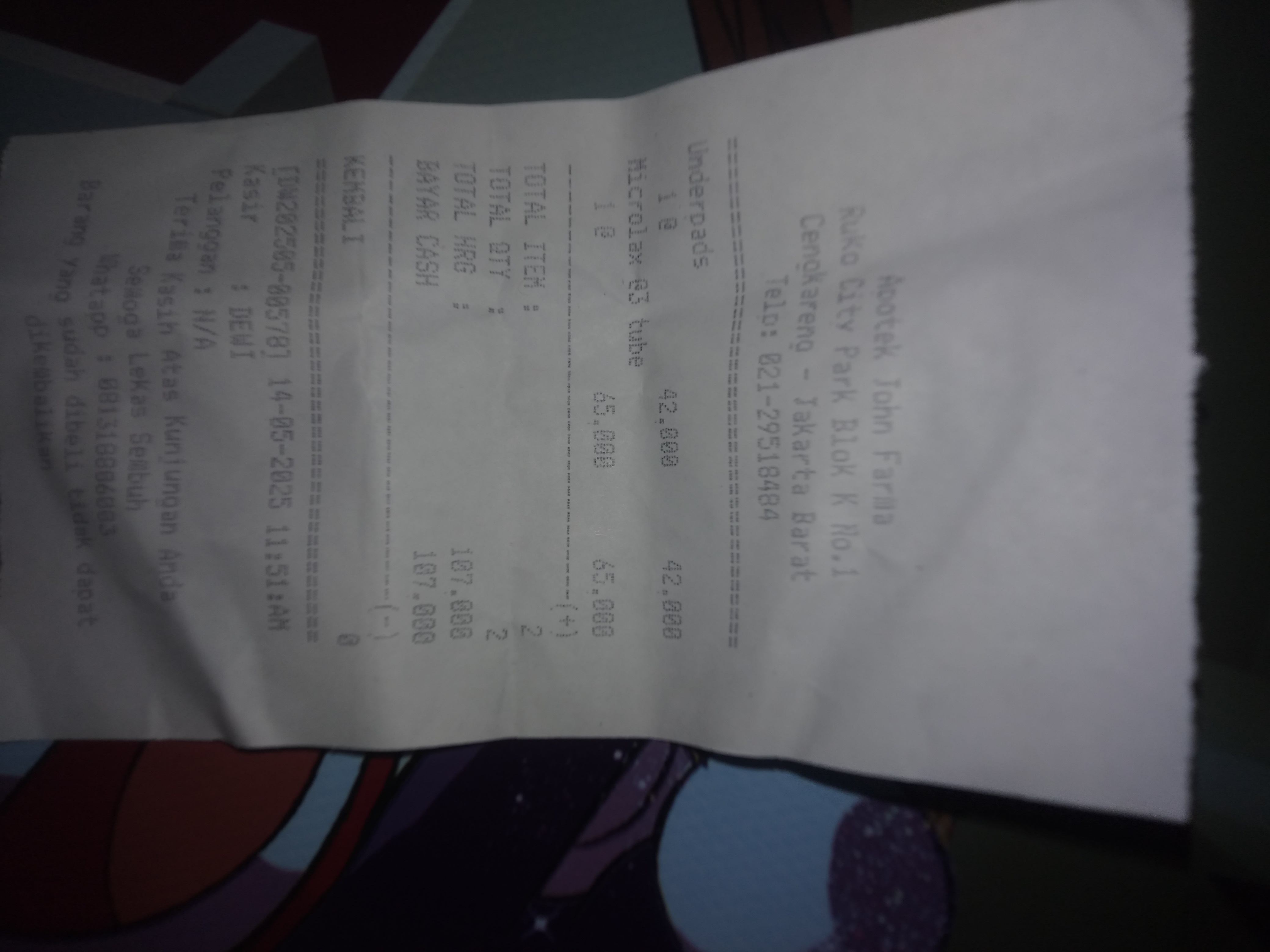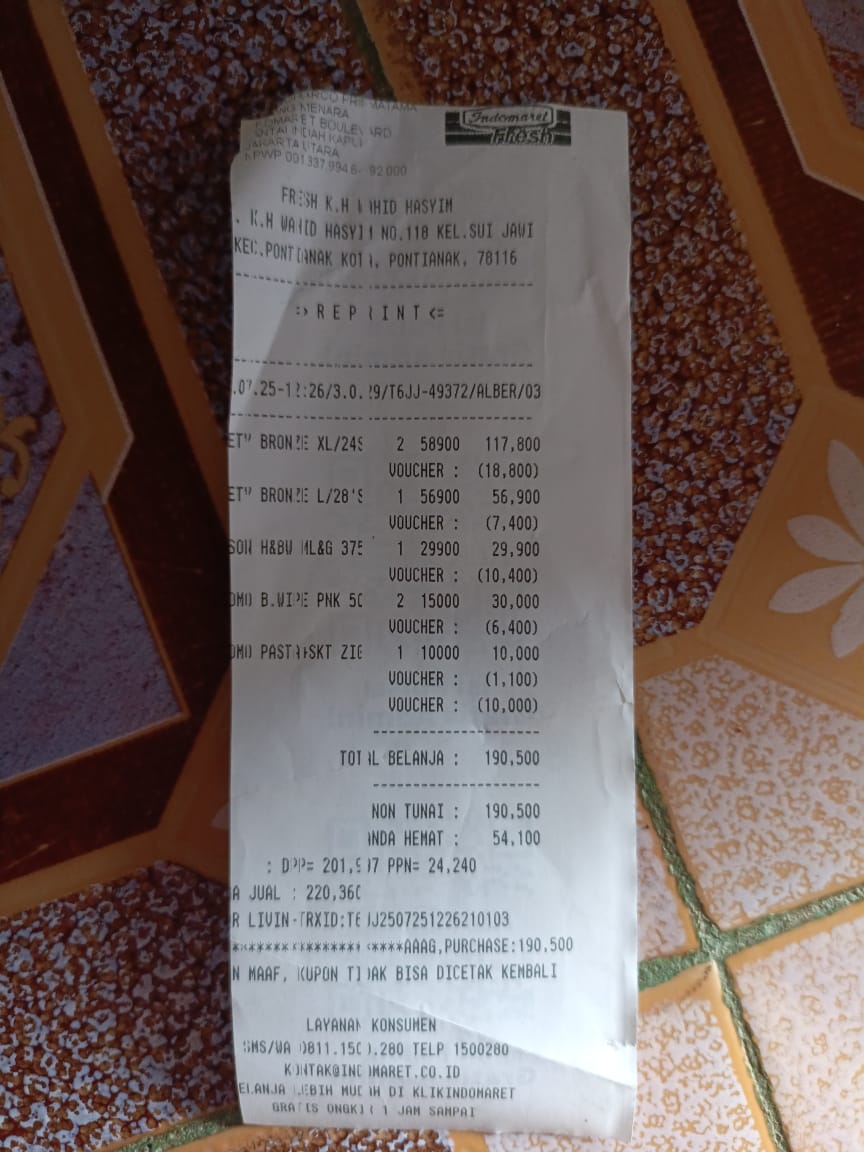 Dana digunakan untuk 1. Reimburse Tisu kering dan Tisu basah Rp56.000 2. Reimburse Underpad+mixrolax Rp107.000 3. Reimburse taxi online PP Rp201.000 4. Reimburse alat cek oksigen Rp52.000 5. Biaya konsumsi di Jakarta Rp1.000.0002025-06-03 15:27:38