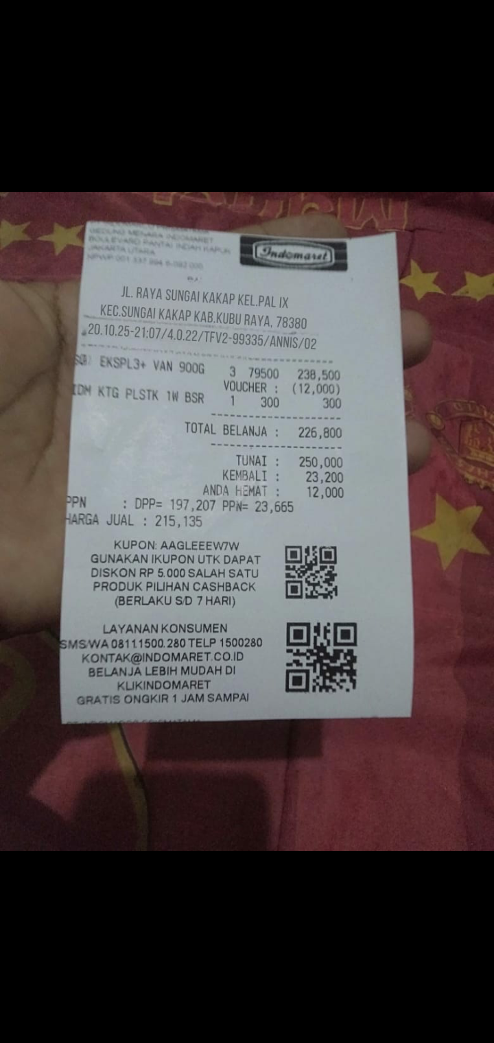 Dana digunakan untuk 1. Susu SGM optigrow 1box 800gr Rp182.000 2. Tisu basah dan kering Rp45.000 3. Biaya kosumsi di jakarta Rp997.5002025-04-29 09:11:11