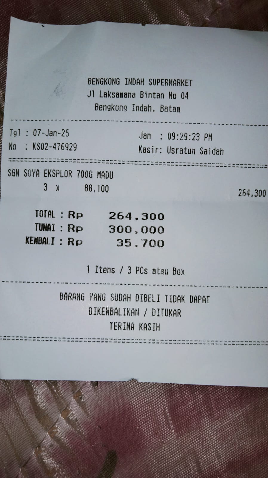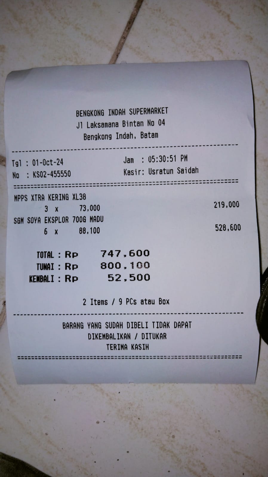 Dana digunakan untuk 1. Susu SGM soya 1+ 6 kotak = Rp88.000 x 6kotak = Rp528.000 2. Pempes Rp73.000 x 3bal = Rp219.000 untuk satu bulan 3. Reimburse Vitamin voakids Rp200.0002024-10-02 09:23:44