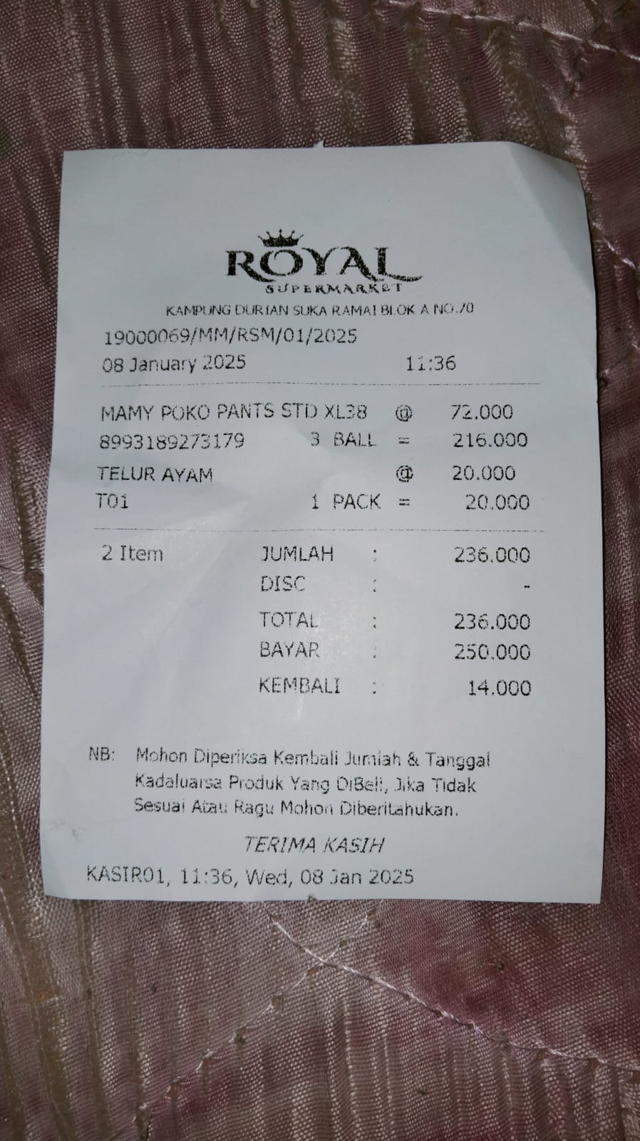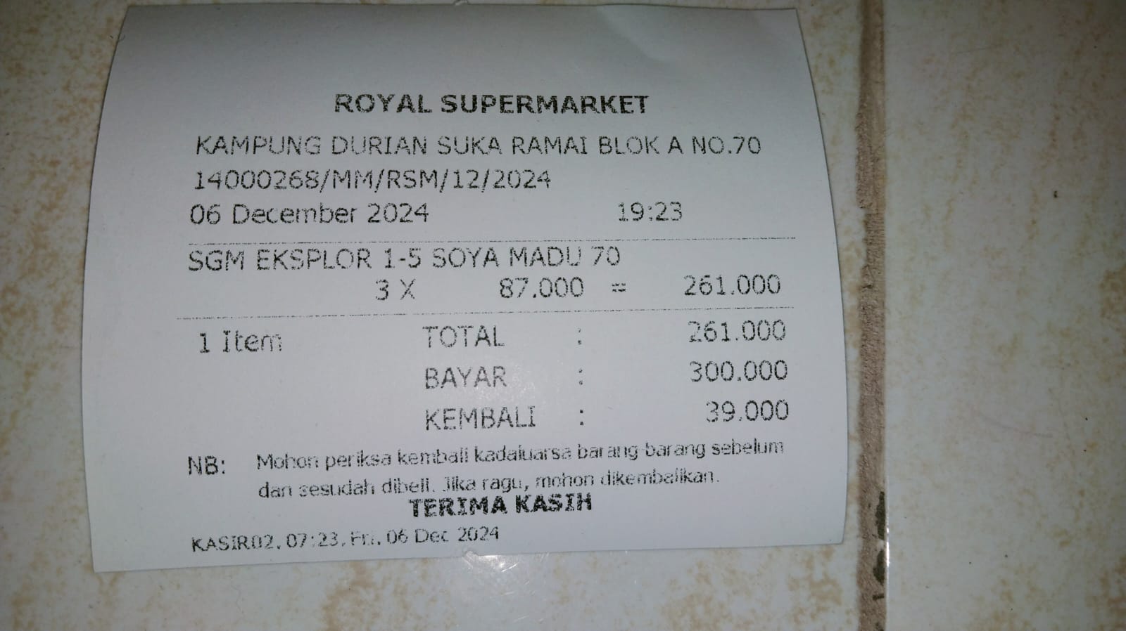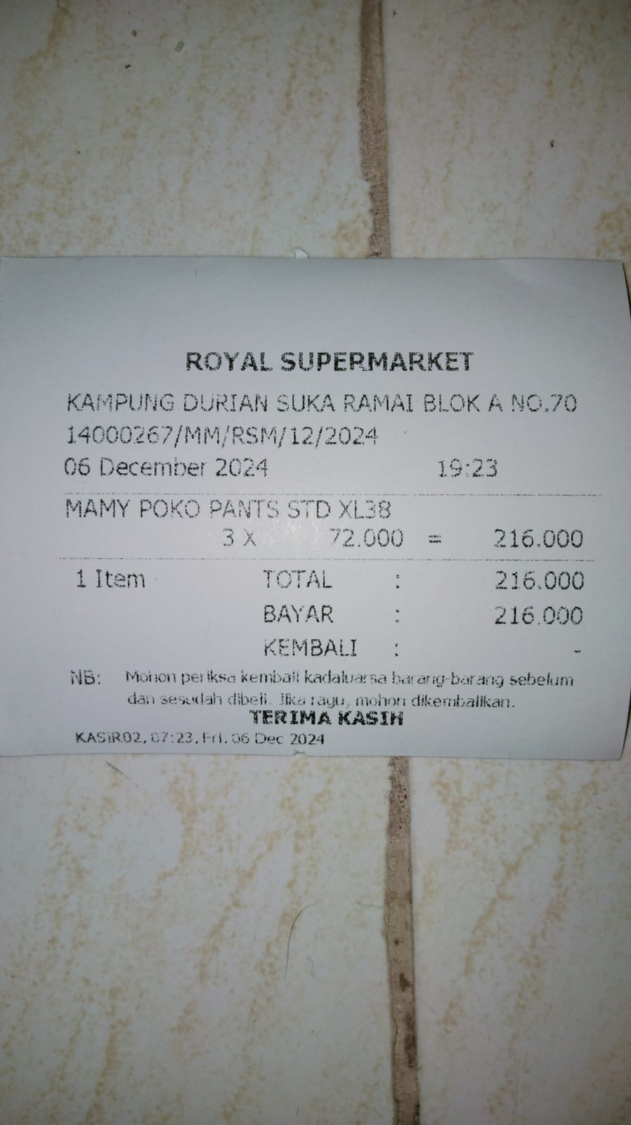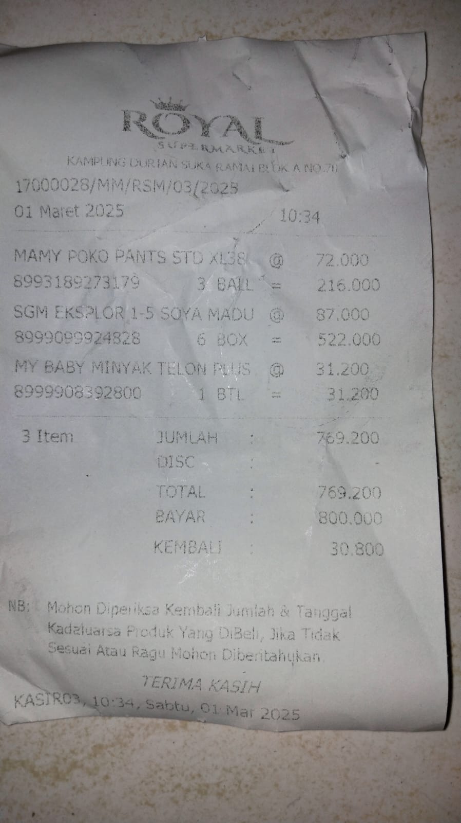 Dana digunakan untuk 1. Susu SGM soya 1 + madu 3 kotak Rp88.000 x 3 pcs = Rp264.000 2. Pampers mamy pokok Rp73.000x 3 ball = Rp219.000 3. Vitamin nutrimax 1 botol Rp230.000.2024-11-06 09:31:57
