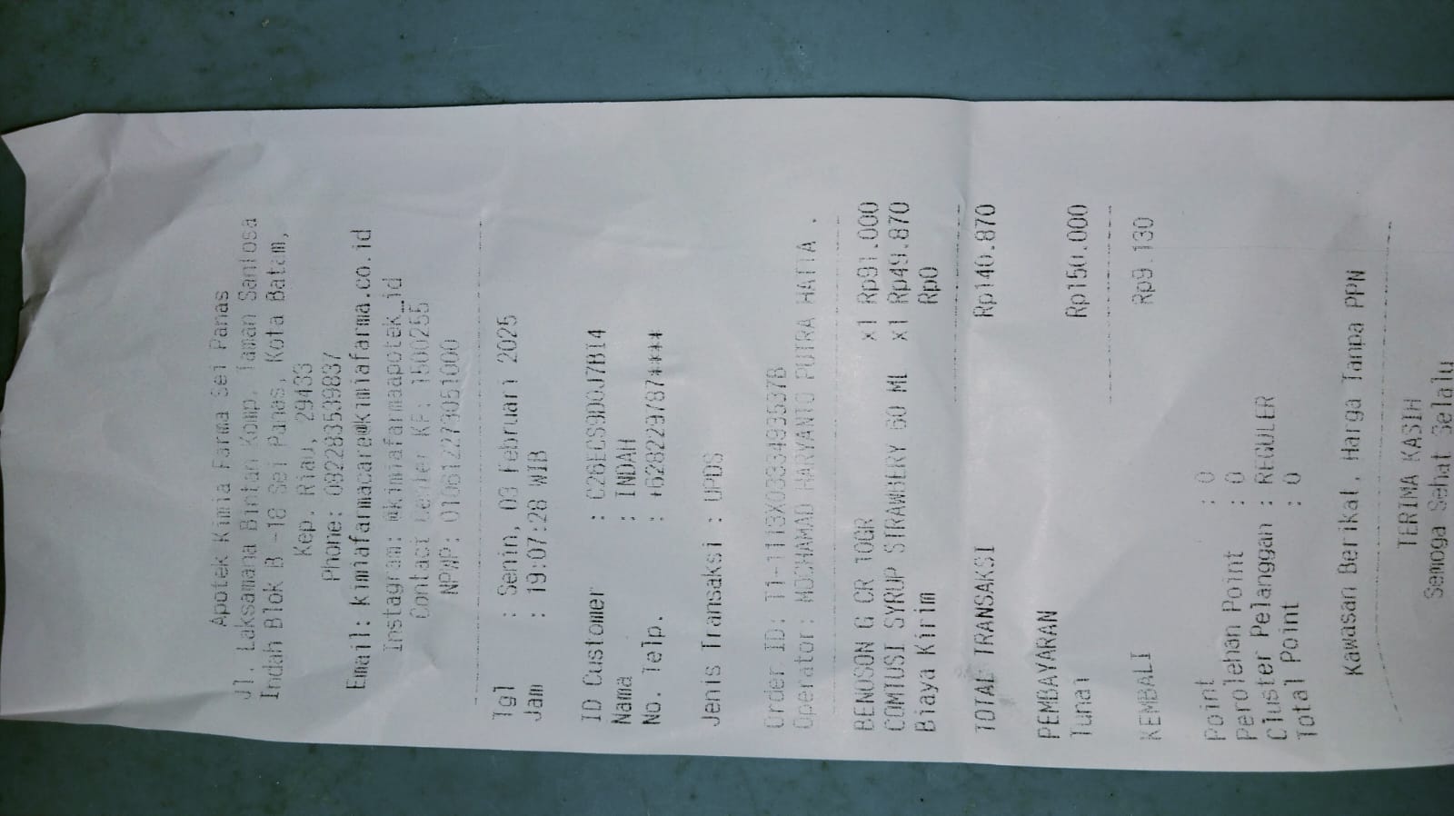 Dana digunakan untuk 1. Reimburse Susu sgm soya 1+ Rp528.000 2. Reimburse Pampers kamu pokok Rp219.000 3. Vitamin nutrimax kids Rp219.000 x 2 botol= Rp438.000 4. Obat elergi Rp90.000 5. Obat sildenafil 90 bungkus Rp 500.0002025-03-04 09:08:42