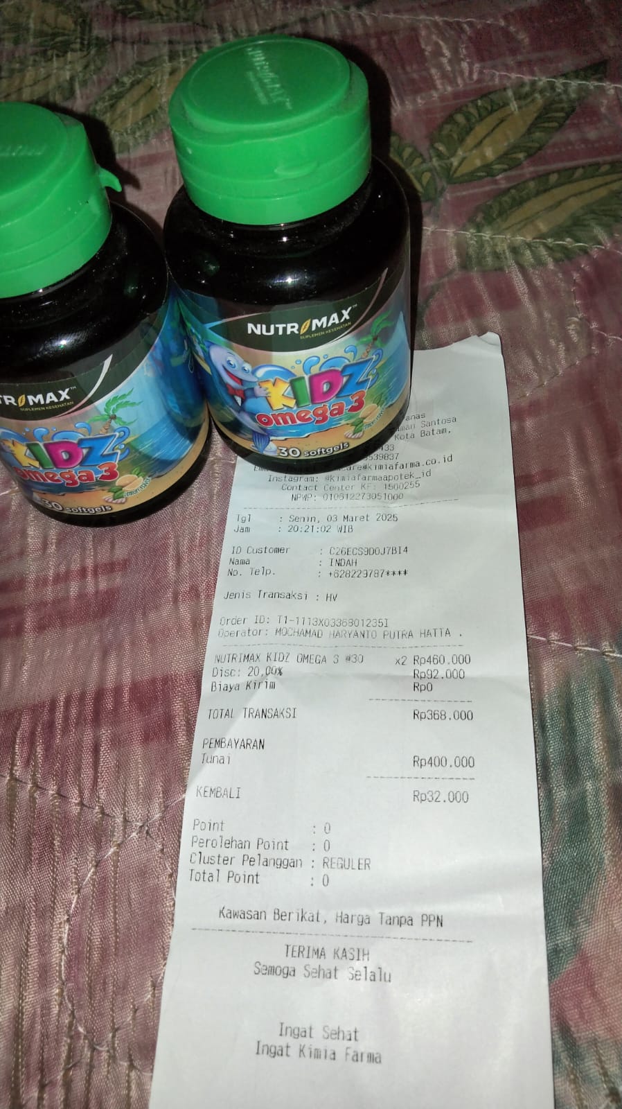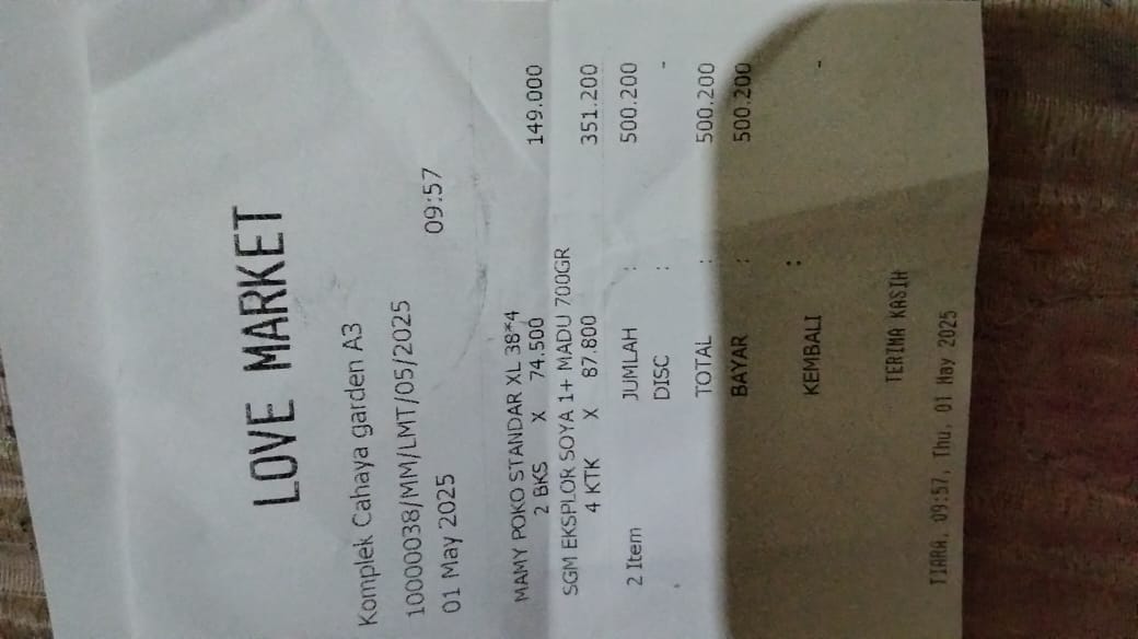 Dana digunakan untuk 1. Susu SGM soya 1 + Rp88.000 x 6 dus = Rp528.000 2.Pampers mamy pokok Rp73.000 x 2 ball= Rp146.000 3. Vitamin nutrimax kids Rp219.0002025-04-08 09:36:51