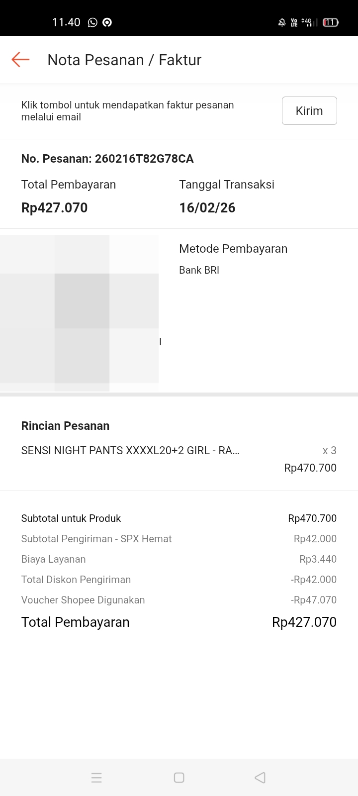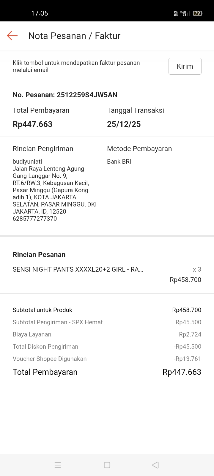 Dana digunakan untuk: 1. 4 Pampers Baby Happy XXL @46.900 Rp187.600 2. 2 Tisu kering @9.550 Rp19.100 3. 2 Tisu basah @12.530 Rp25.060.