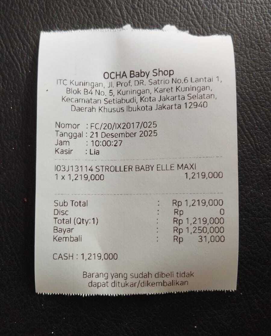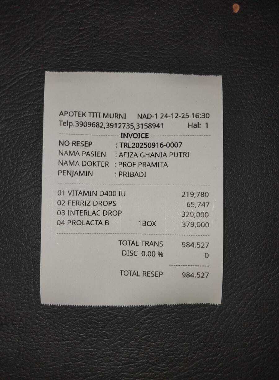 Dana digunakan untuk 1. Stroller untuk ke RS Rp1.200.000 2. Tisu basah 2 pack Rp13.000 3. Vitamin prove d 1 Rp219.780 4. Interlac Rp320.000 5. Prolacta b Rp379.0002025-12-22 17:33:38