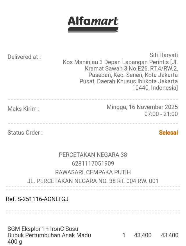 Dana digunakan untuk pembelian susu SGM 400gr2025-09-04 08:58:26