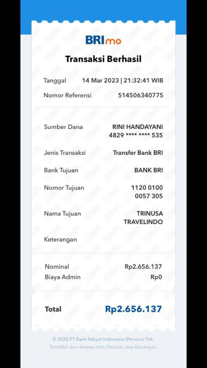 Ke rekening ****004680535 a/n Rini handayani