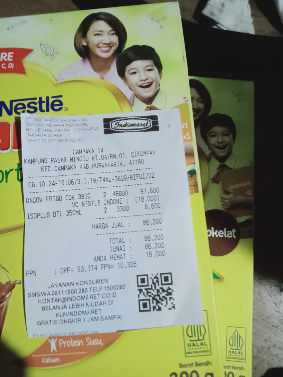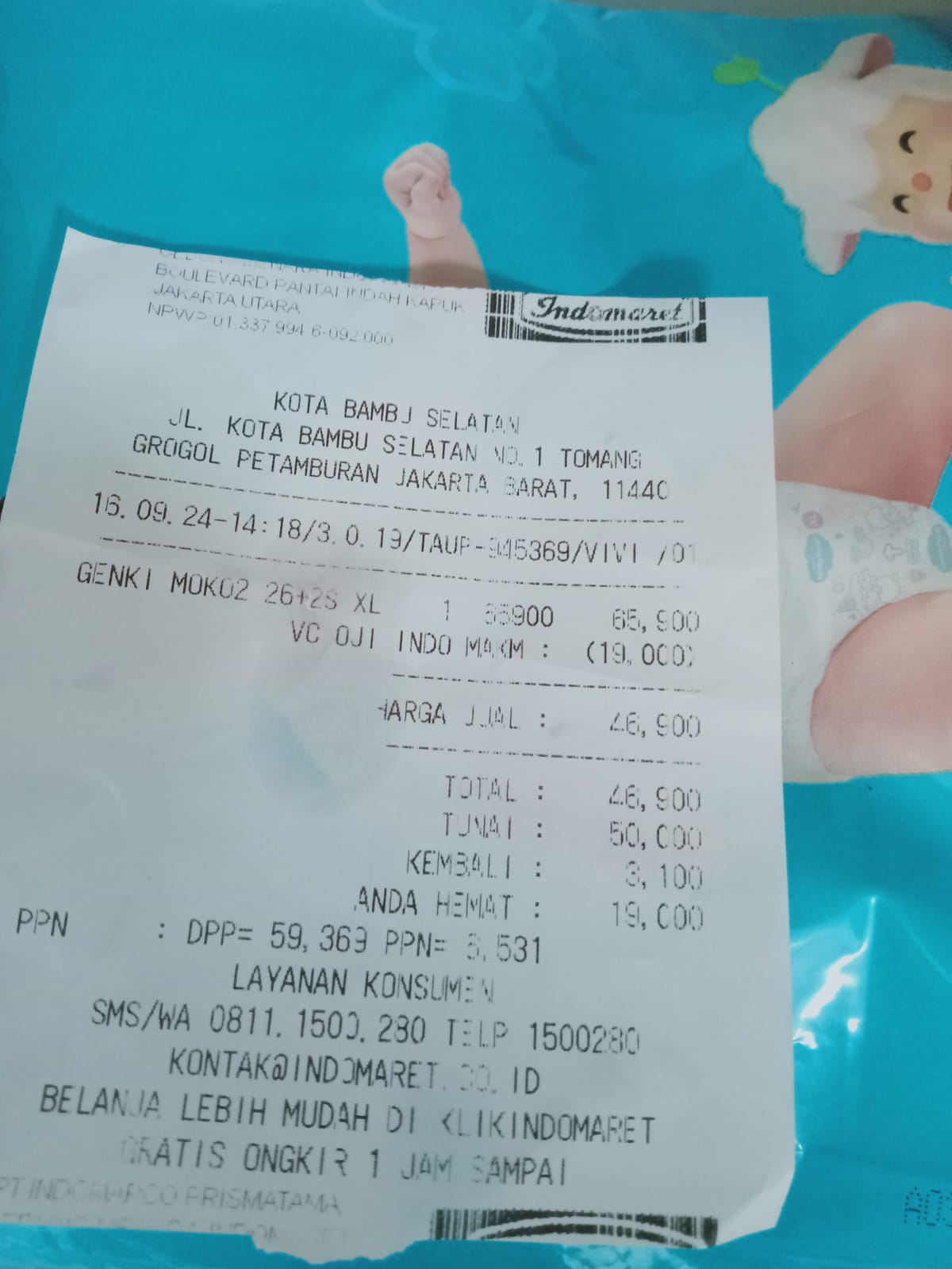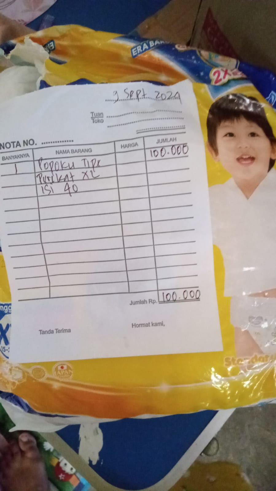 Dana digunakan untuk 1. Vidoran smart sufor Rp85.000 2. Popoku XL 40 Rp100.0002024-09-11 13:09:07