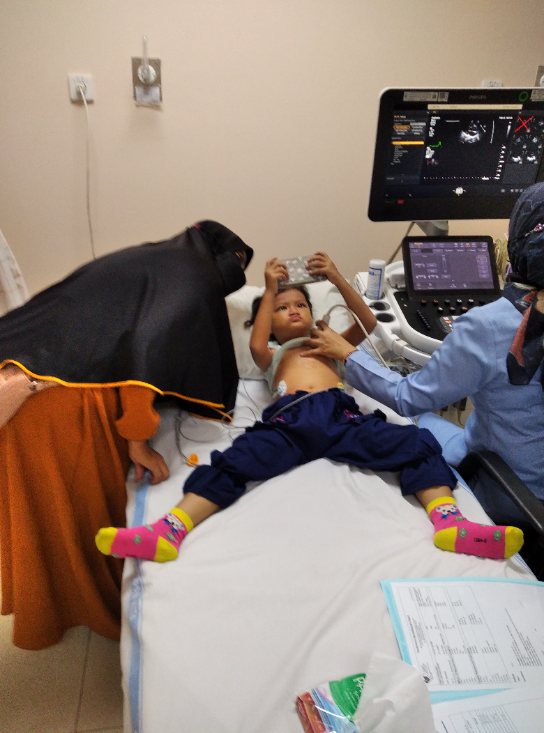 Izinkan aku mengabarkan kondisi “Aina” anakku saat ini ya. Anakku baru saja kontrol di Rumah Sakit Jantung Harapan Kita Jakarta. Alhamdulillah hasil echo-nya bagus, namun masih ada sedikit lubang di sela-sela jahitan dan tampak turbulensi.
