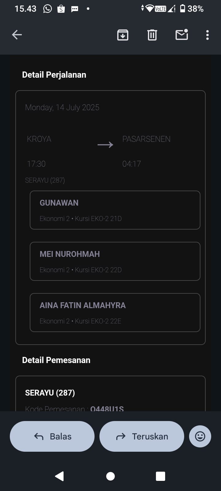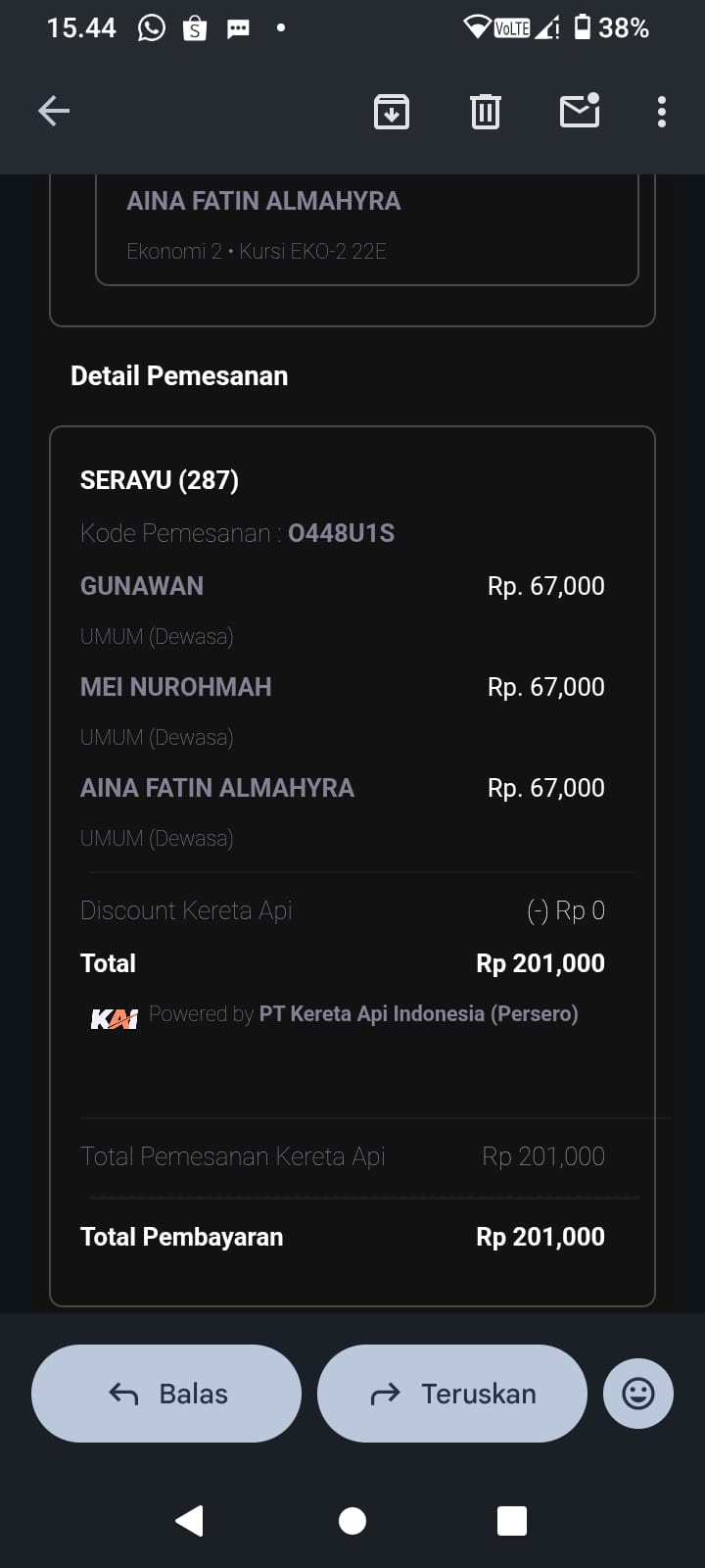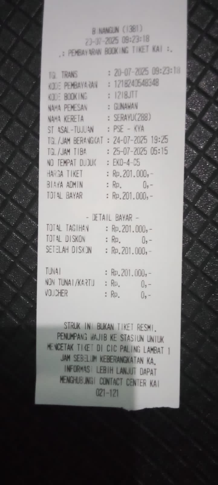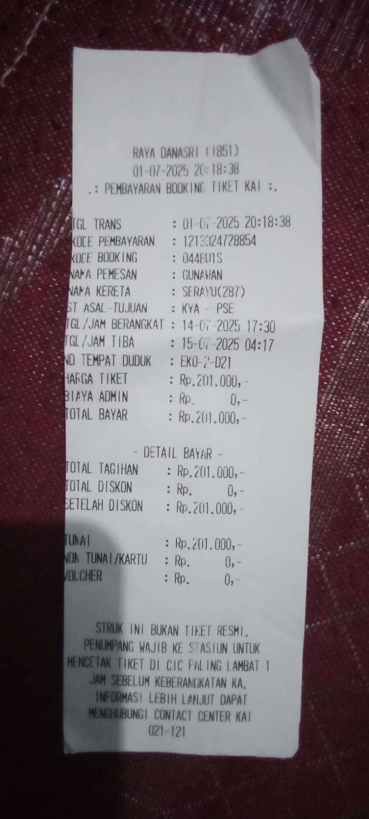 Dana digunakan untuk 1. Konsumsi di perjalanan pulang dari rs Rp180.000 2. Transportasi kereta pulang dari rs 3orang Rp750.0002025-02-12 09:23:55