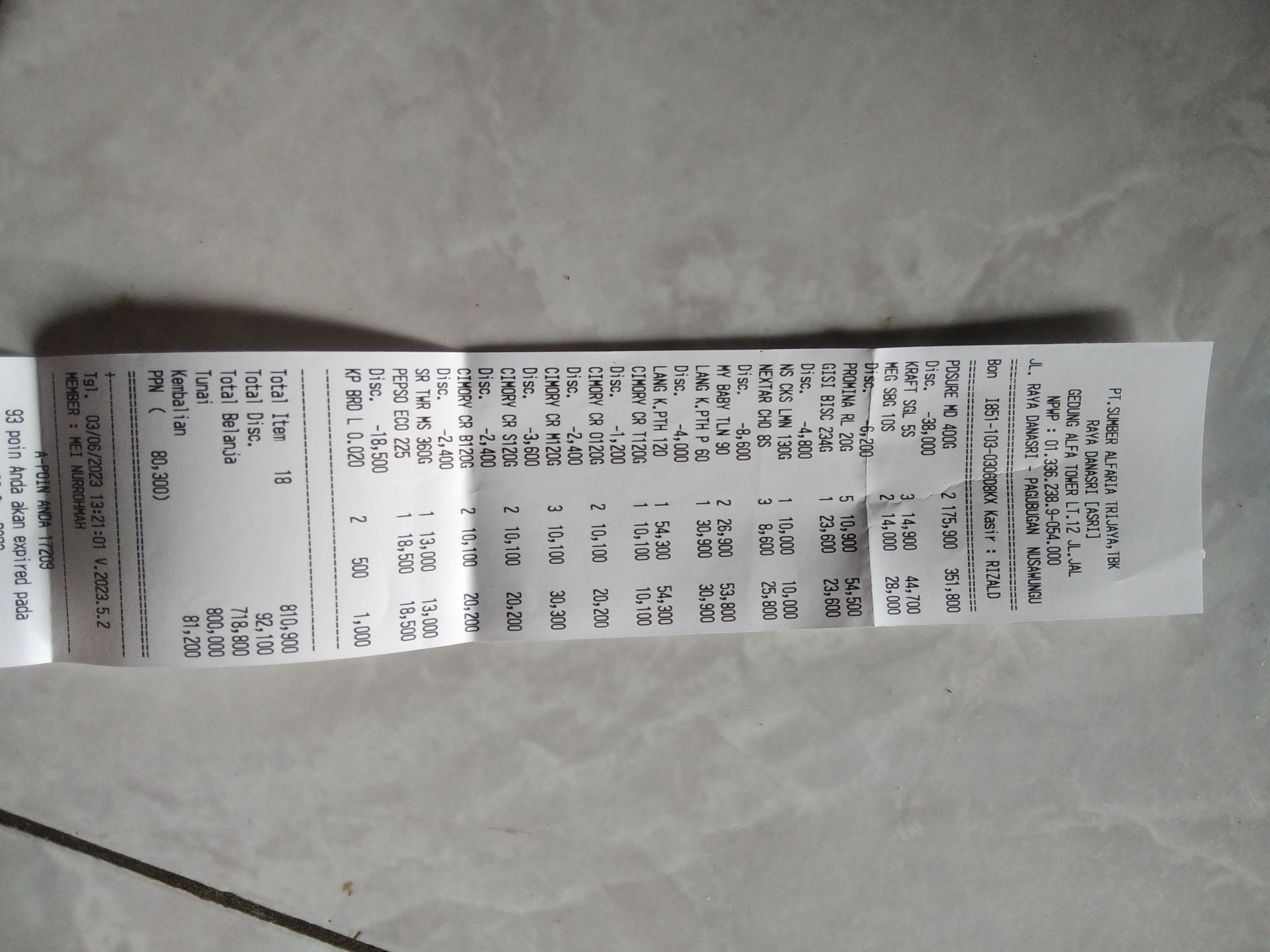 4. Tisu kering (2 pax merk nice) + sabun mandi (merk kodomo baby 1 botol) Rp60.000