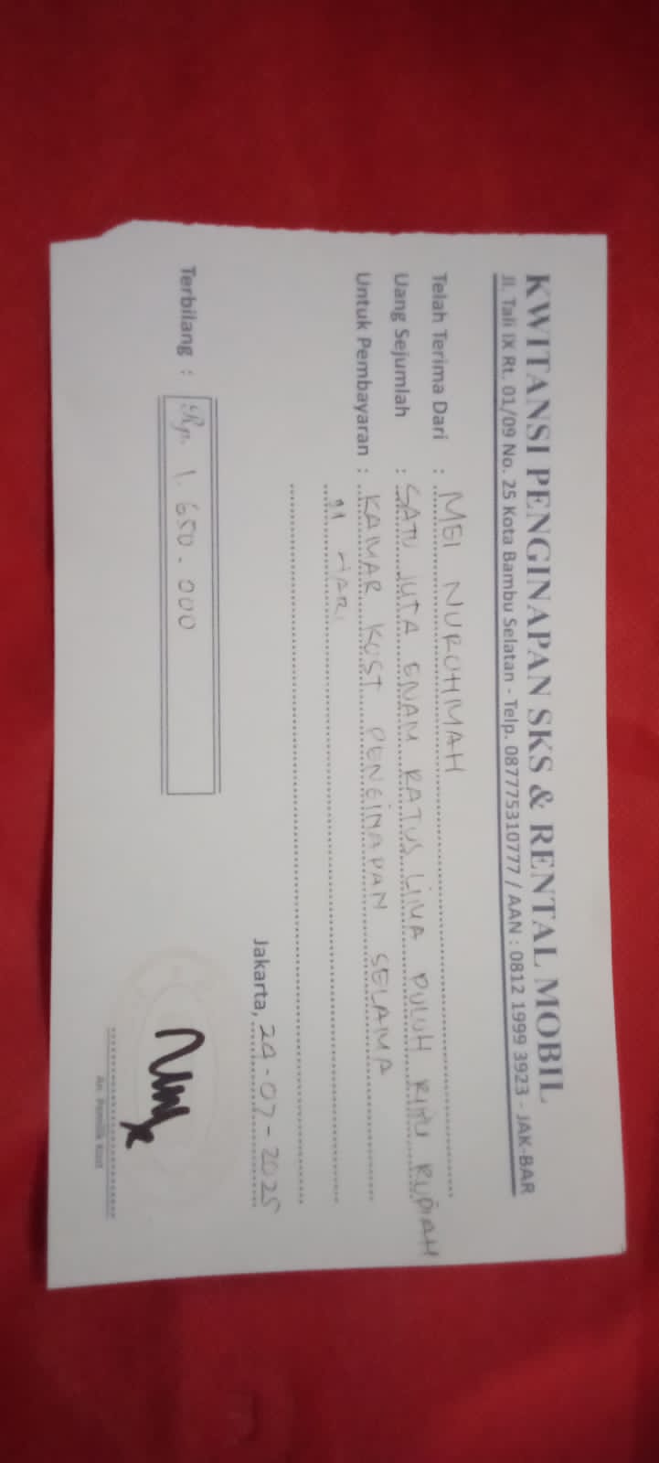 Dana digunakan untuk 1. Reimburse tiket kereta api sebesar Rp201.000 2. Biaya kost di Jakarta 11 hari × 150.000 =Rp 1.650.000 3. Minyak telon baby Rp32.000 4. Tiket kereta ap pulang nanti setelah selesai kontrol dan echo Rp 201.0002025-07-16 12:12:25