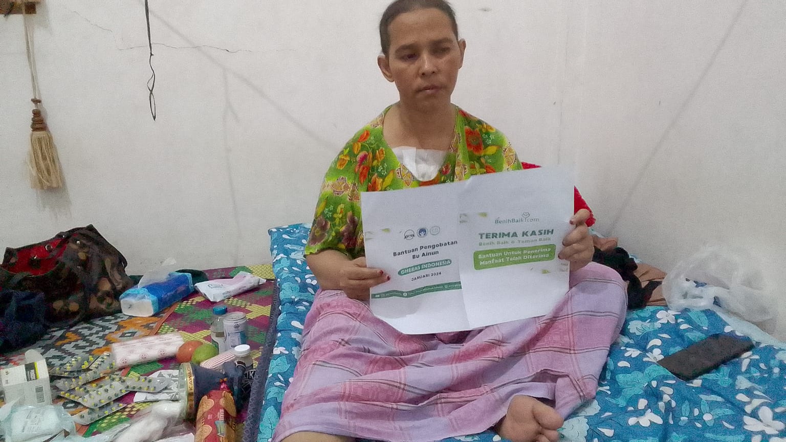 Mohon doakan Ibu Ainun ya TemanBaik, agar kanker payudaranya bisa segera hilang dan dapat ia dapat kembali ceria serta bisa beraktivitas seperti sedia kala.