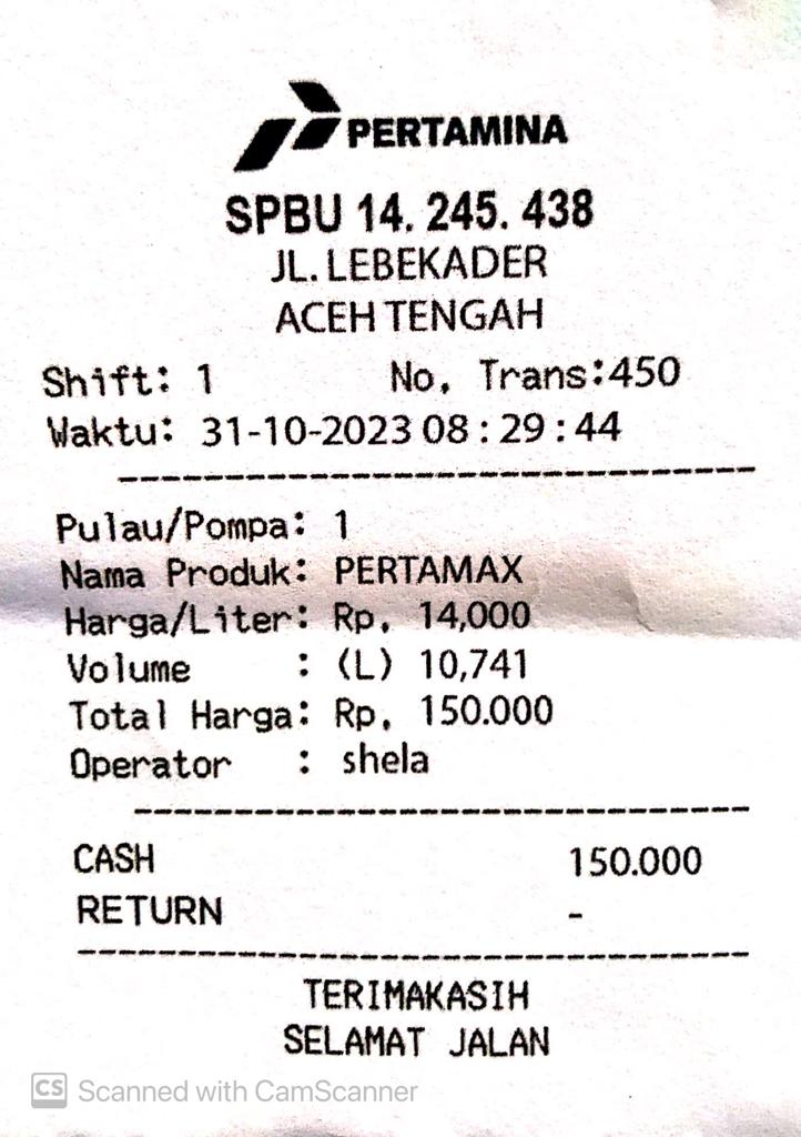 Berikut juga dilampirkan nota struk pengeluaran dari Ibu Ainun.