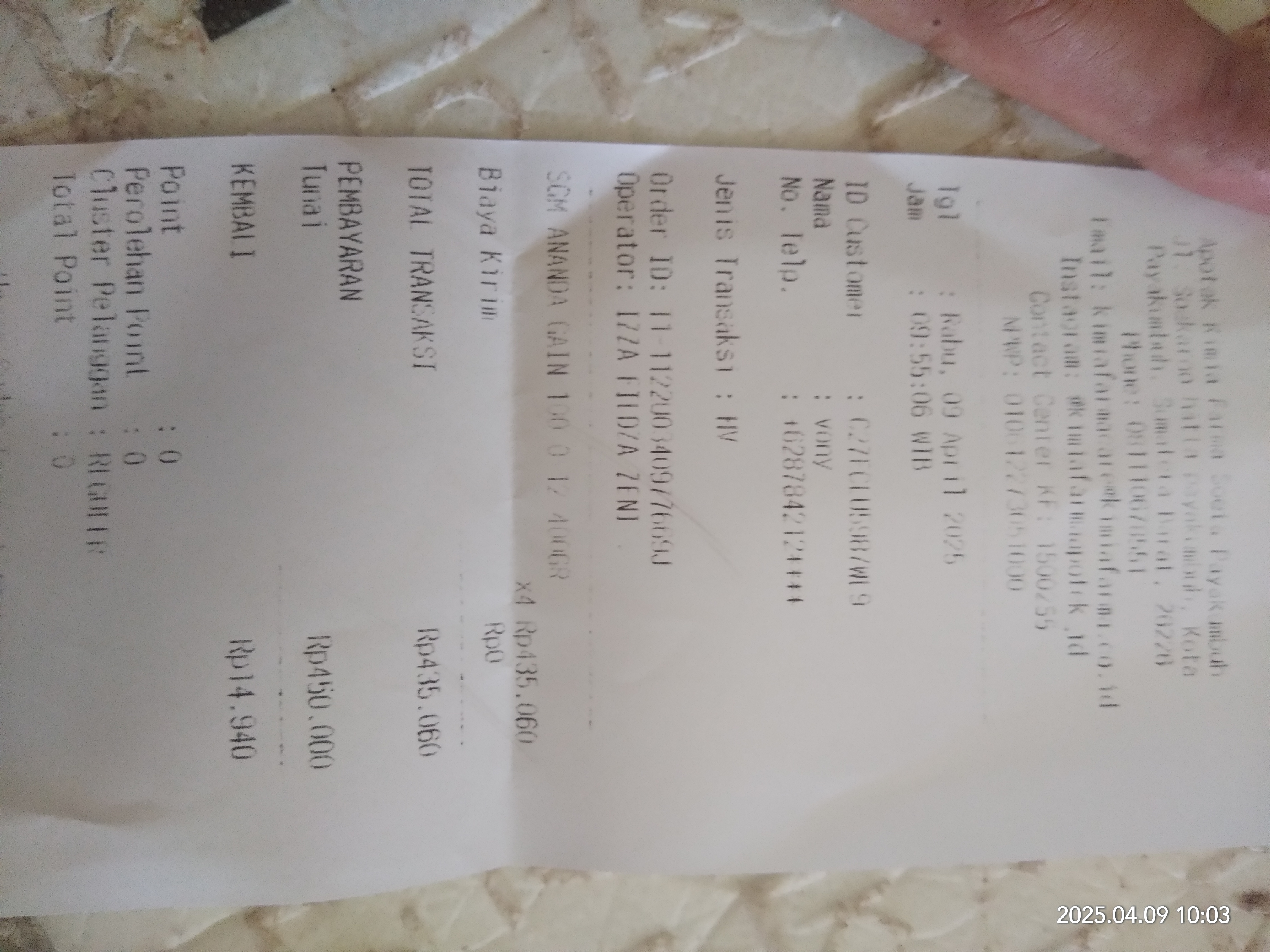 Dana digunakan untuk Susu SGM Gain 100 Rp109.000 x 5 dus = Rp545.0002025-04-08 09:36:23