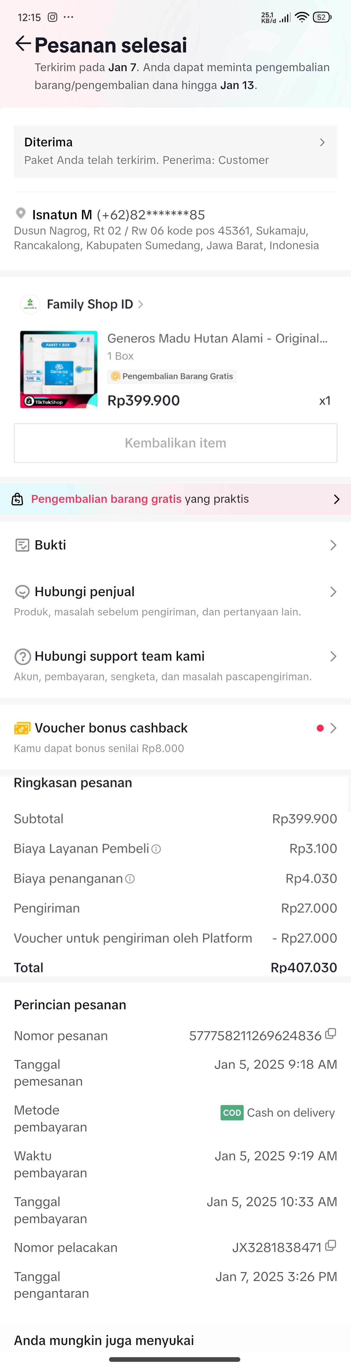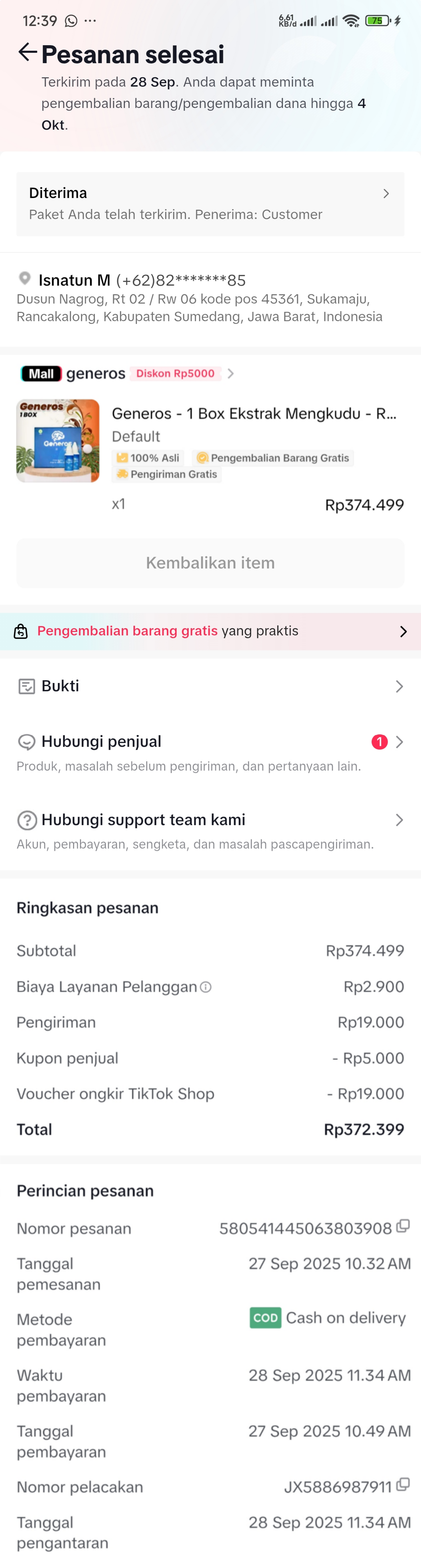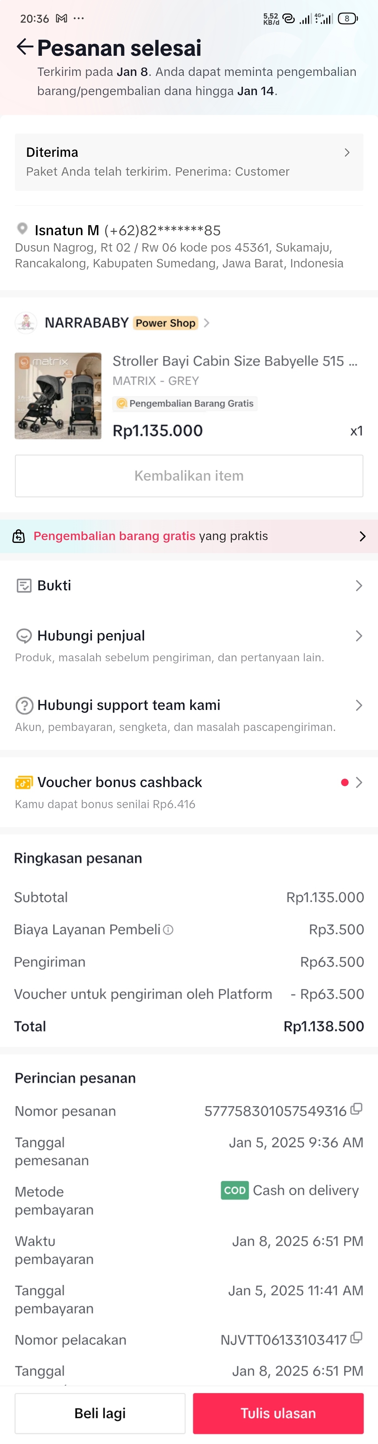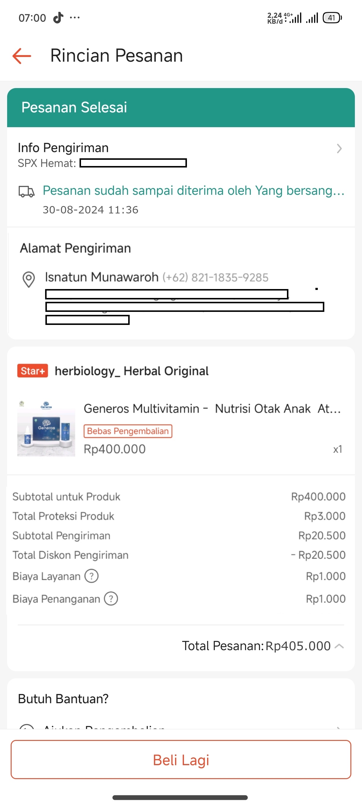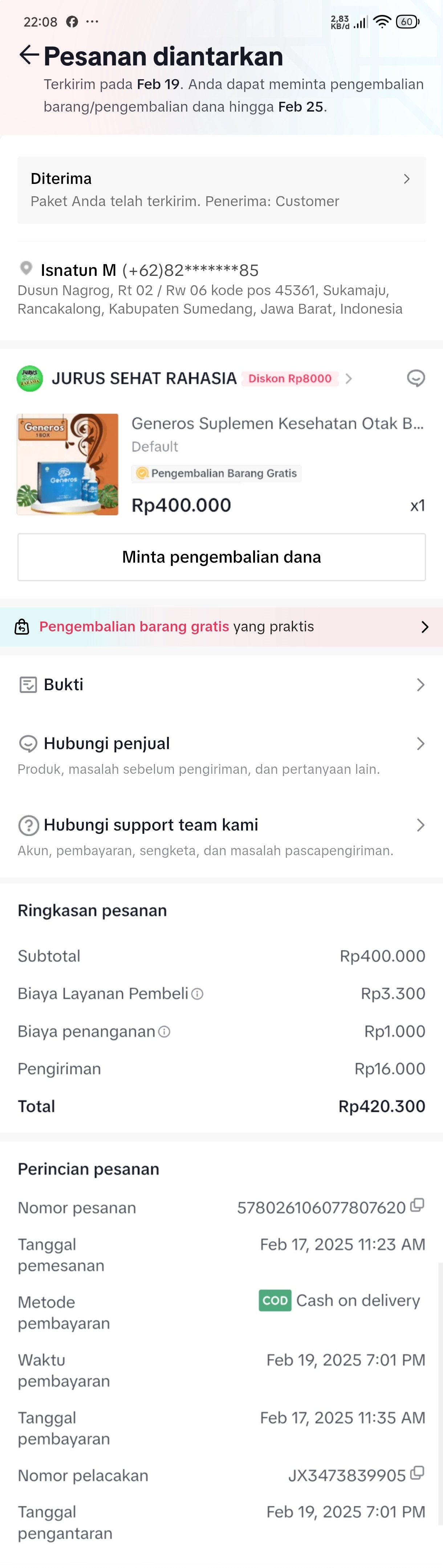 1. Pembelian 4 kaleng susu nutren Junior + ongkir 375.000 × 4 = Rp1.500.000 2. Pembeliam pampers makuku M28 56.700 x 3bal = Rp170.000 3. Pembelian vitamin bicara Generos Rp. 400.0002024-09-26 09:21:58