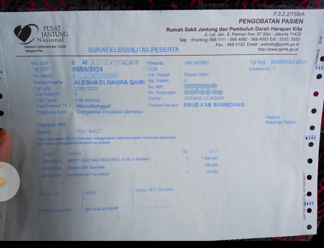 1. Transportasi dari Sumedang ke RS Harapan Kita Rp180.000