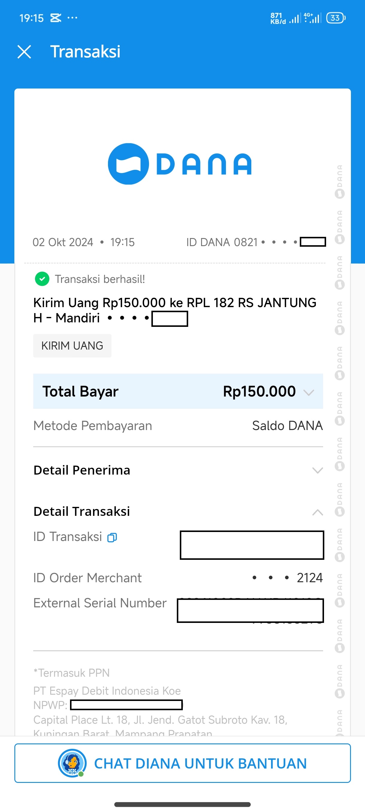 Dana digunakan untuk 1. Susu nutren Junior + ongkir 375.000 × 4 = Rp1.500.000 2. Pampers makuku M28 56.700 x 3bal = Rp170.000 3. Vitamin bicara Generos Rp. 380.0002024-09-02 10:41:15