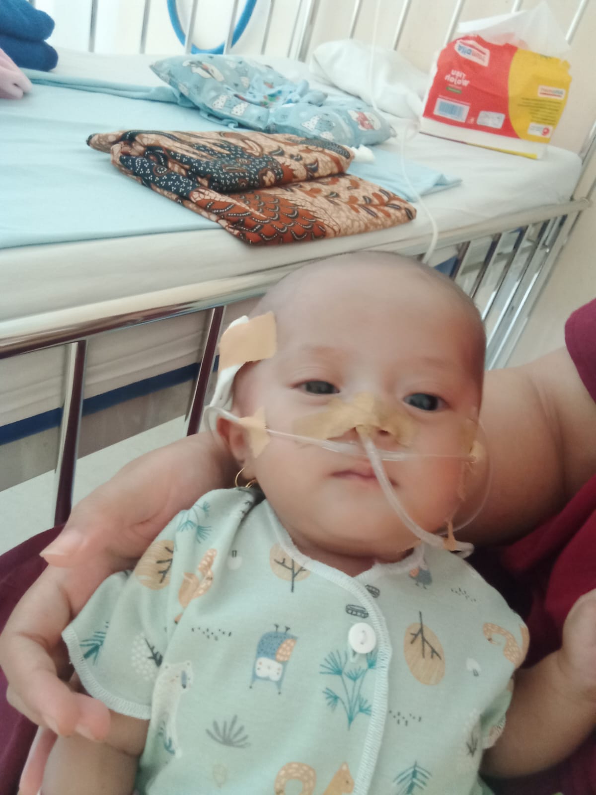 Anak saya Alesha Elnaura Qaireen (1 thn), nama cantik yang kuberikan ini ternyata tidak sebagus kesehatannya. Anak saya lahir dalam kondisi prematur dengan saturasi 60%, bagian tubuh seperti bibir, kuku tangan dan kakinya kebiruan. Setelah pemeriksaan lebih lanjut, dokter mendiagnosa Alesha sakit kelainan jantung bawaan kompleks.