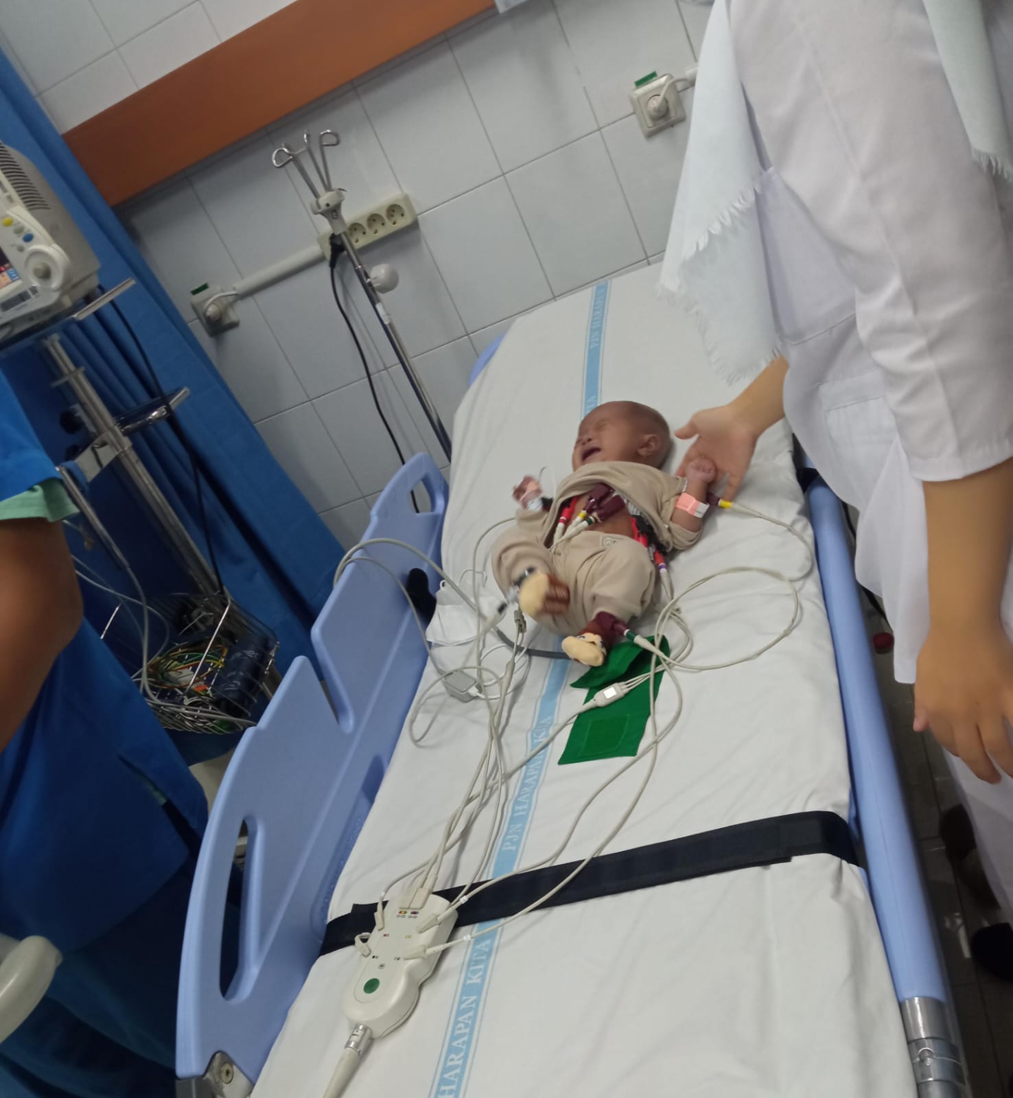 Alhamdulillah beberapa kebutuhan Alesha sudah terpenuhi, kondisi Alesha saat ini masih dalam stabil, saturasi 70% ya meskipun masih dengan kebiruan di ujung kaki, tangan dan bibirnya.
