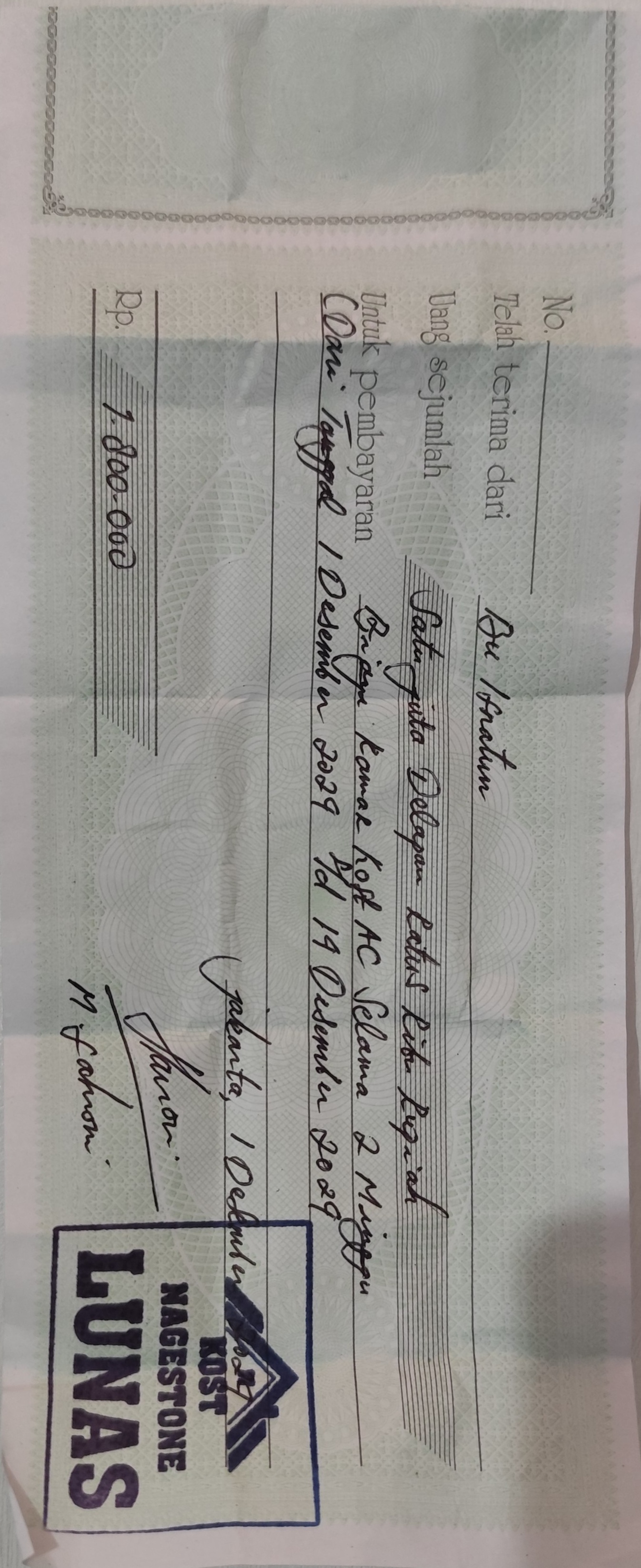 Dana digunakan untuk 1. Biaya kost 1 minggu di Jakarta Rp1.000.000 2. Konsumsi di Jakarta seminggu Rp700.000 3.Transportasi dari sumedang- Jakarta Rp110.000/× 2 = Rp. 220.000 4. Susu Nutren Junior Rp375.000 x 4 kaleng Rp1.500.000 5. Vitamin Generos Rp400.000 Dokumen pendukung 2502252025-02-26 11:17:07