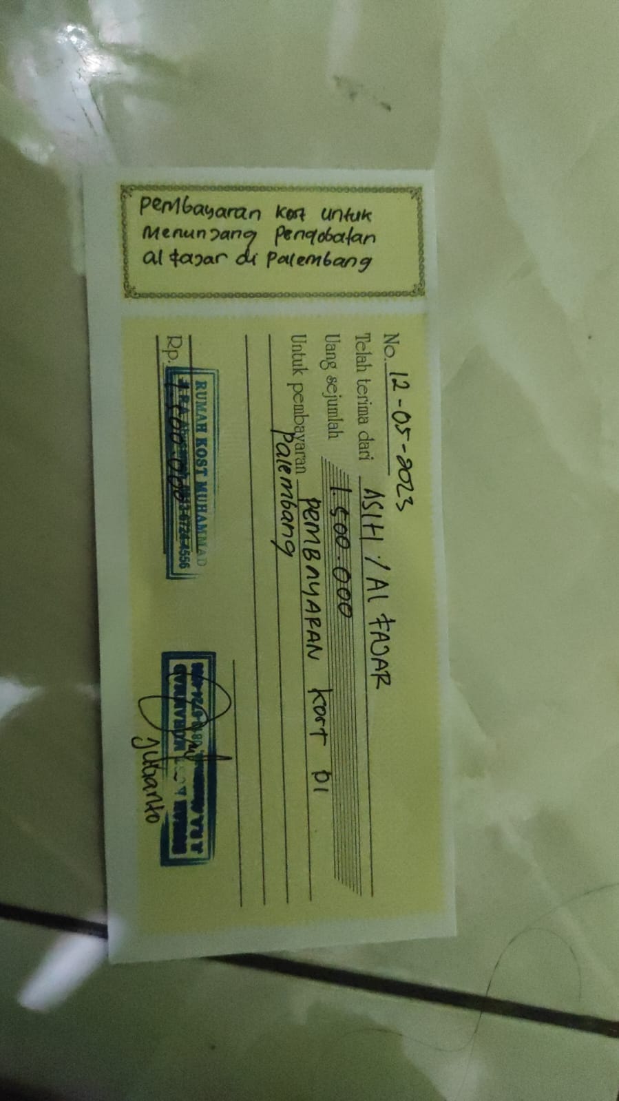 Donasi dari TemanBaik kemarin sudah digunakan untuk tiket berangkat ke Palembang, kost, bak mandi dan sereal.