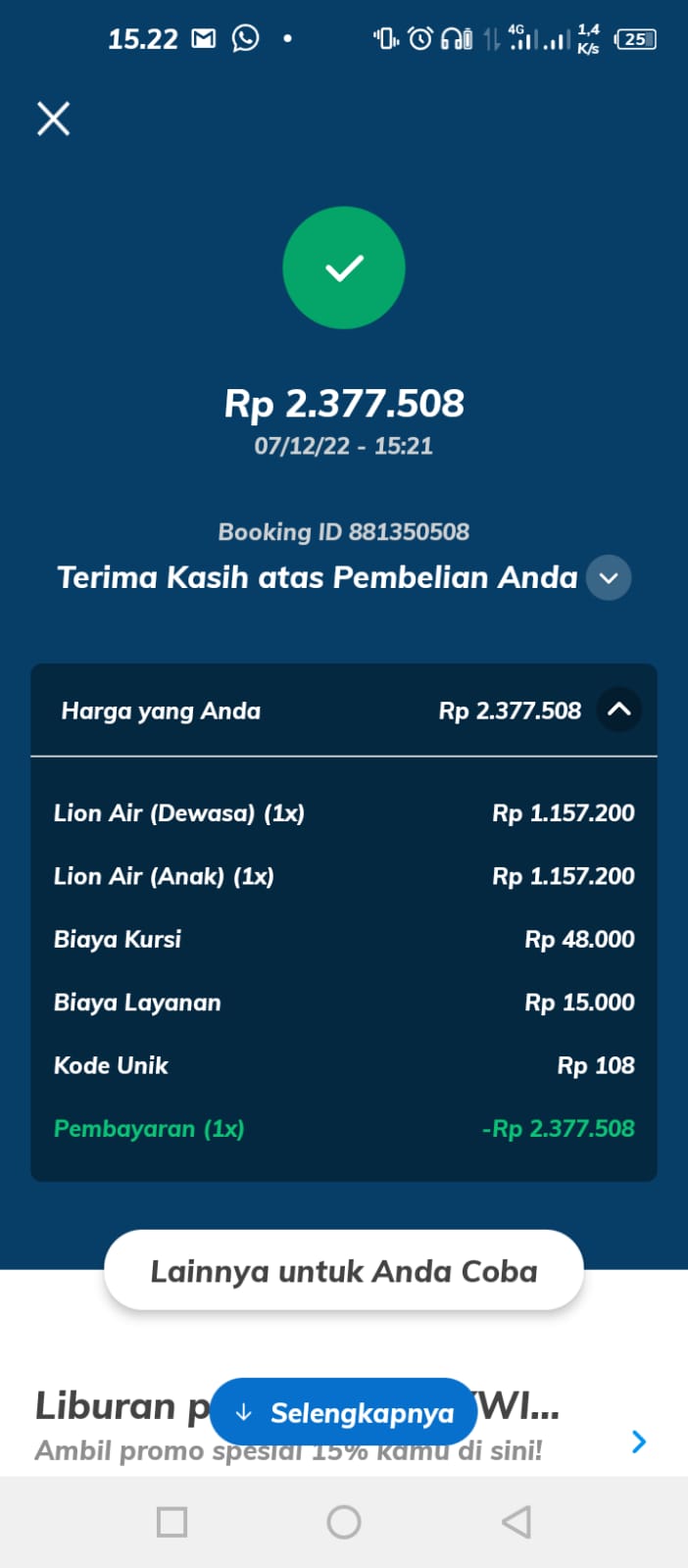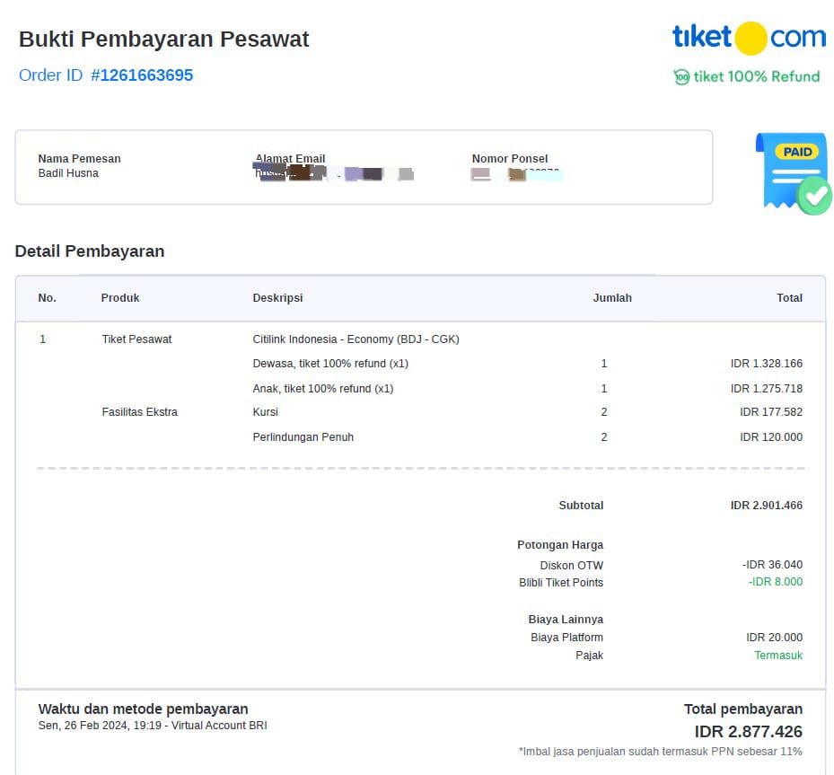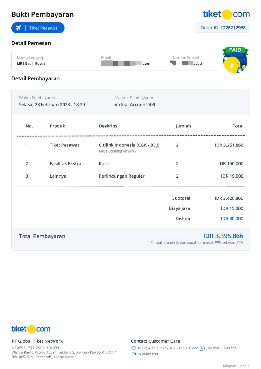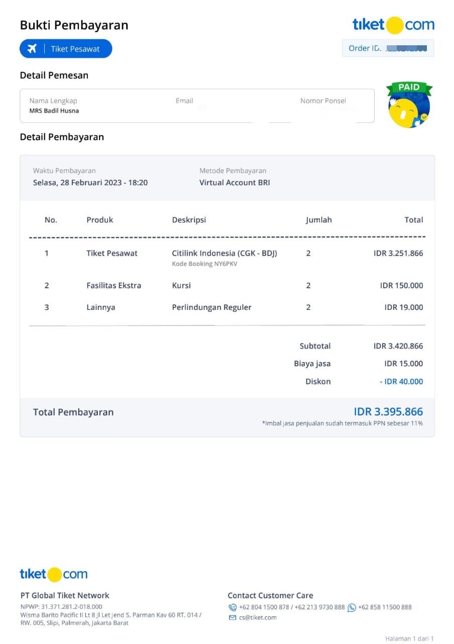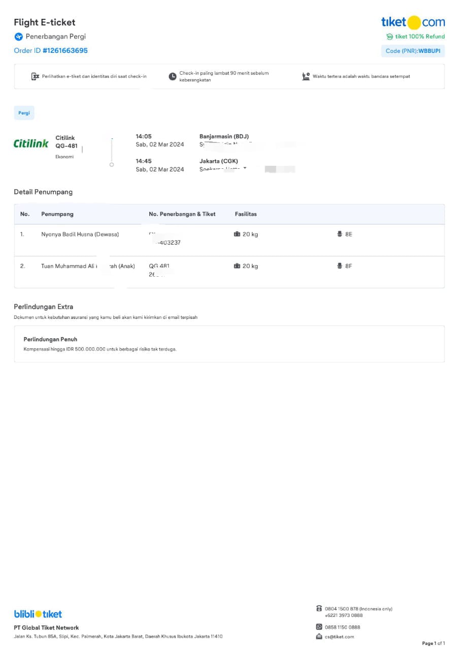 1. Tiket pesawat Banjarmasin-Jakarta 2 orang penerbangan 2 Maret 2024 Rp2.700.000