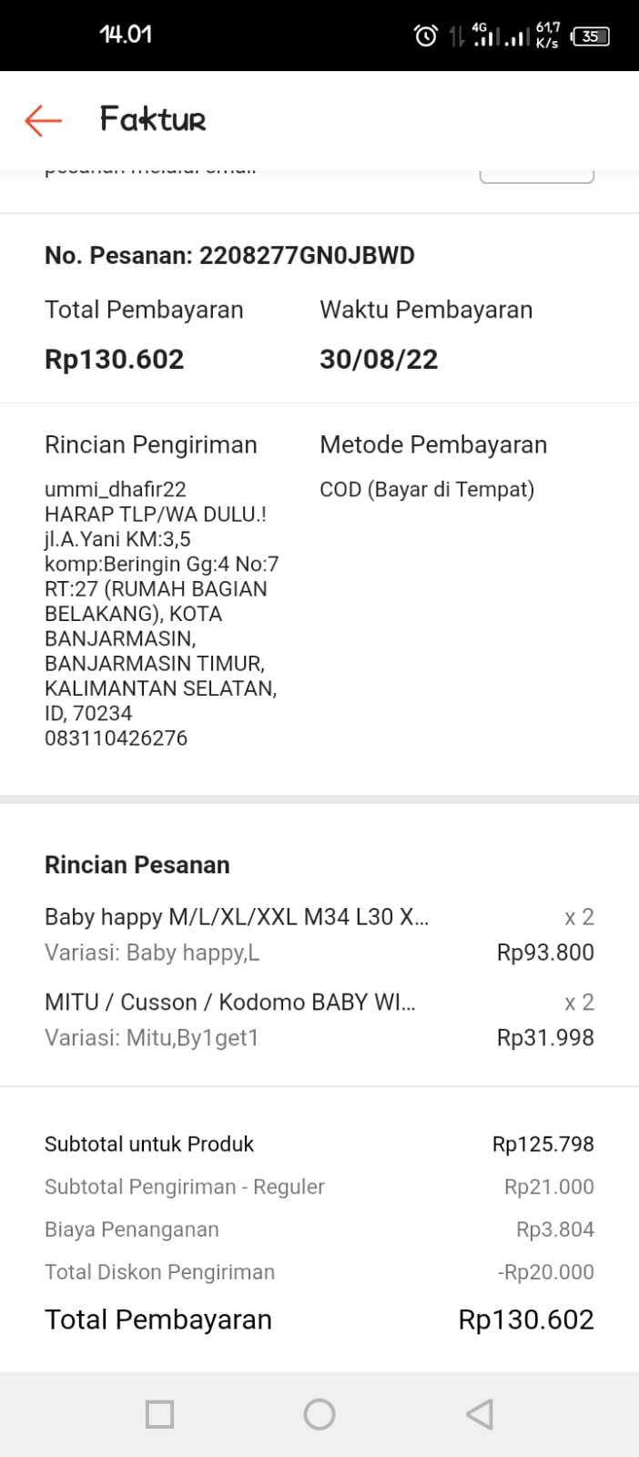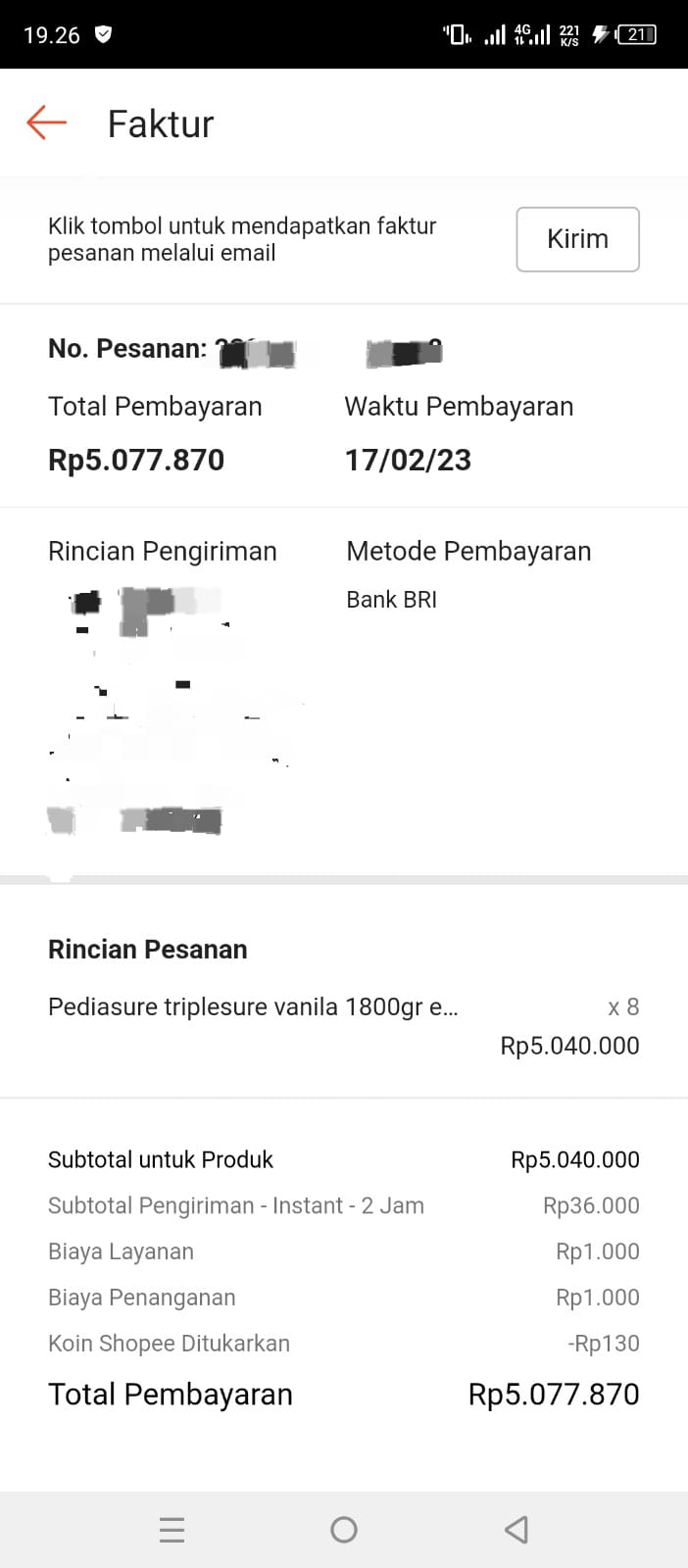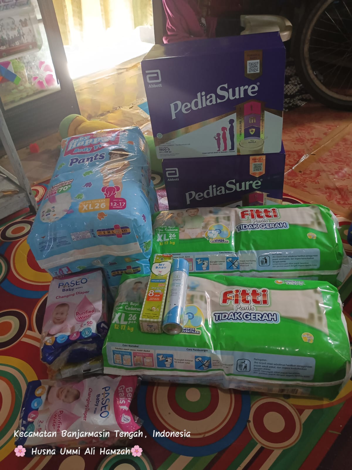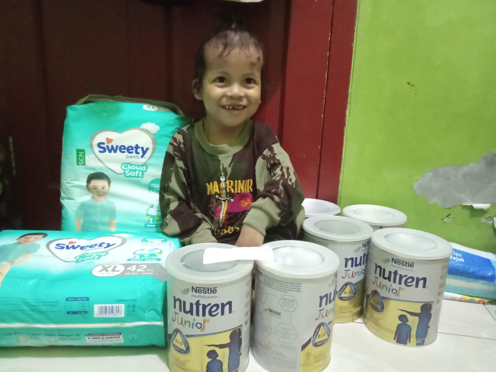 Donasi dari TemanBaik sudah digunakan dengan baik untuk membeli kebutuhan Ali seperti susu, diapers, makanan pendamping dan obat.