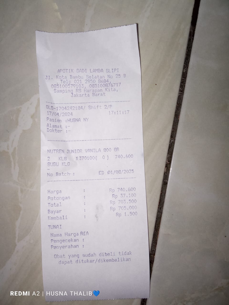 Bantuan dari kalian sudah diterima dan digunakan untuk pembelian susu bebas laktosa untuk beberapa bulan yang disuruh oleh dokter gastro. Doakan anakku ya TemanBaik agar semakin sehat dan kuat fisiknya juga semoga pencernaannya tidak bermasalah lagi.
