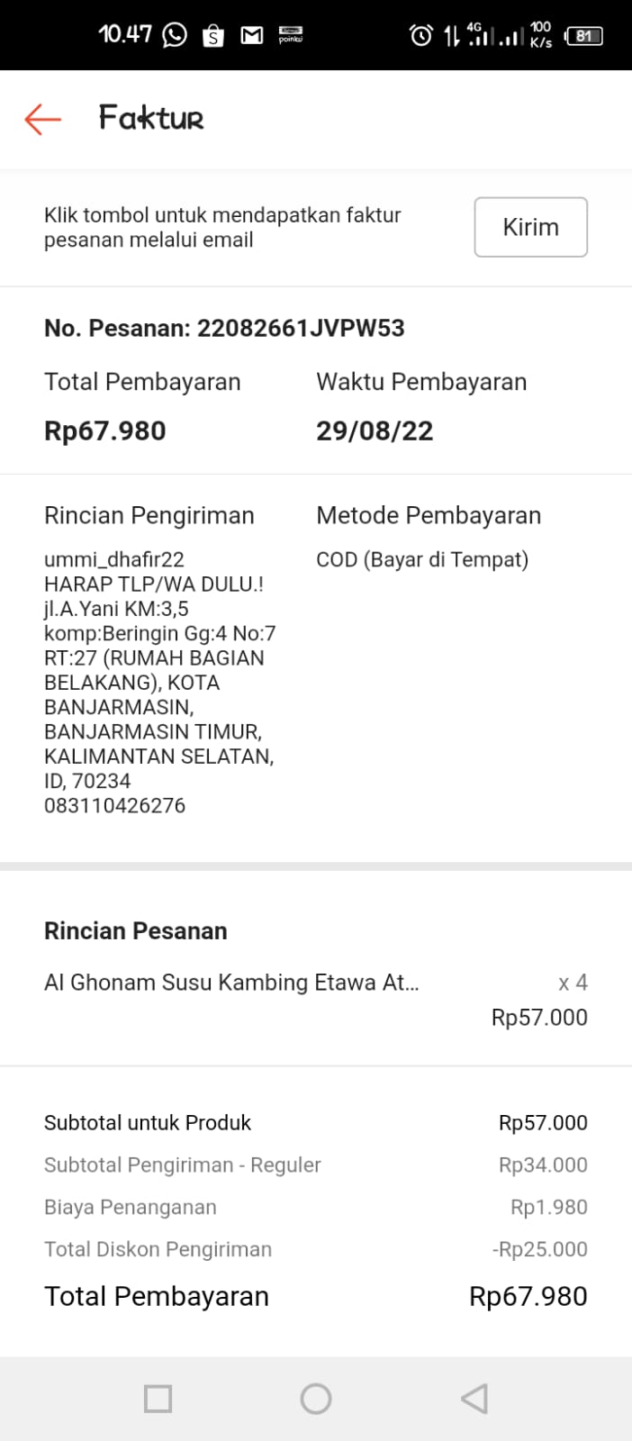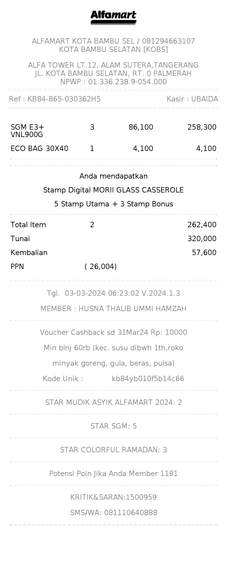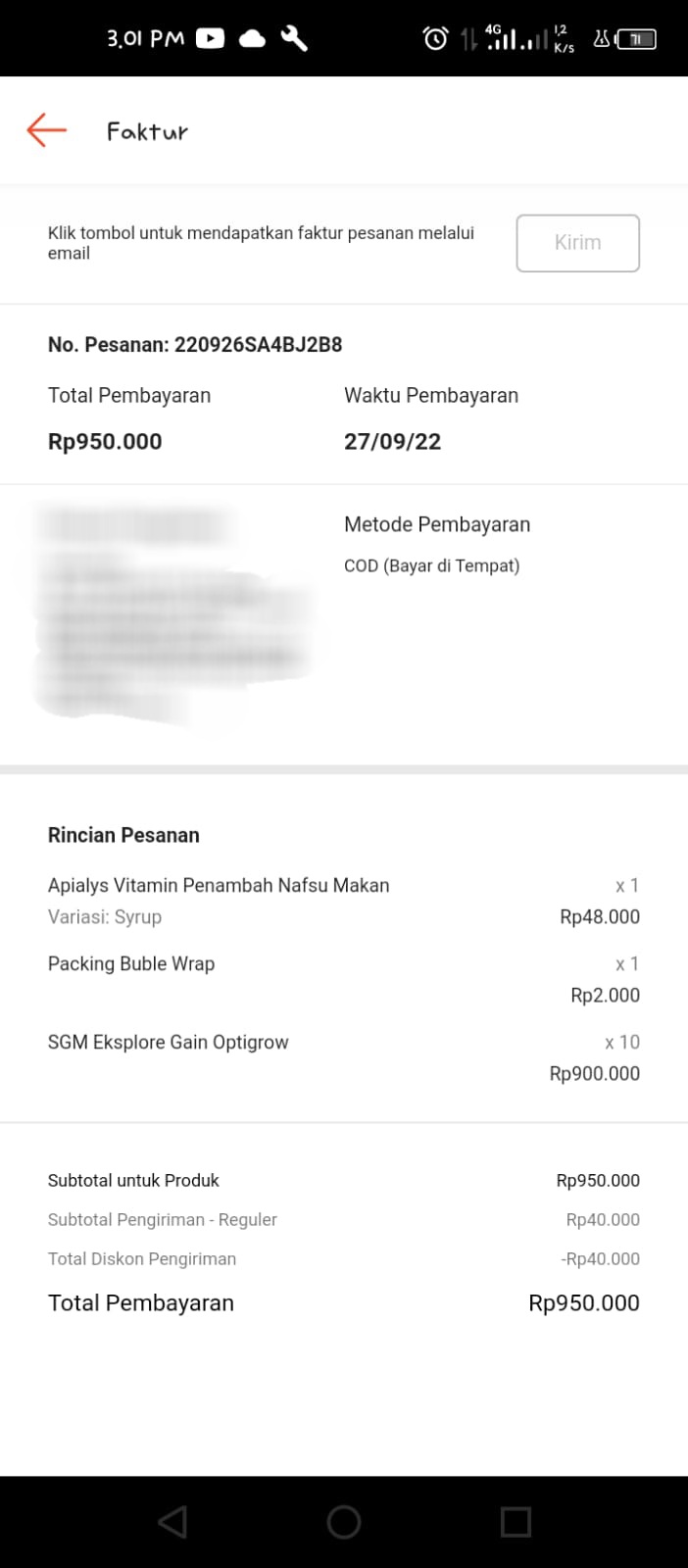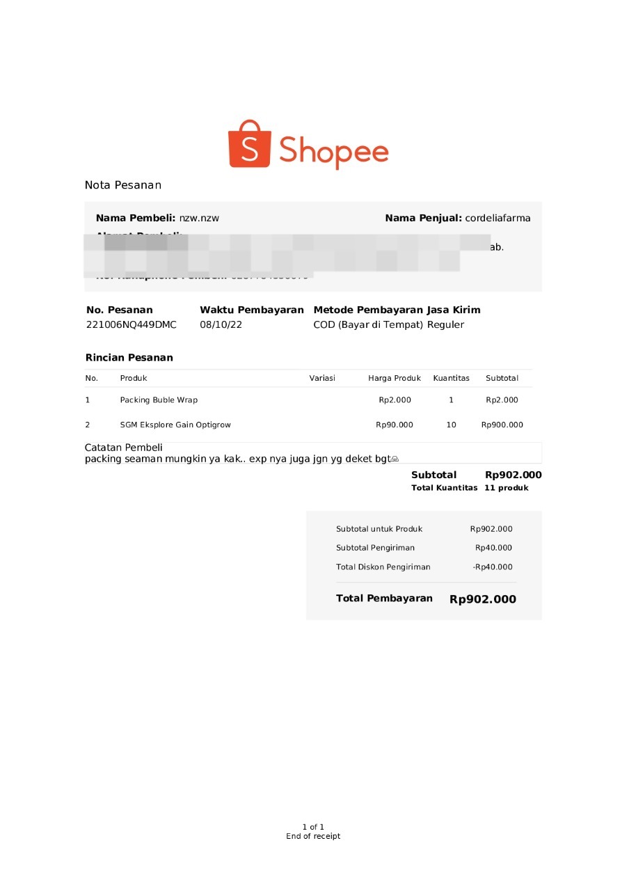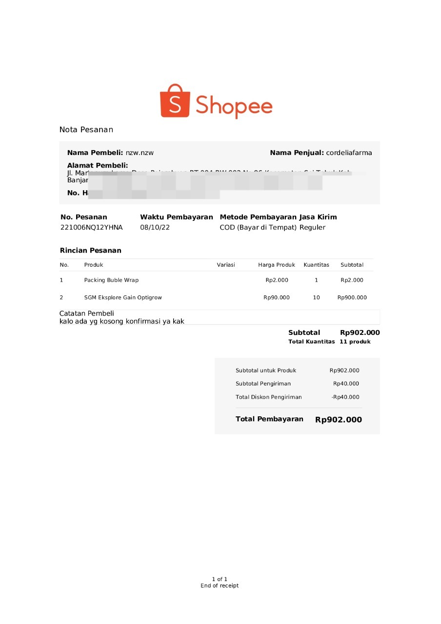 1. Susu SGM 900gr Rp.99.000 x 10 kotak = Rp.990.000