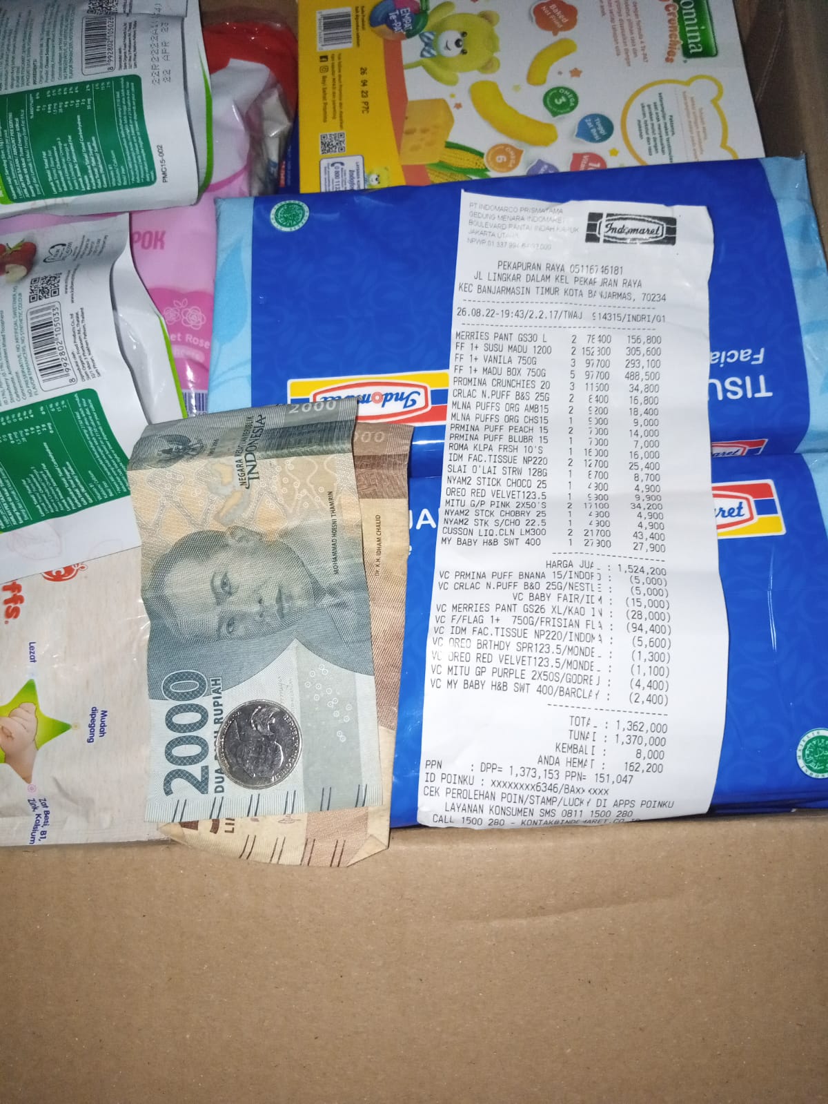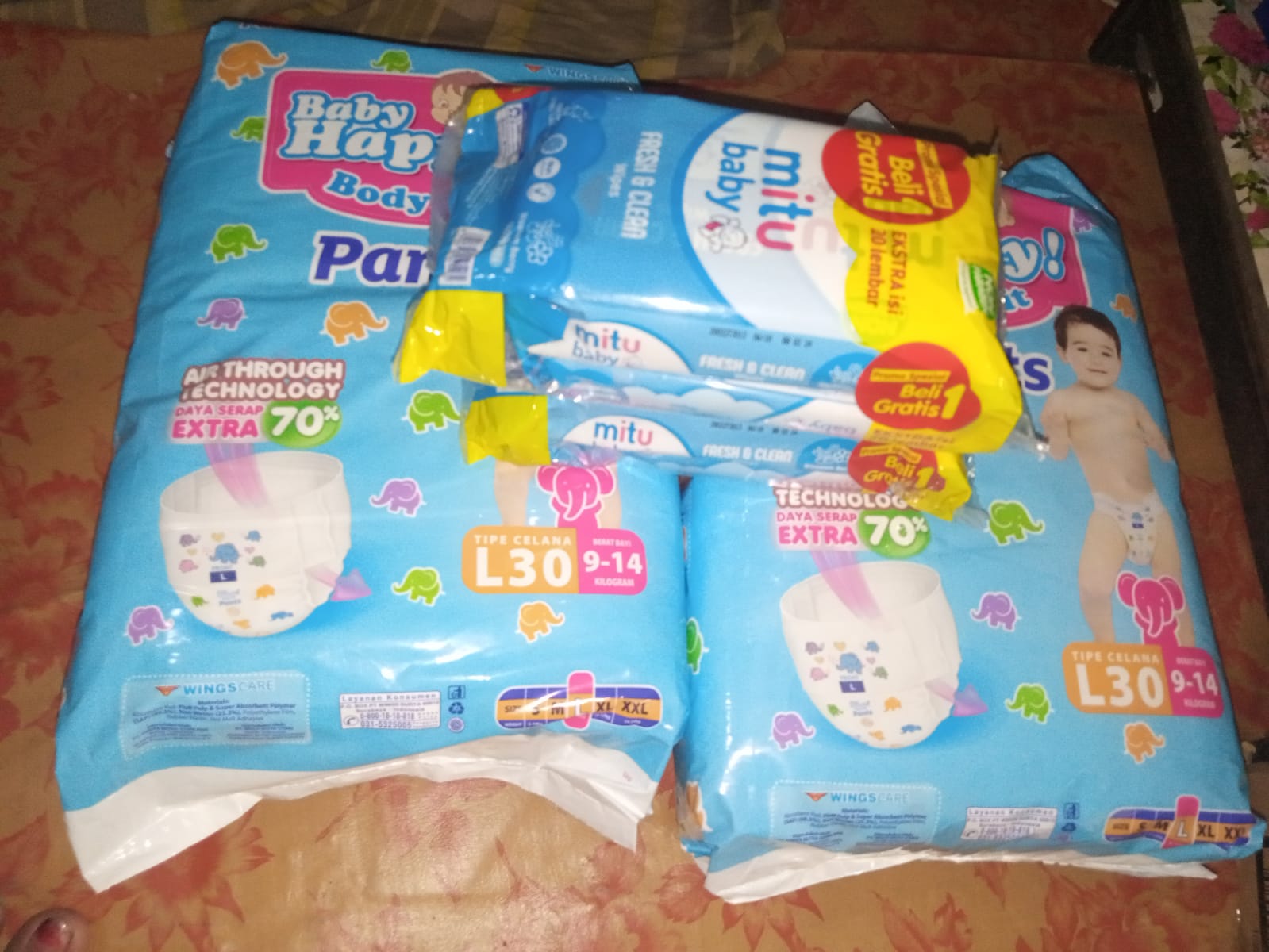 2. Pampers meries xl Rp.90.000 x 4 bal = Rp360.000