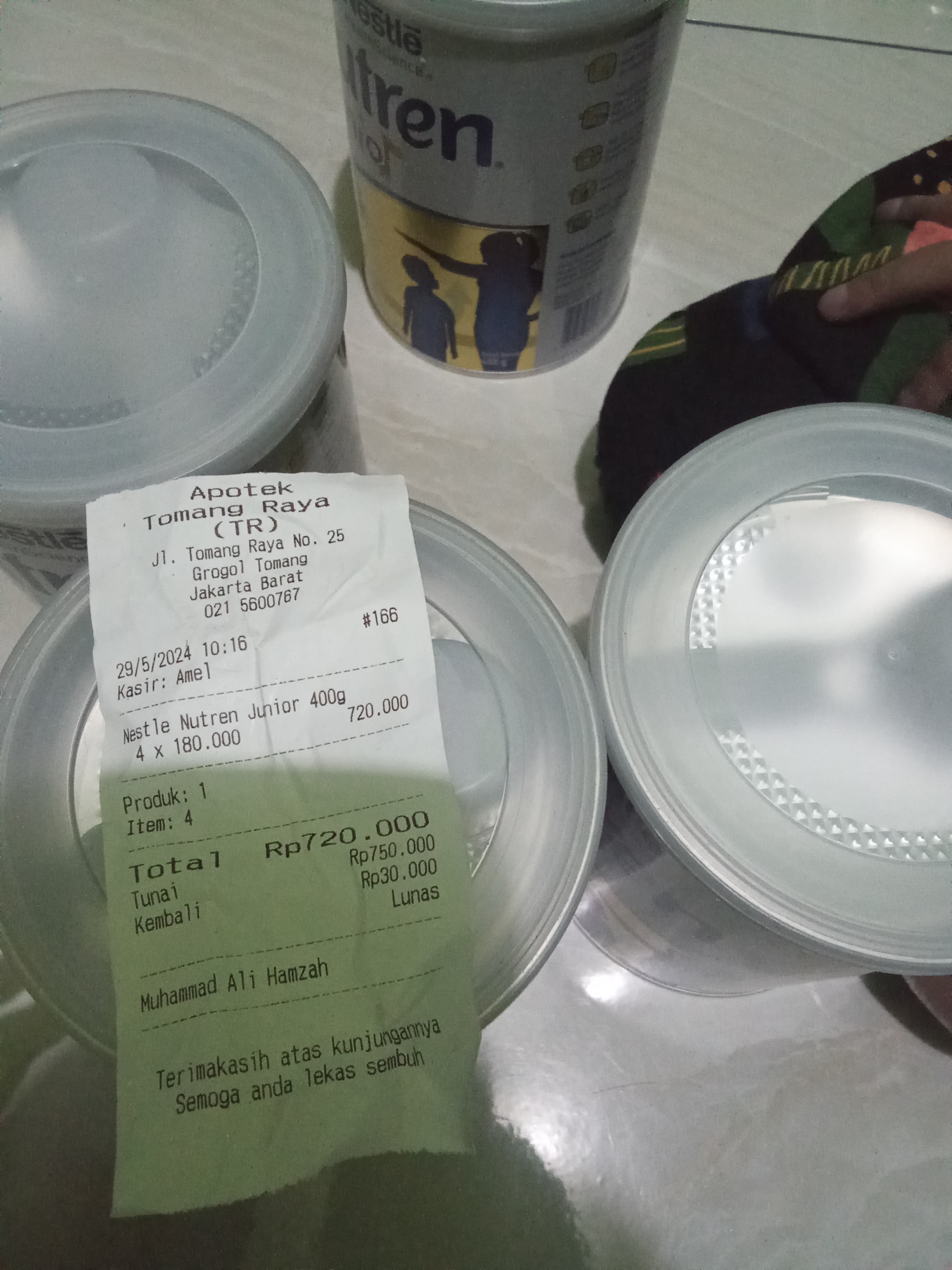 Bantuan dari TemanBaik sudah digunakan dengan baik untuk membeli susu Ali Hamzah. Terima kasih ya TemanBaik sudah membantu anak kami