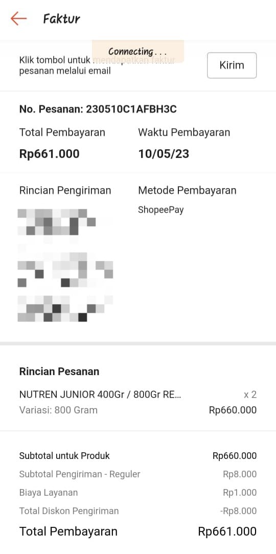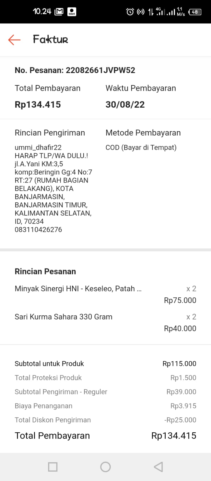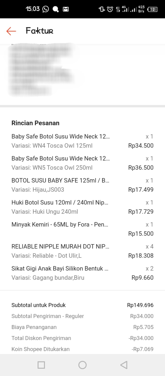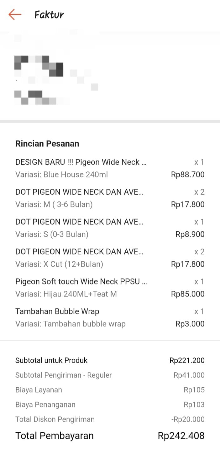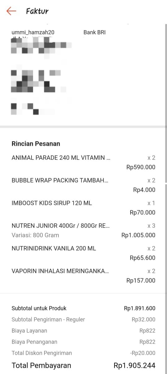 Pembelian susu Nutren Junior Vanilla 850gram 6kaleng @350.00*6 Pembelian pempes sweety pants xl isi 42 ball @125.000*22024-07-30 10:02:22