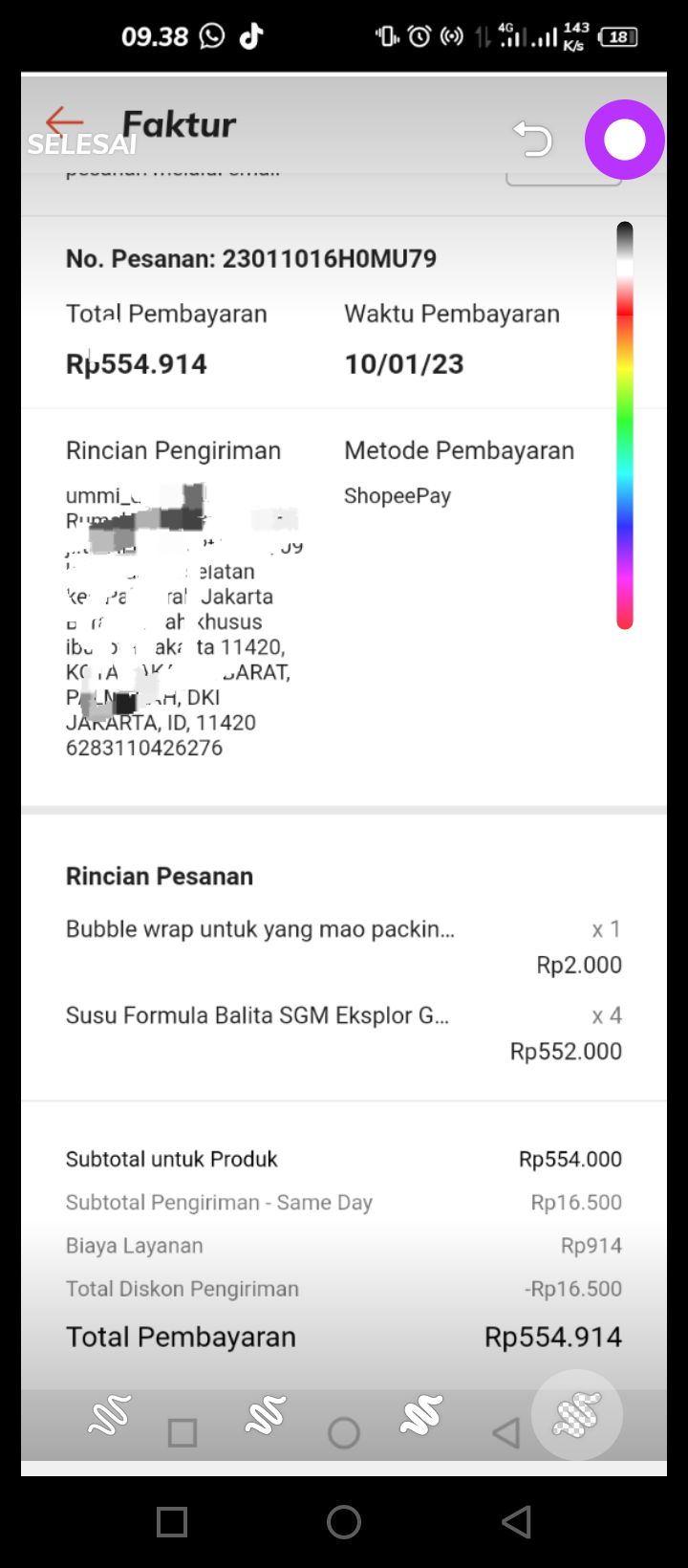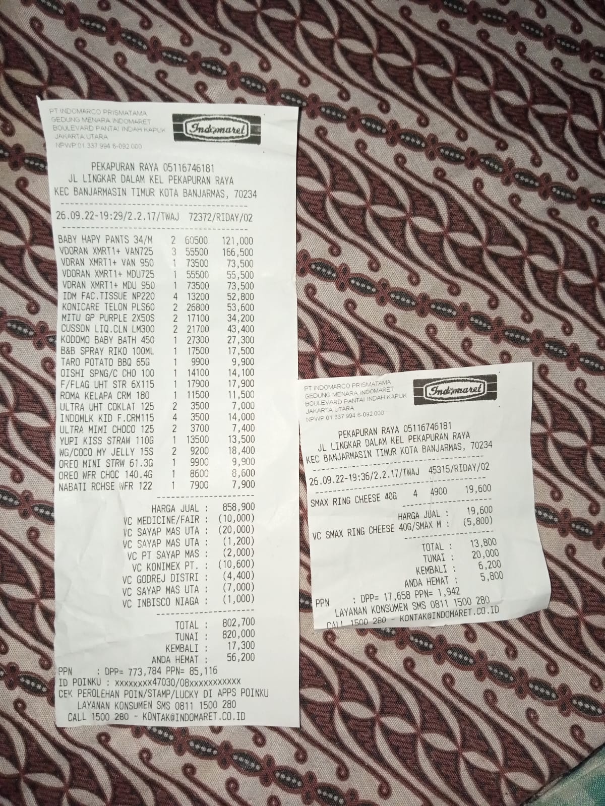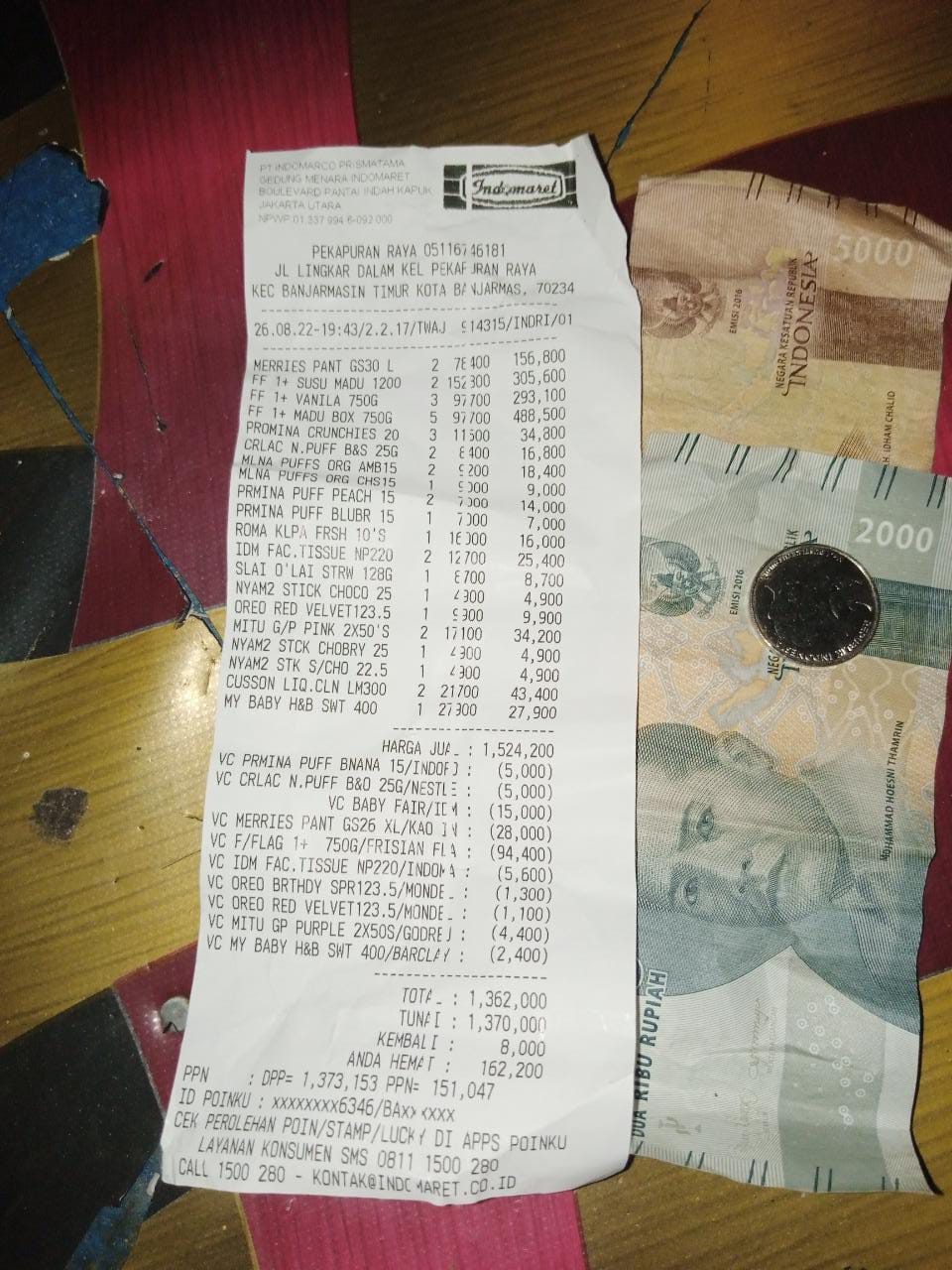 Dana digunakan untuk: 1. Susu SGM Optigrow 1+ vanilla 400gr harga 90.000 x 10=900.000 2. Vitamin Apialys sirup 1 botol= 48.000 beserta bubble warp 2.000 (total no. 1-2 pesan lewat shopee Rp950.000) 3. Susu vidoranxmart kalo ada yang ukuran 950gr 70.000 x5=Rp350.000 4. Tisu indomaret 400gr 20.000 x3= Rp60.000 5. Minyak telon konicare 30.000x2= Rp60.000 6. Pampers meries L kurleb 75.000x2= Rp150.000 7. Tisu mittu basah 17.100x2= Rp34.200 8. Sabun mandi my baby 1 pcs Rp27.900 9. Sabun dot2022-09-26 16:39:53