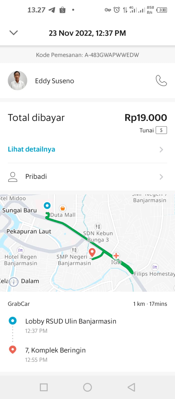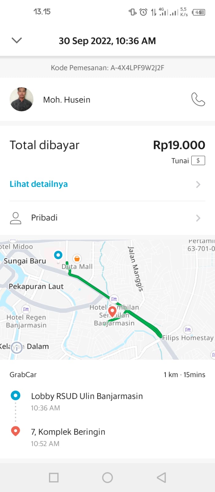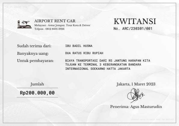 3. Transportasi menggunakan taxi online dari Bandara Soekarno Hatta ke RS Harapan Kita Rp200.000